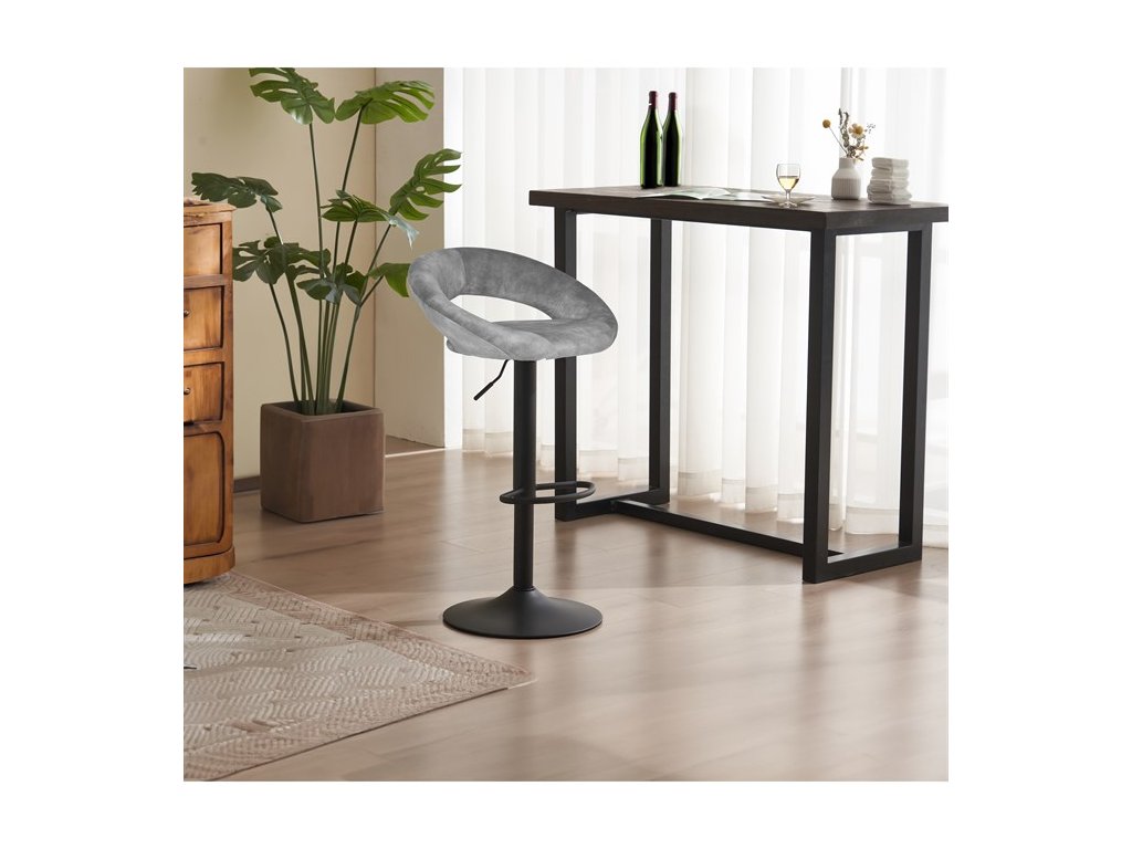 Vydajte sa na vrchol sofistikovanosti s elegantnou barovou stoličkou ktorá sa vyznačuje výrazným industriálnym štýlom a má odolnú kovovú konštrukciu spojenú s matným zamatovým čalúnením. Poťah vo výraznej modrej farbe jej dodáva moderný vzhľad, zatiaľ čo stredová základňa prepožičiava stoličke stabilitu a zvyšuje funkčnosť jedálenského priestoru. Dôležitou vlastnosťou barovej stoličky je prispôsobivosť. Možnosť nastavenia výšky vyhovuje rôznym stolom a preferenciám užívateľov, čím stolička zaisťuje vysokú mieru pohodlia pre každého. Kovová konštrukcia nôh v nápadnej čiernej farbe dopĺňa estetiku hladkej látky a prispieva k robustnej konštrukcii stoličky. Barová stolička nie je iba kusom nábytku – jedná sa o investíciu do dlhotrvajúceho pohodlia a štýlu. Prijmite spojenie praktickosti a luxusu, ktoré táto nádherná barová stolička ponúka.Dodatočné parametre