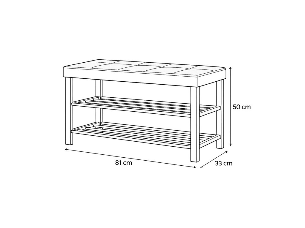 Pevná kovová konštrukcia zaručuje stabilitu a dlhú životnosť, takže sa na tento botník môžete spoľahnúť. Jeho štýlový a minimalistický dizajn sa ľahko začlení do akéhokoľvek interiéru a prispeje k udržaniu poriadku. Je to dokonalé riešenie pre tých, ktorí hľadajú kombináciu funkčnosti a elegancie pre svoju predsieň či šatník.