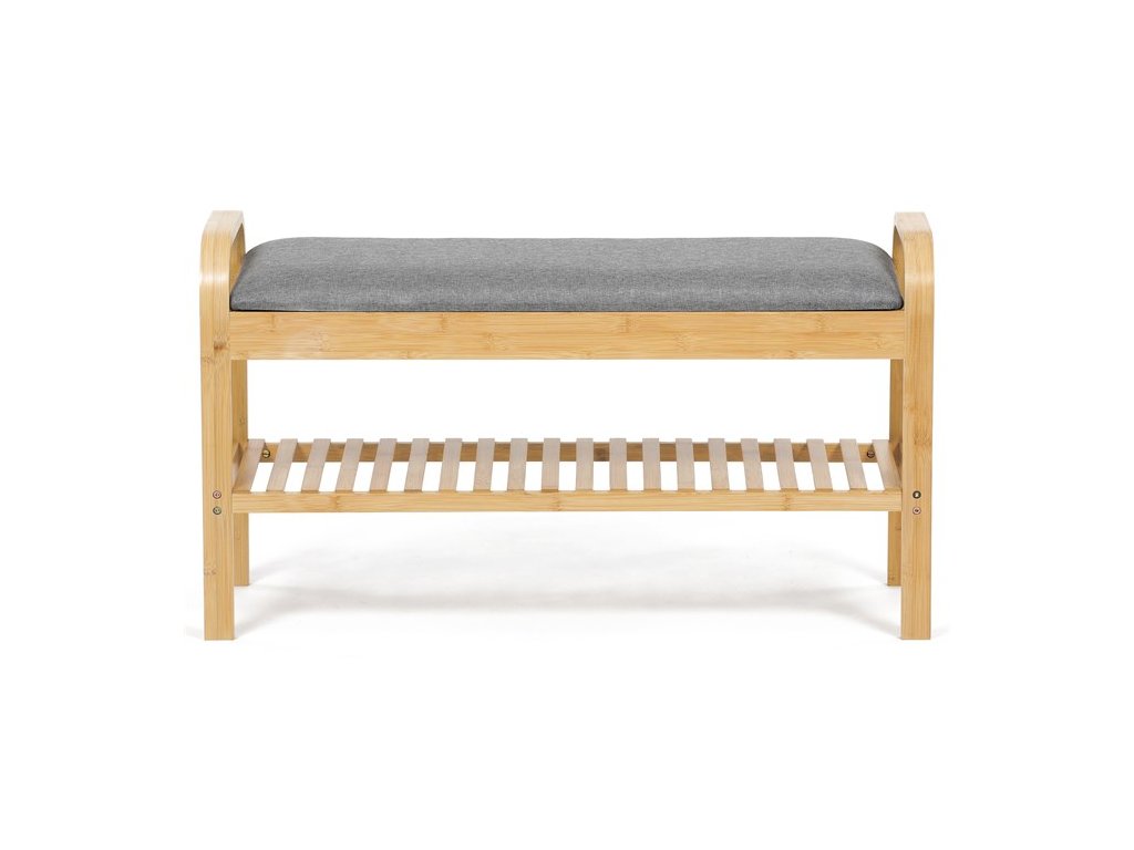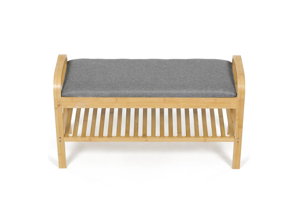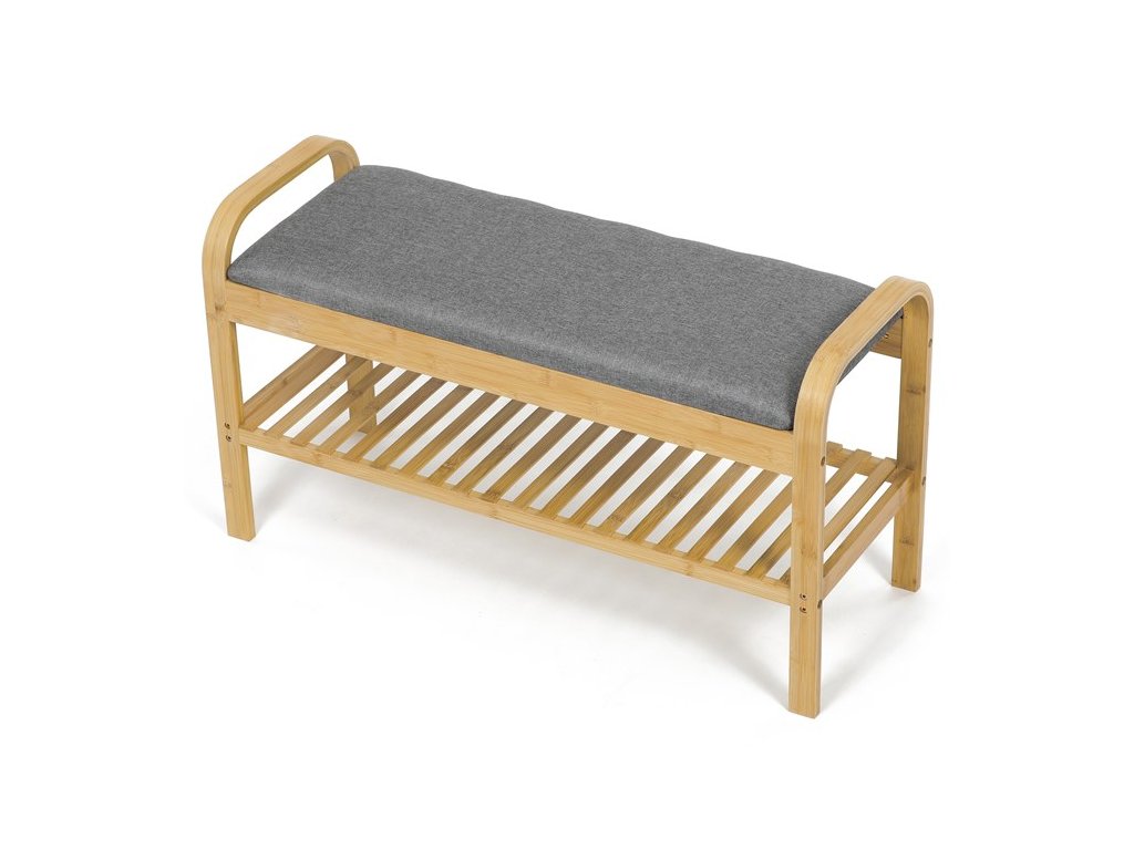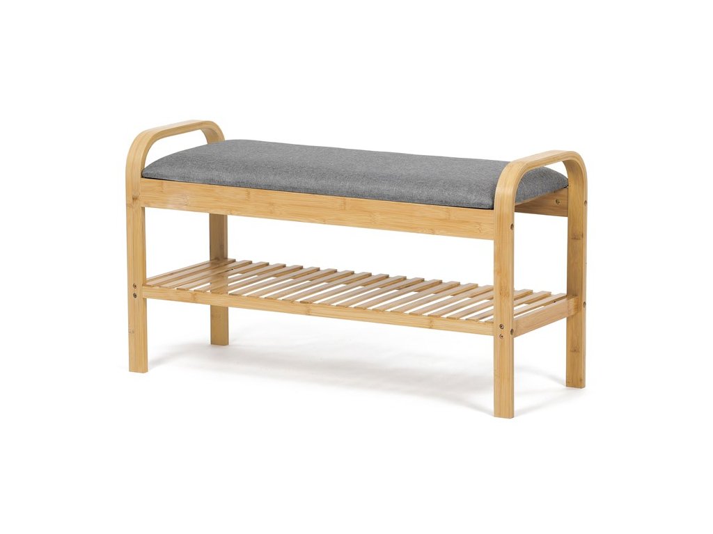 Hľadáte elegantné a funkčné riešenie na udržanie poriadku vo vašej predsieni? Táto bambusová lavička s botníkom je presne to, čo potrebujete! Spája v sebe prirodzený šarm bambusu, pohodlie polstrovaného sedáku a praktický úložný priestor na vašu obuv.Vyrobená z kvalitného bambusu v prírodnej farbe, táto lavička sa ľahko zladí s akýmkoľvek interiérom, či už preferujete moderný, minimalistický alebo škandinávsky štýl. Šedý polstrovaný sedák poskytuje komfort pri obúvaní a vyzúvaní, zatiaľ čo priestranná spodná polica vám umožní prehľadne usporiadať vaše topánky.