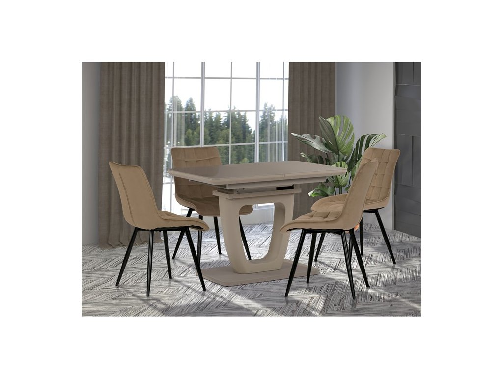 Táto jedálenská stolička je nielen pohodlná a štýlová, ale dokáže tiež dodať vašej jedálni úplne nový rozmer elegancie a vkusu. Jej telo je vyrobené z hladkej látky, ktorá sa ľahko čistí a navyše zaručuje príjemné sedenie aj po dlhšiu dobu. Nohy stoličky sú vyrobené z pevného čierneho kovu, ktorý zaisťuje potrebnú stabilitu.Dodatočné parametre