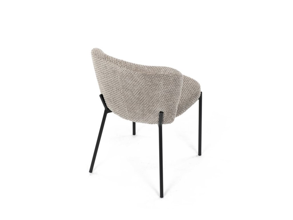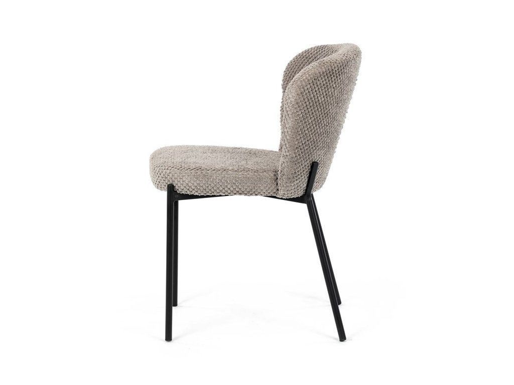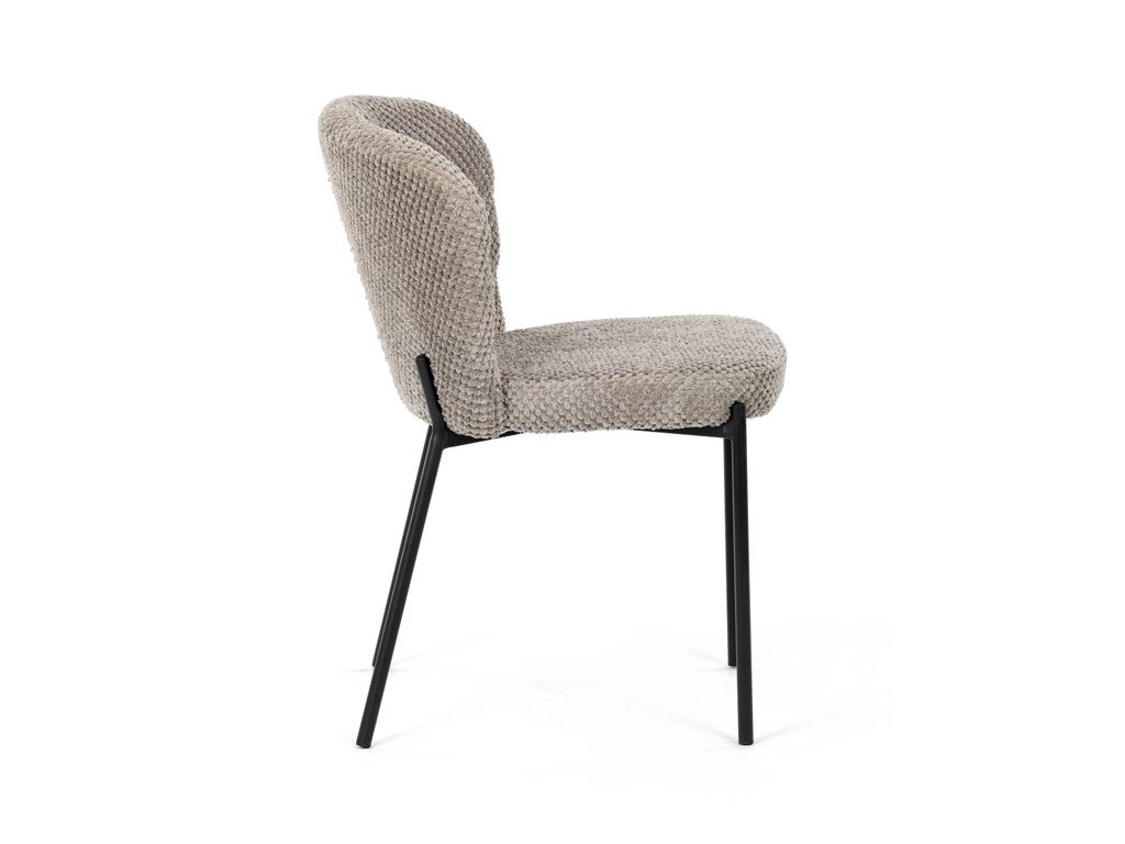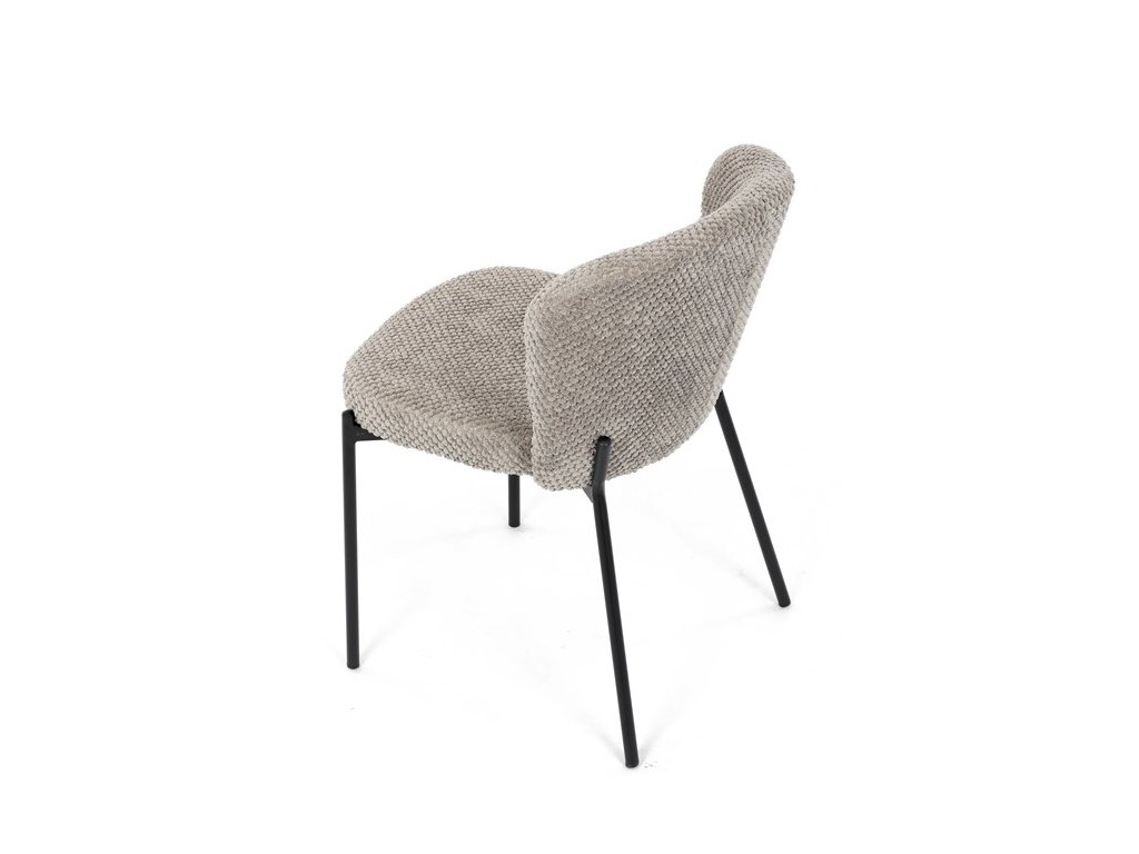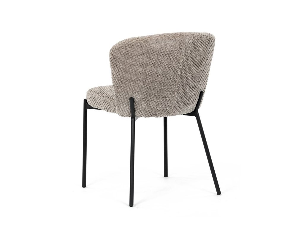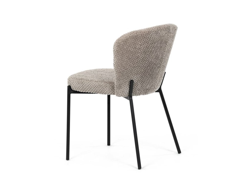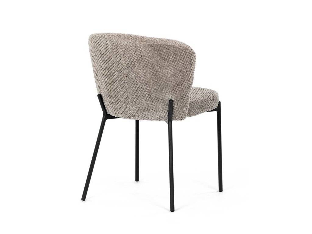 Jedálenská stolička v zaujímavom modernom dizajne, spájajúca eleganciu s praktickými vlastnosťami, bude určite sviežim oživením každého interiéru. Čalúnenie z trendovej látky Bouclé je zárukou skvelého výzoru stoličky, taktiež ale prináša výborné vlastnosti ako ľahká údržba či príjemnosť na dotyk, taktiež je vhodná k domácim mazlíčkom. Komfortný sedák a zaoblené operadlo poskytuje pohodlné posedenie, pevné kovové nohy dodávajú stoličke potrebnú stabilitu, ich čierna farba dodáva nádych elegancie. Vďaka svojej ľahkej konštrukcii, modernému dizajnu a ľahkej údržbe je ideálna voľba pre váš jedálenská kútik.