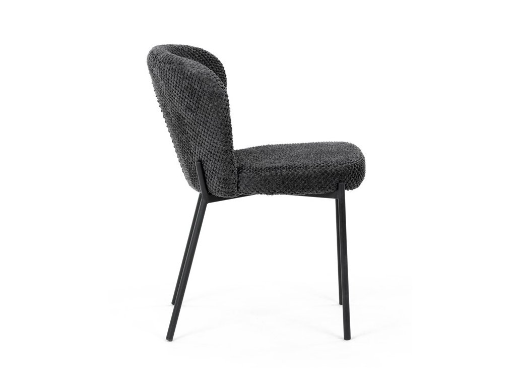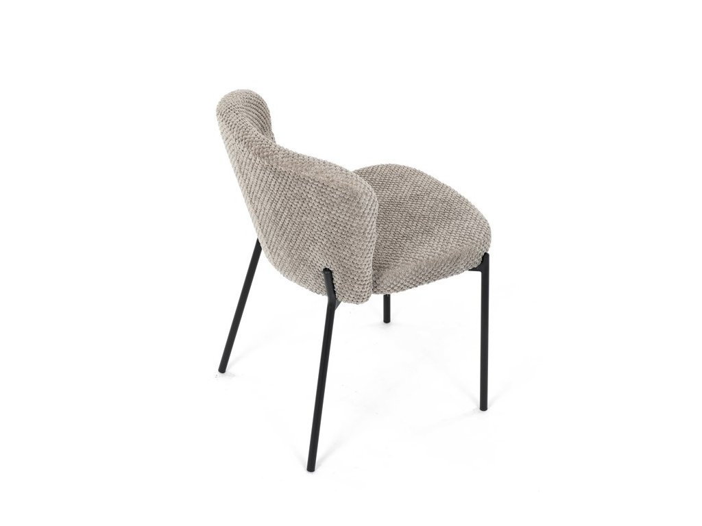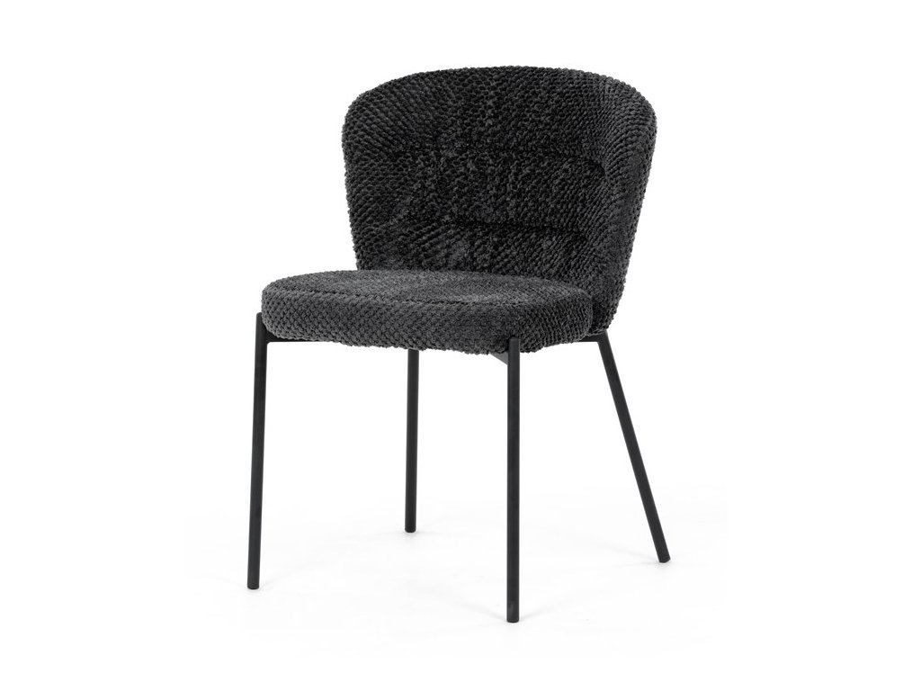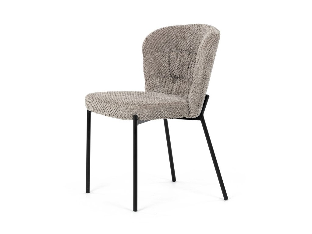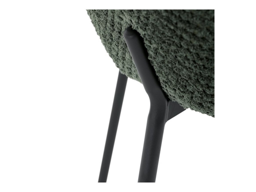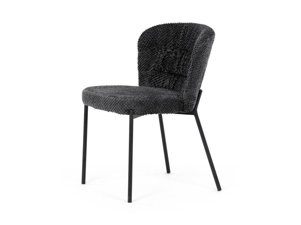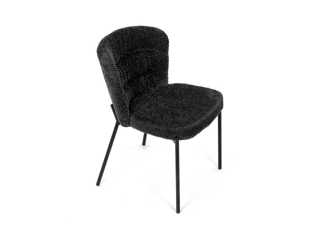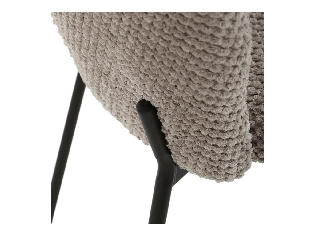 Jedálenská stolička v zaujímavom modernom dizajne, spájajúca eleganciu s praktickými vlastnosťami, bude určite sviežim oživením každého interiéru. Čalúnenie z trendovej látky Bouclé je zárukou skvelého výzoru stoličky, taktiež ale prináša výborné vlastnosti ako ľahká údržba či príjemnosť na dotyk, taktiež je vhodná k domácim mazlíčkom. Komfortný sedák a zaoblené operadlo poskytuje pohodlné posedenie, pevné kovové nohy dodávajú stoličke potrebnú stabilitu, ich čierna farba dodáva nádych elegancie. Vďaka svojej ľahkej konštrukcii, modernému dizajnu a ľahkej údržbe je ideálna voľba pre váš jedálenská kútik.
