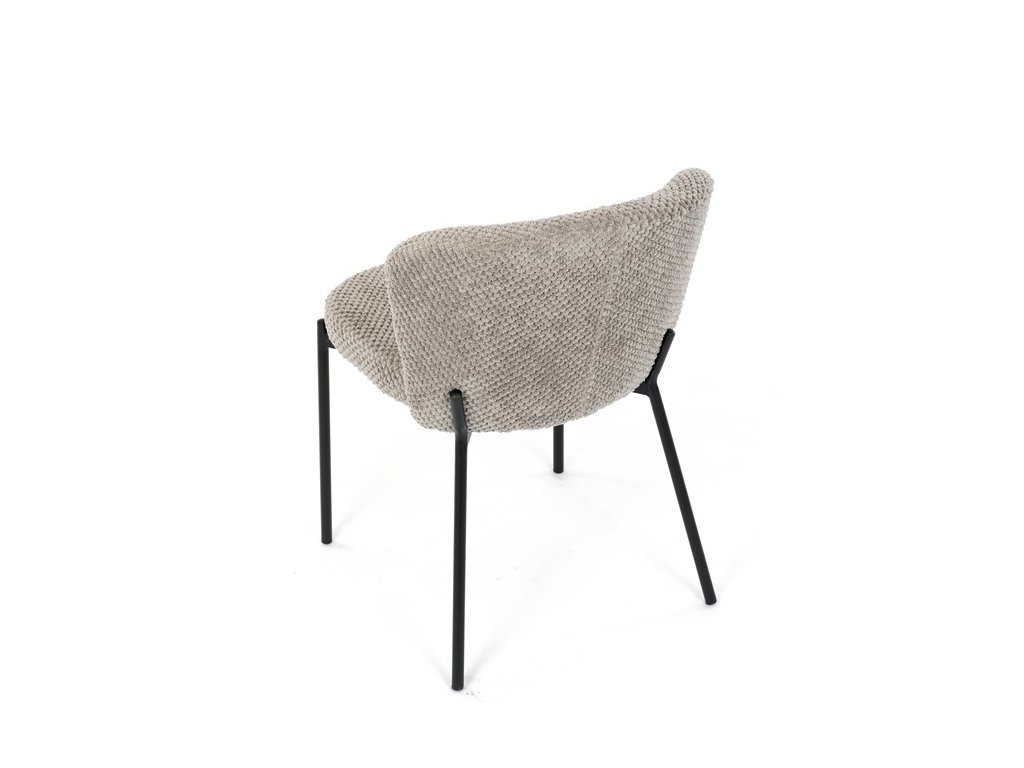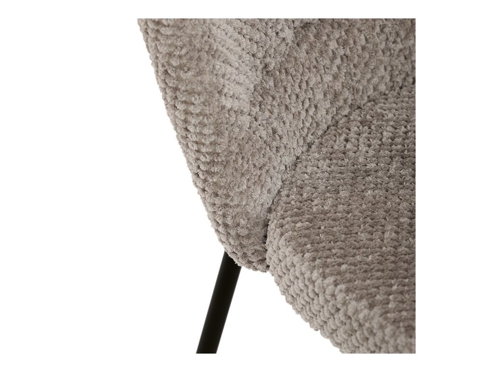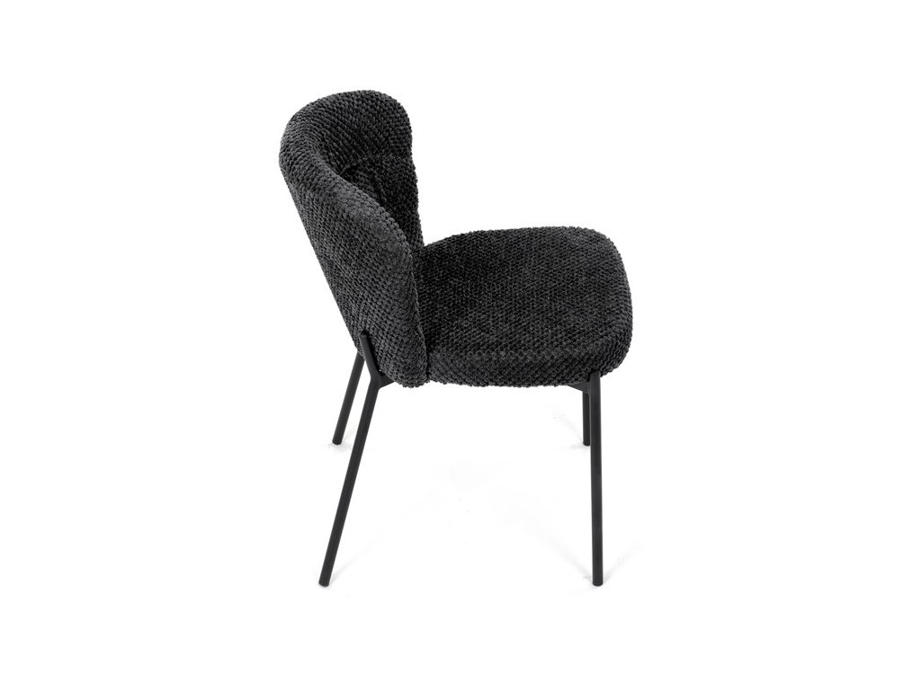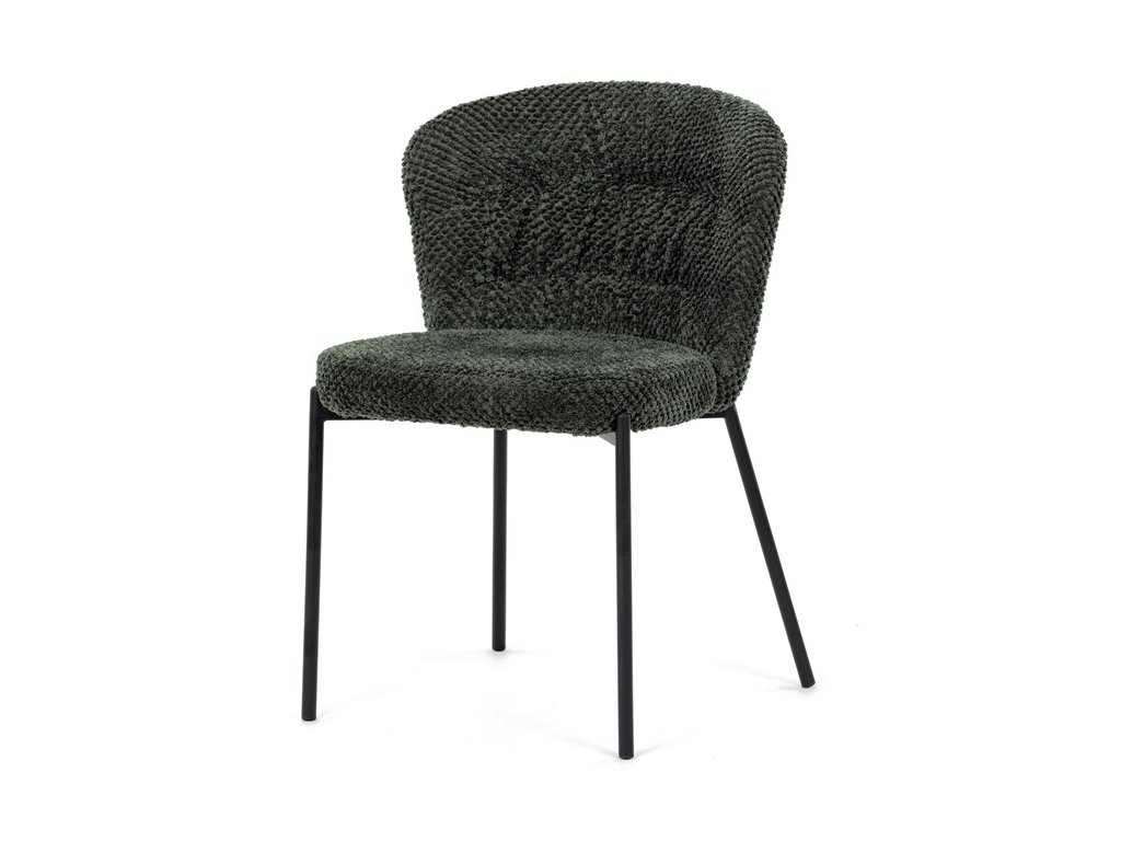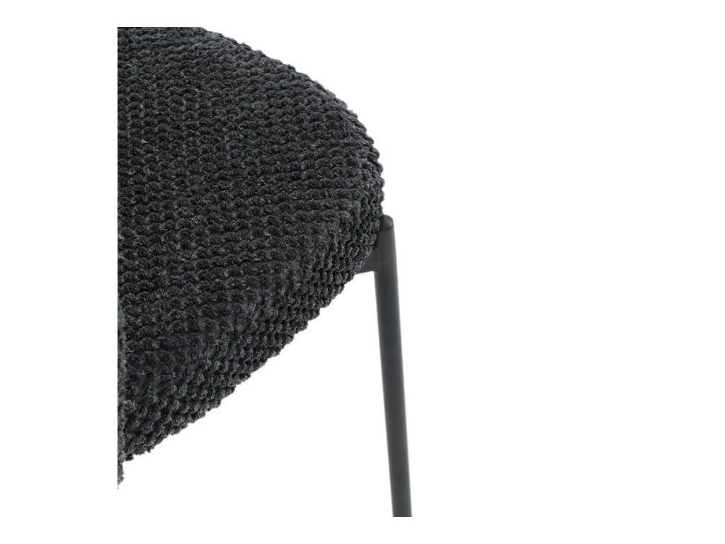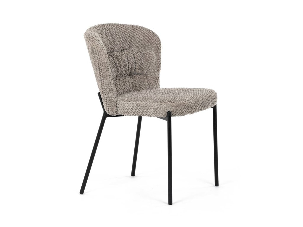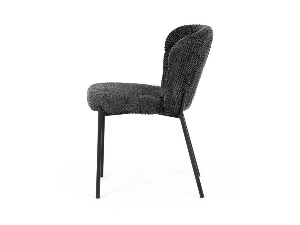 Jedálenská stolička v zaujímavom modernom dizajne, spájajúca eleganciu s praktickými vlastnosťami, bude určite sviežim oživením každého interiéru. Čalúnenie z trendovej látky Bouclé je zárukou skvelého výzoru stoličky, taktiež ale prináša výborné vlastnosti ako ľahká údržba či príjemnosť na dotyk, taktiež je vhodná k domácim mazlíčkom. Komfortný sedák a zaoblené operadlo poskytuje pohodlné posedenie, pevné kovové nohy dodávajú stoličke potrebnú stabilitu, ich čierna farba dodáva nádych elegancie. Vďaka svojej ľahkej konštrukcii, modernému dizajnu a ľahkej údržbe je ideálna voľba pre váš jedálenská kútik.