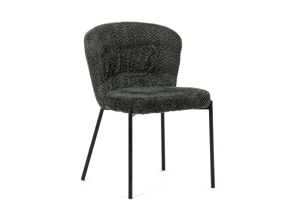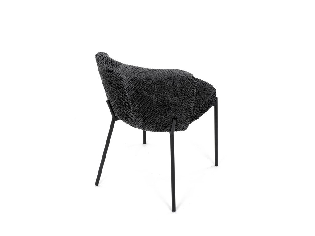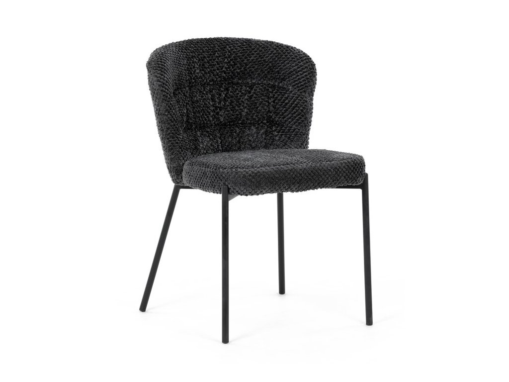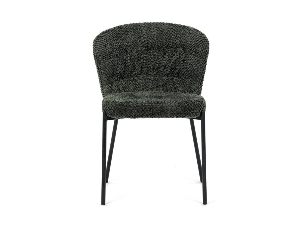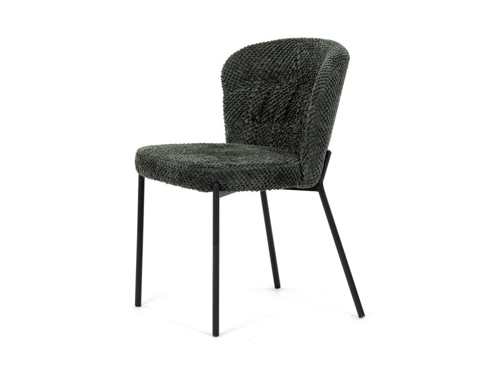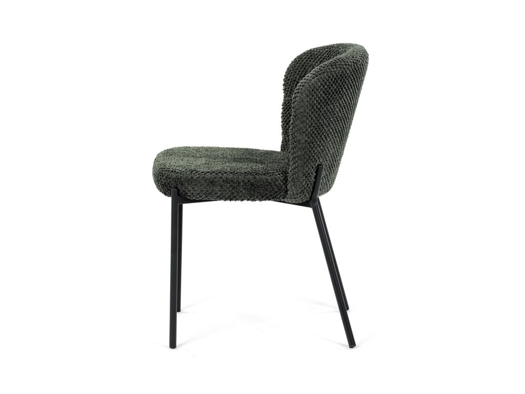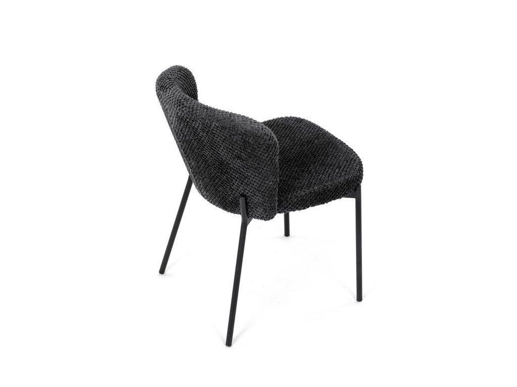 Jedálenská stolička v zaujímavom modernom dizajne, spájajúca eleganciu s praktickými vlastnosťami, bude určite sviežim oživením každého interiéru. Čalúnenie z trendovej látky Bouclé je zárukou skvelého výzoru stoličky, taktiež ale prináša výborné vlastnosti ako ľahká údržba či príjemnosť na dotyk, taktiež je vhodná k domácim mazlíčkom. Komfortný sedák a zaoblené operadlo poskytuje pohodlné posedenie, pevné kovové nohy dodávajú stoličke potrebnú stabilitu, ich čierna farba dodáva nádych elegancie. Vďaka svojej ľahkej konštrukcii, modernému dizajnu a ľahkej údržbe je ideálna voľba pre váš jedálenská kútik.