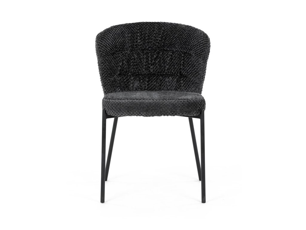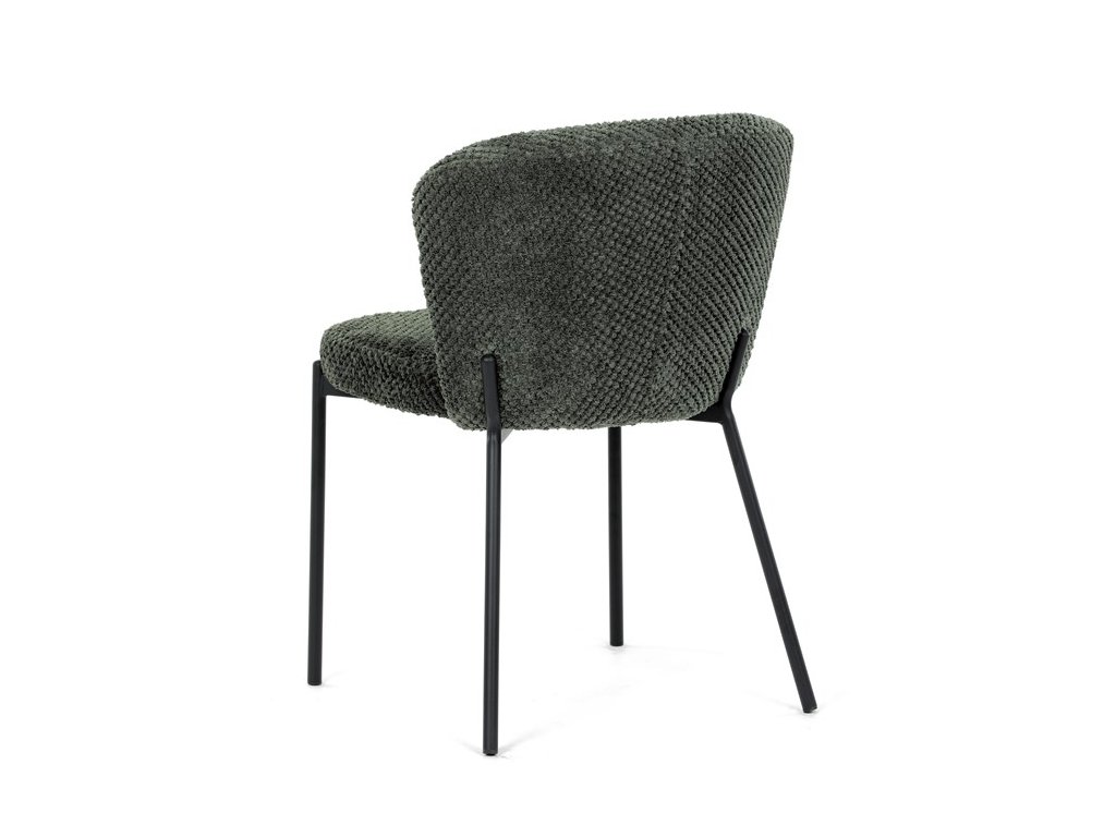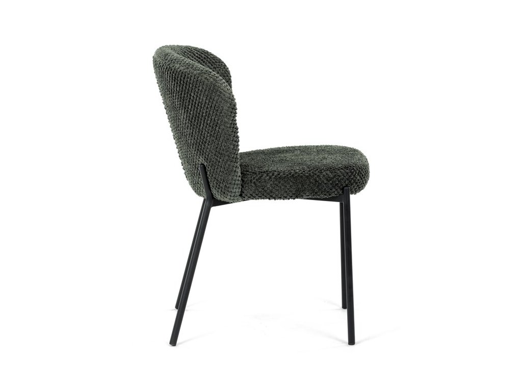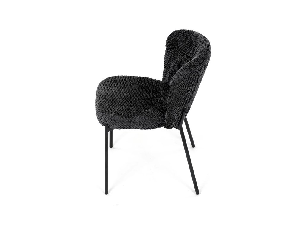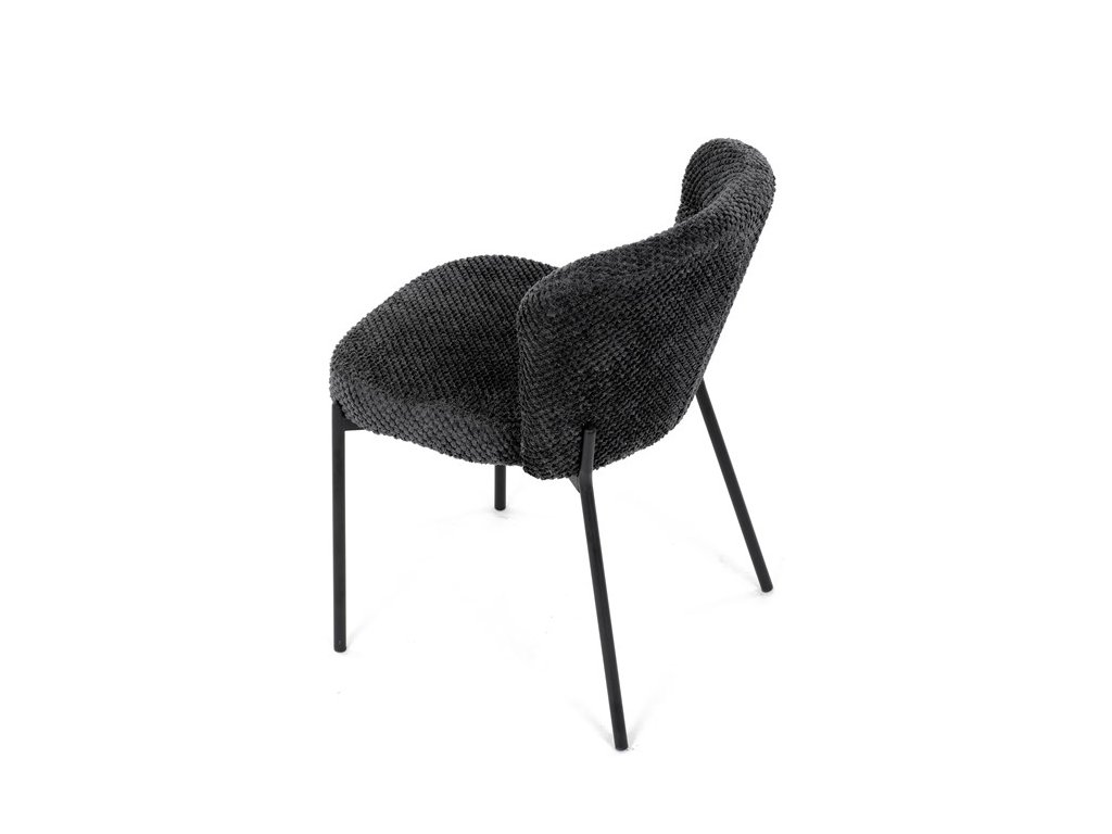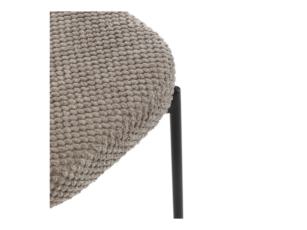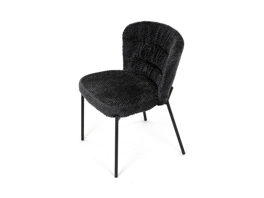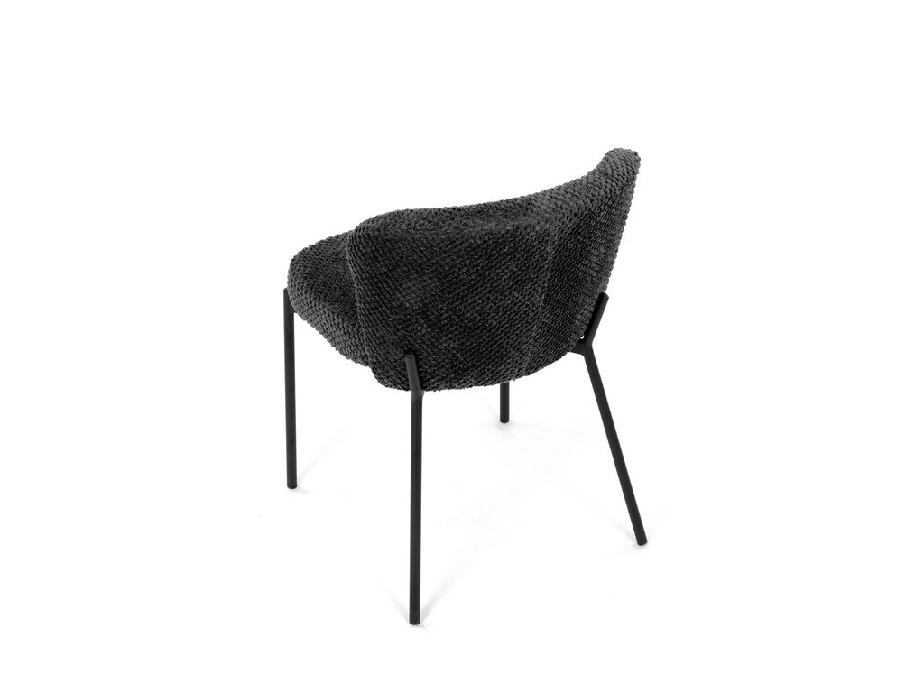 Jedálenská stolička v zaujímavom modernom dizajne, spájajúca eleganciu s praktickými vlastnosťami, bude určite sviežim oživením každého interiéru. Čalúnenie z trendovej látky Bouclé je zárukou skvelého výzoru stoličky, taktiež ale prináša výborné vlastnosti ako ľahká údržba či príjemnosť na dotyk, taktiež je vhodná k domácim mazlíčkom. Komfortný sedák a zaoblené operadlo poskytuje pohodlné posedenie, pevné kovové nohy dodávajú stoličke potrebnú stabilitu, ich čierna farba dodáva nádych elegancie. Vďaka svojej ľahkej konštrukcii, modernému dizajnu a ľahkej údržbe je ideálna voľba pre váš jedálenská kútik.