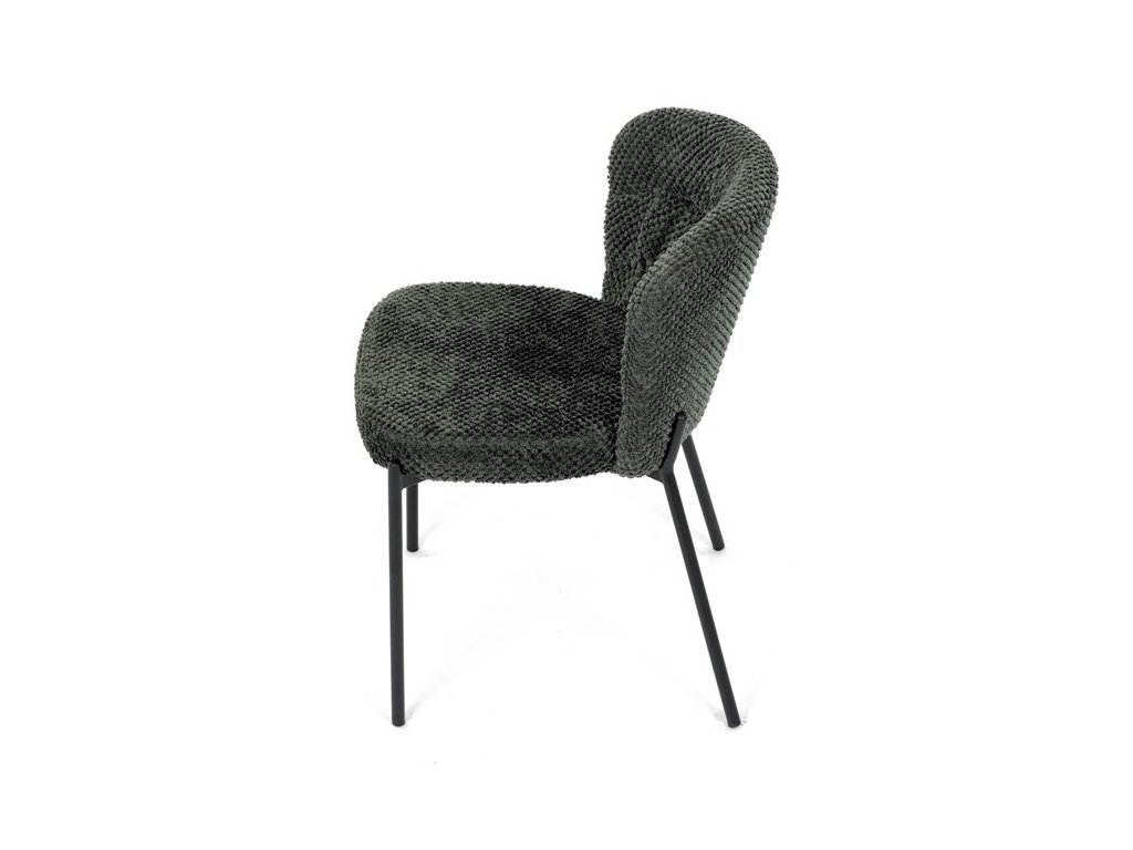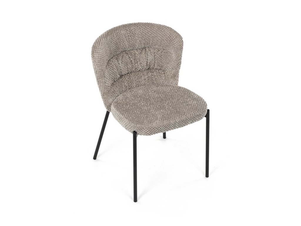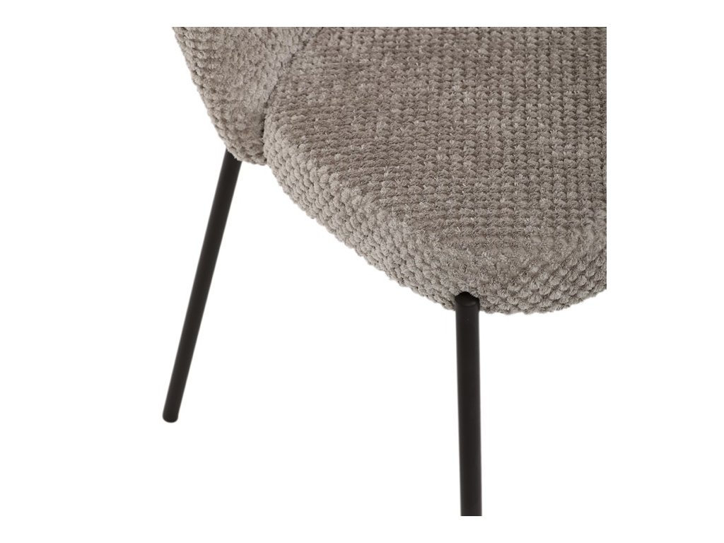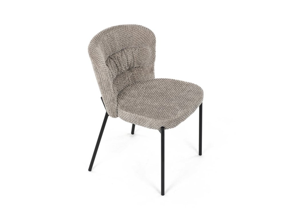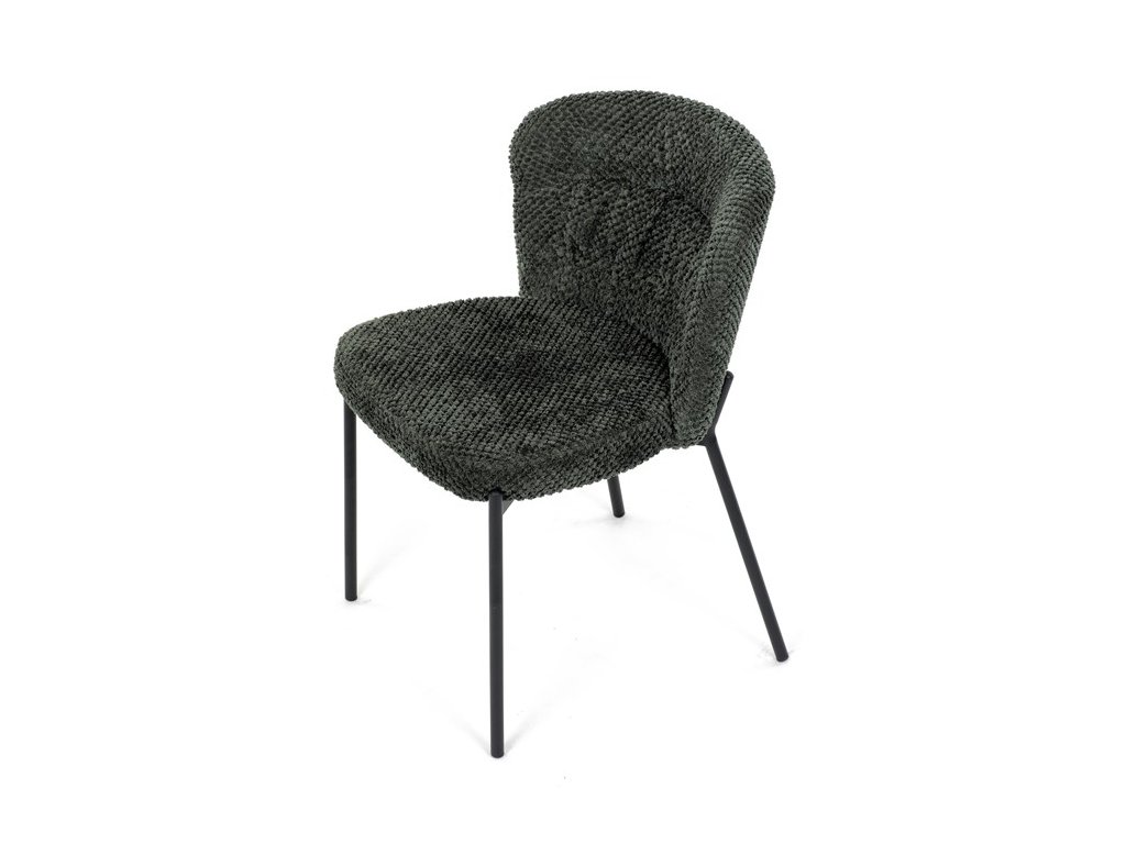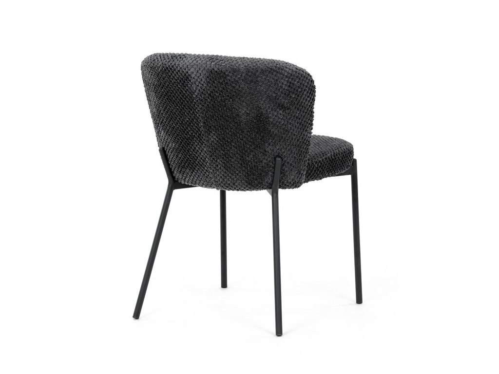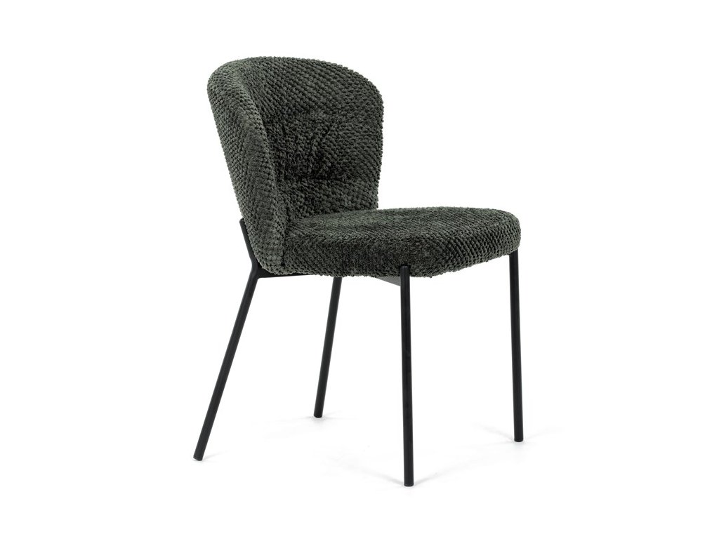 Jedálenská stolička v zaujímavom modernom dizajne, spájajúca eleganciu s praktickými vlastnosťami, bude určite sviežim oživením každého interiéru. Čalúnenie z trendovej látky Bouclé je zárukou skvelého výzoru stoličky, taktiež ale prináša výborné vlastnosti ako ľahká údržba či príjemnosť na dotyk, taktiež je vhodná k domácim mazlíčkom. Komfortný sedák a zaoblené operadlo poskytuje pohodlné posedenie, pevné kovové nohy dodávajú stoličke potrebnú stabilitu, ich čierna farba dodáva nádych elegancie. Vďaka svojej ľahkej konštrukcii, modernému dizajnu a ľahkej údržbe je ideálna voľba pre váš jedálenská kútik.