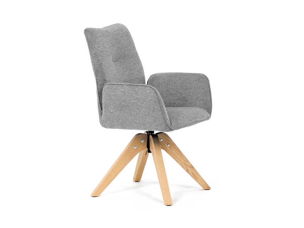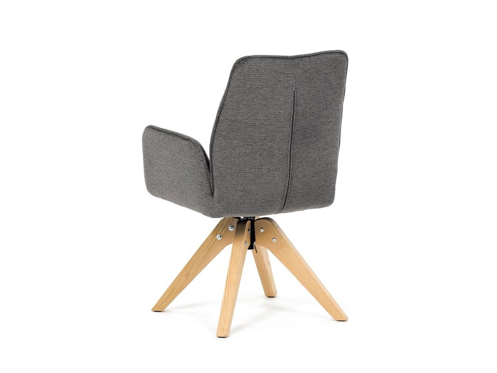 Štýlové jedálenské kreslo v modernom dizajne, ktorá kombinuje komfort a eleganciu. Pohodlné sedadlo aj operadlo sú čalúnené vodeodolnou látkou v príjemnom tmavo sivom odtieni, čo z kresla robí skvelý a univerzálny doplnok do akéhokoľvek interiéru. Masívne drevené nohy v prírodnej farbe dodávajú kreslu stabilitu a odolnosť, zatiaľ čo otočný mechanizmus s funkciou 360 ° prináša užívateľský komfort. Toto jedálenské kreslo je ideálne nielen do domácností, ale aj do kaviarní či reštaurácií, kde je požadovaný moderný a funkčný nábytok.Dodatočné parametre