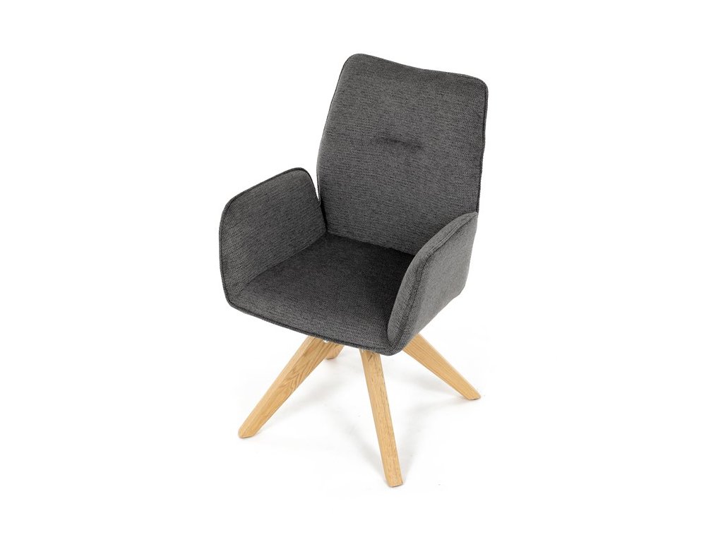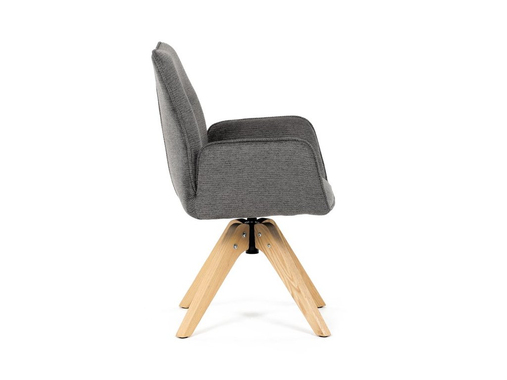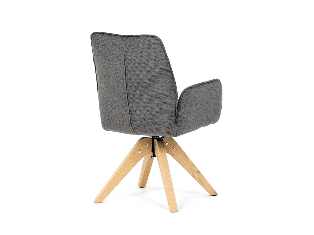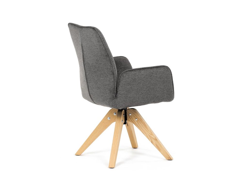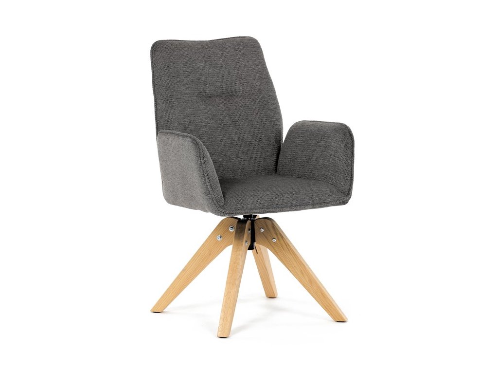 Štýlové jedálenské kreslo v modernom dizajne, ktorá kombinuje komfort a eleganciu. Pohodlné sedadlo aj operadlo sú čalúnené vodeodolnou látkou v príjemnom tmavo sivom odtieni, čo z kresla robí skvelý a univerzálny doplnok do akéhokoľvek interiéru. Masívne drevené nohy v prírodnej farbe dodávajú kreslu stabilitu a odolnosť, zatiaľ čo otočný mechanizmus s funkciou 360 ° prináša užívateľský komfort. Toto jedálenské kreslo je ideálne nielen do domácností, ale aj do kaviarní či reštaurácií, kde je požadovaný moderný a funkčný nábytok.Dodatočné parametre