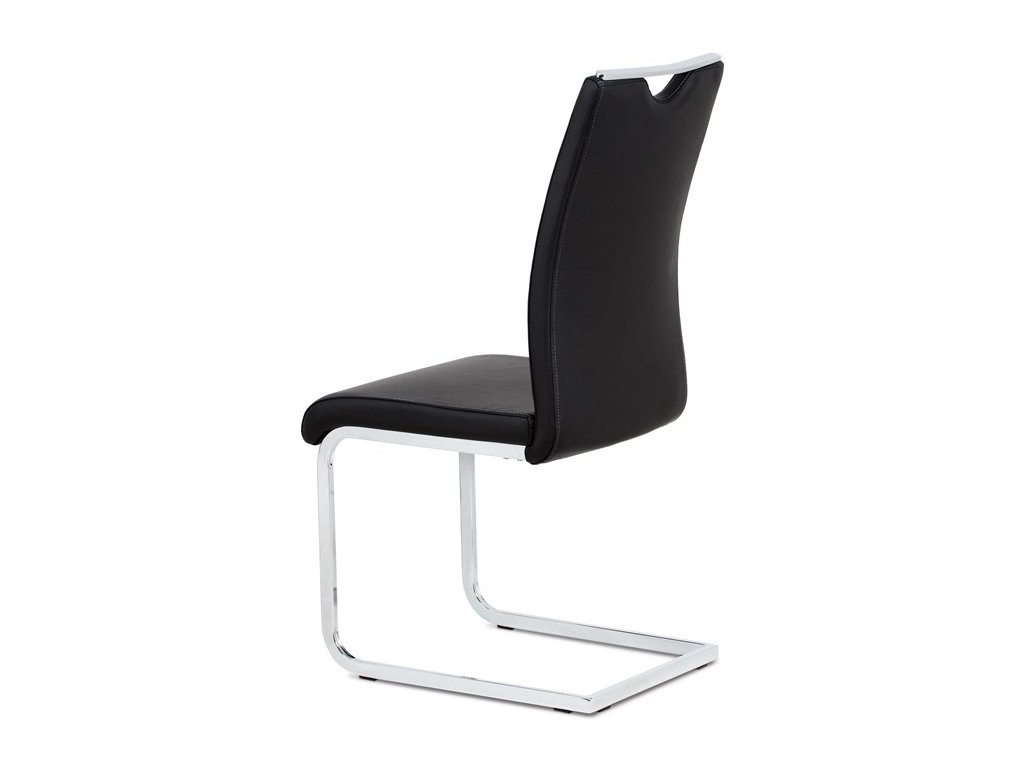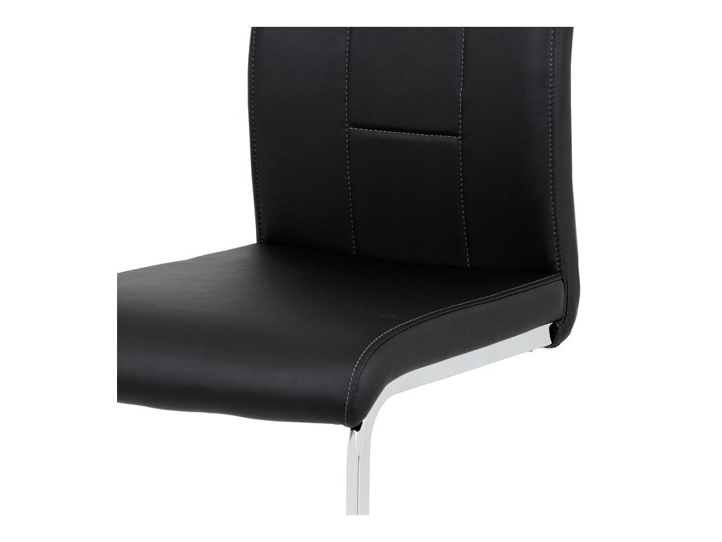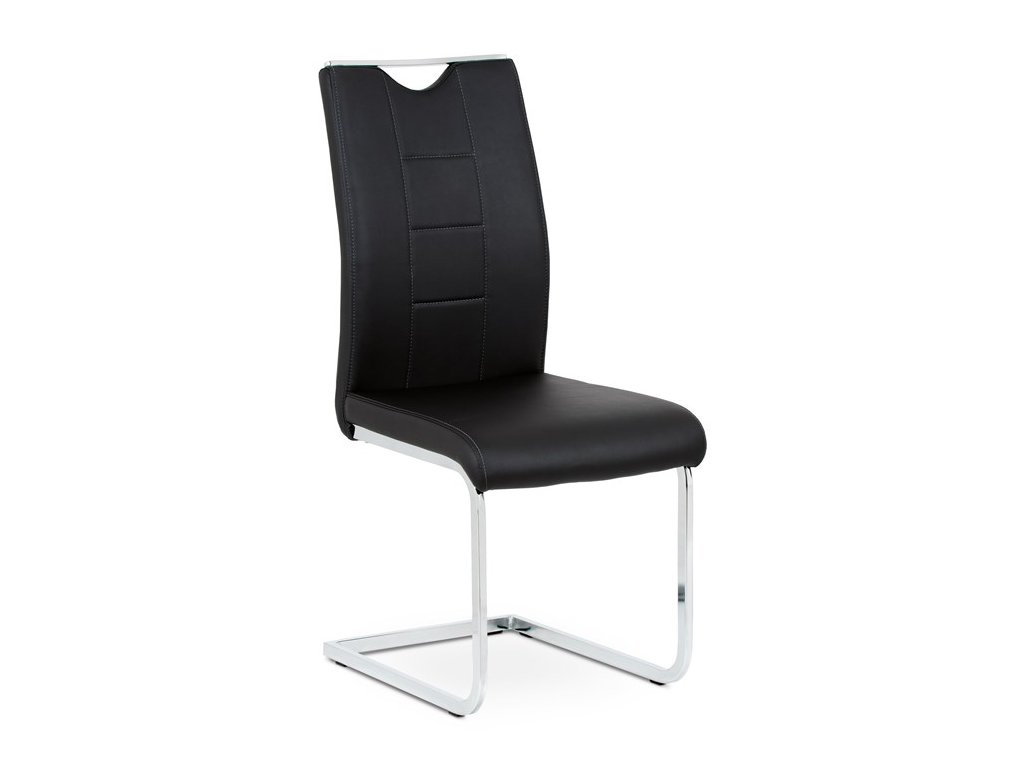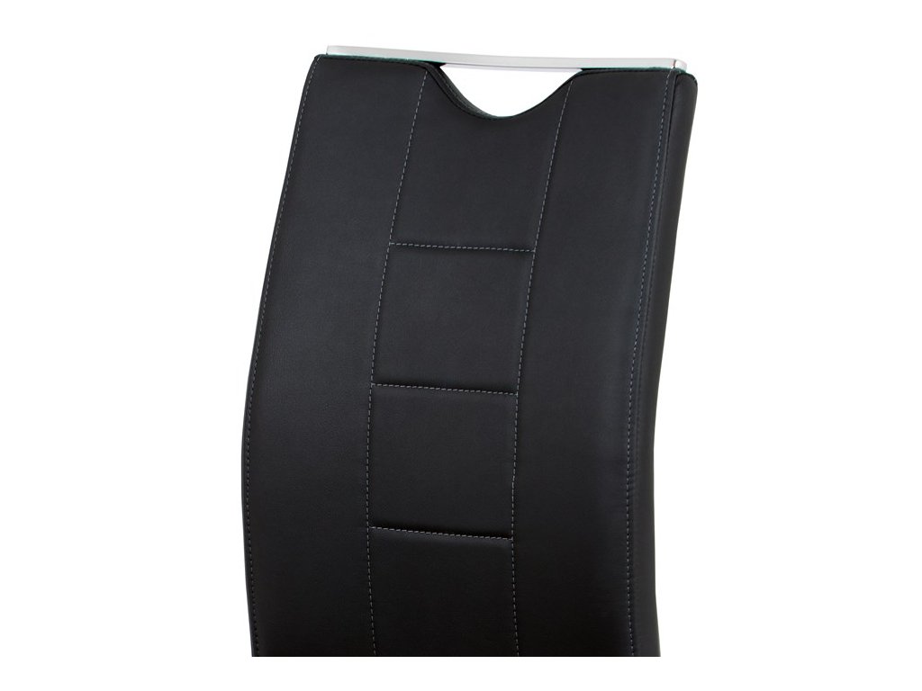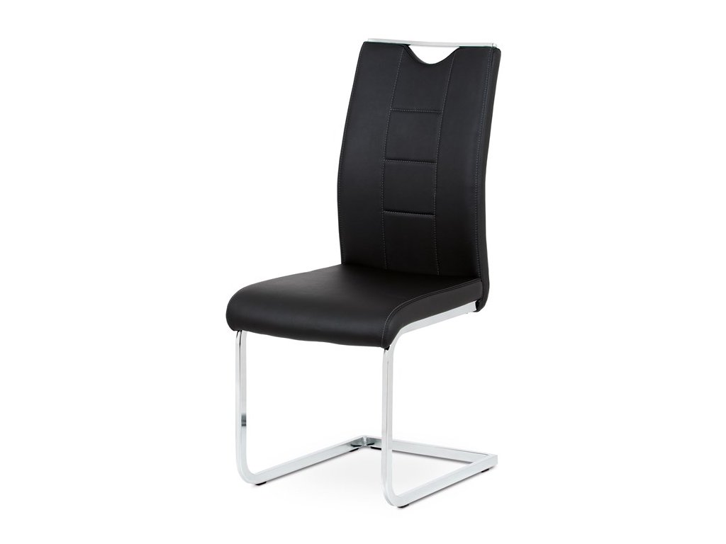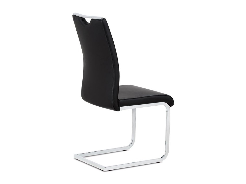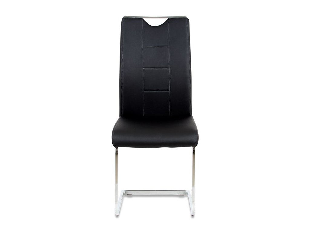 Atraktívna stolička, ktorá bude ozdobou každej jedálne či kuchyne. Prevedenie v čiernej ekokoži s dekoratívnym prešitím v kombinácii s pochrómovaným madlom a podnožou v moderných hranatých prierezoch sú jednoznačne zárukou aktuálneho trendu. Praktické madlo je skvelým bonusom stoličky, ľahké uchytenie a manipulácia bude pre každého užívateľa hračkou.