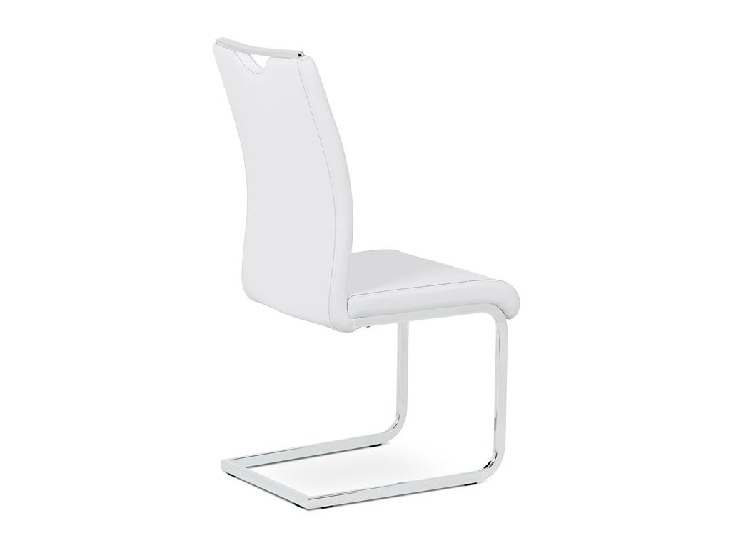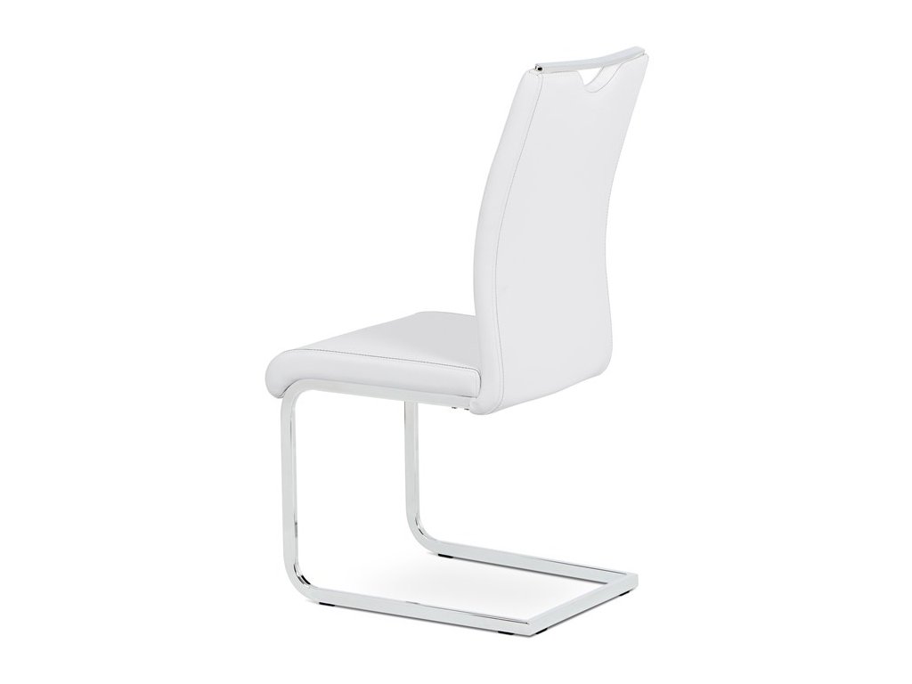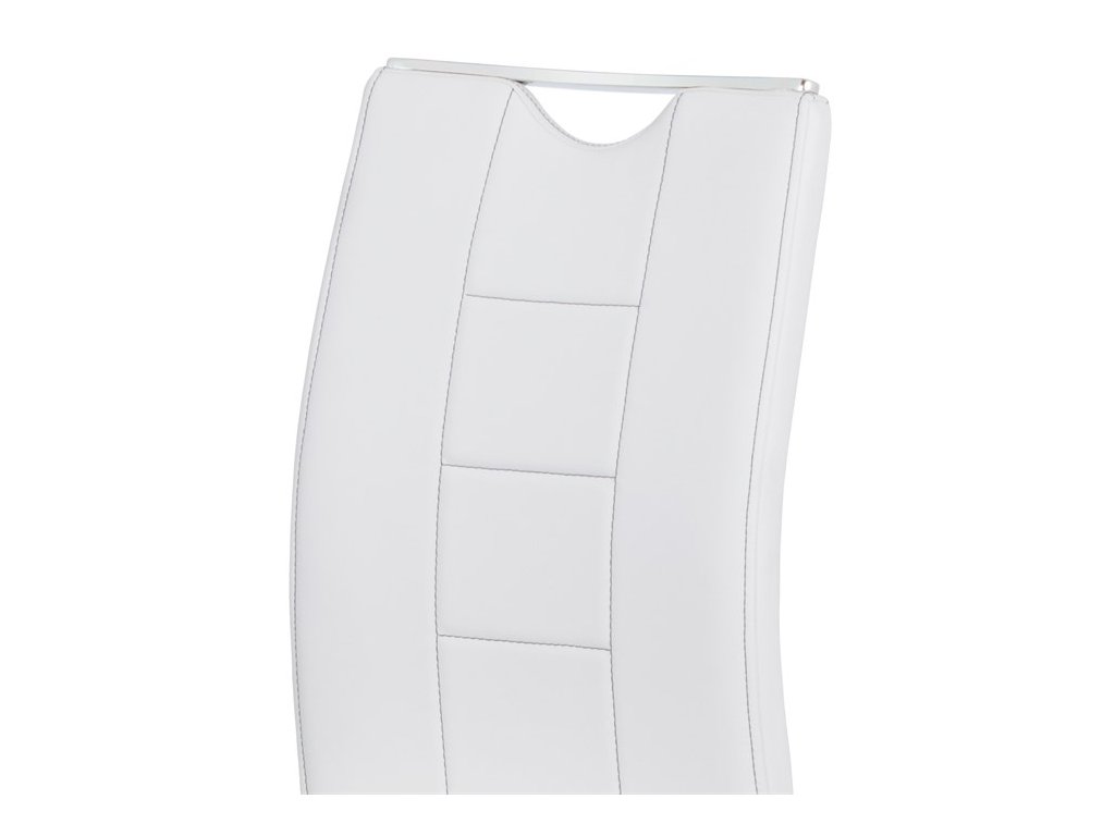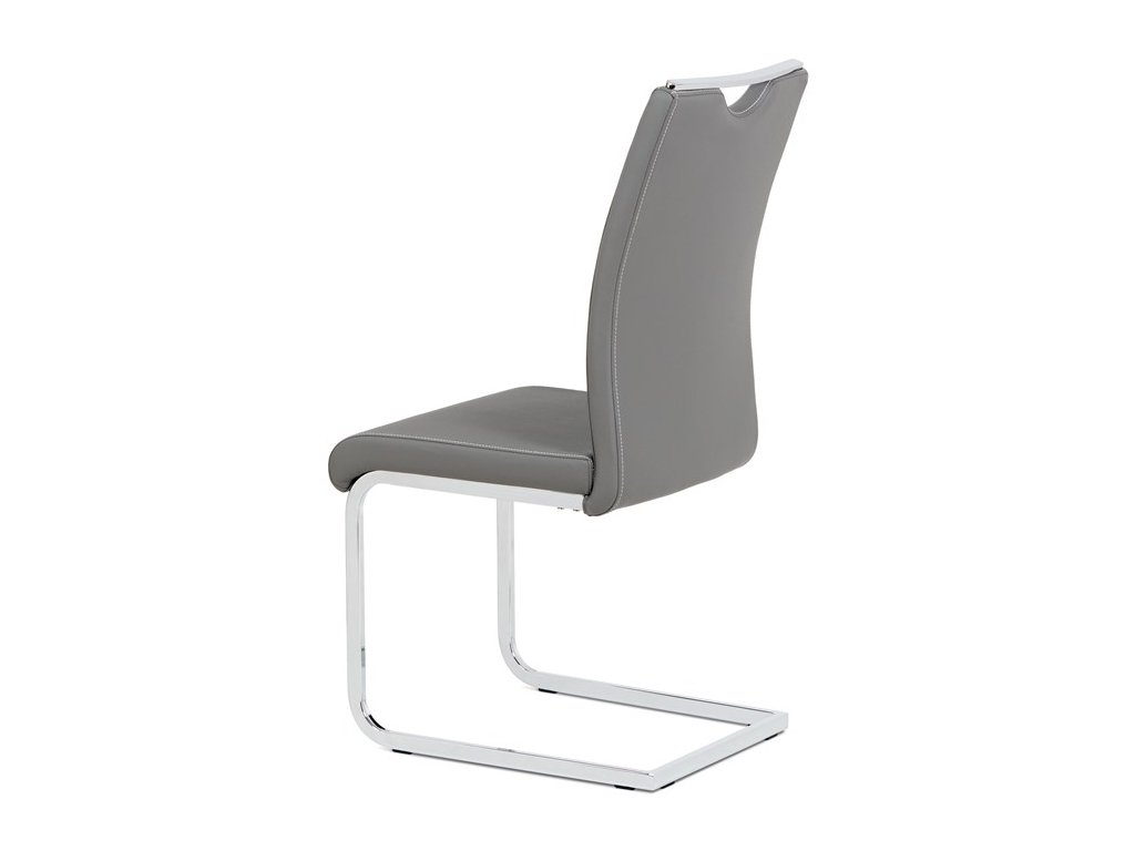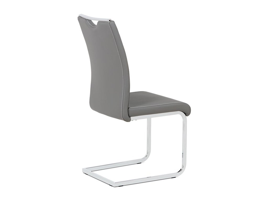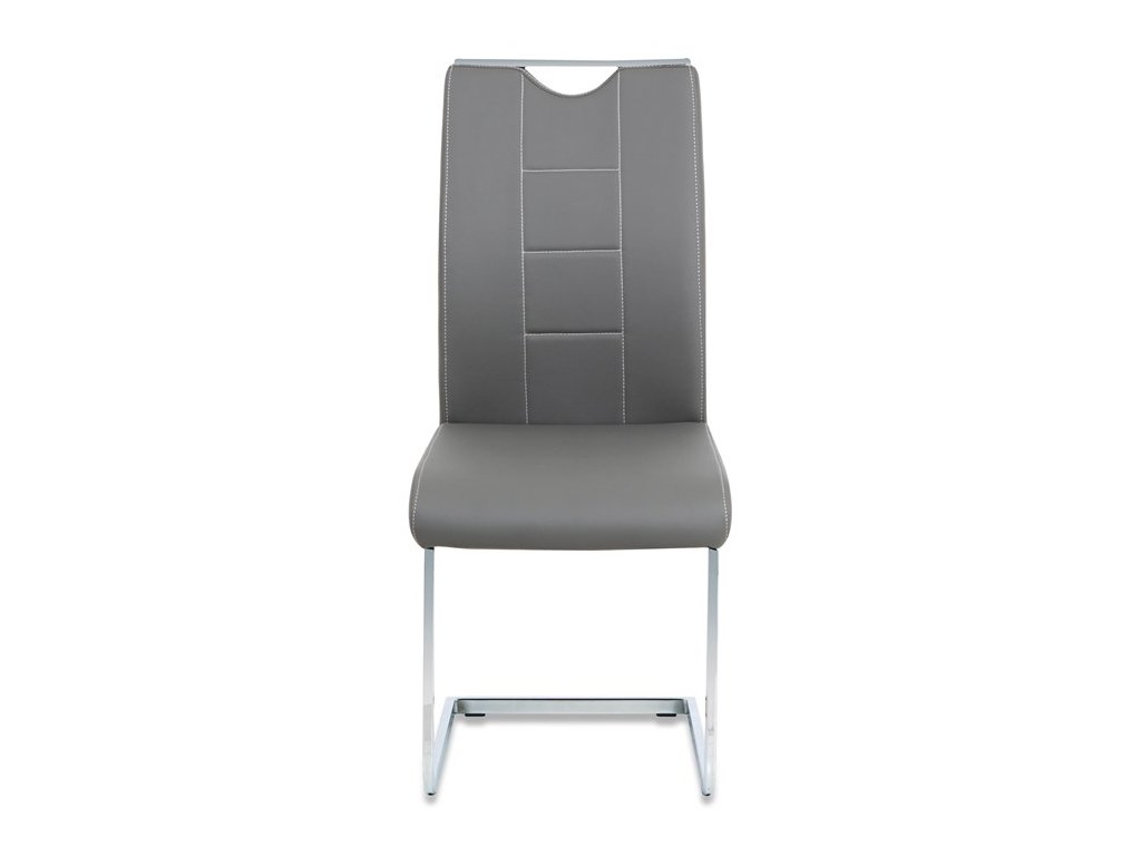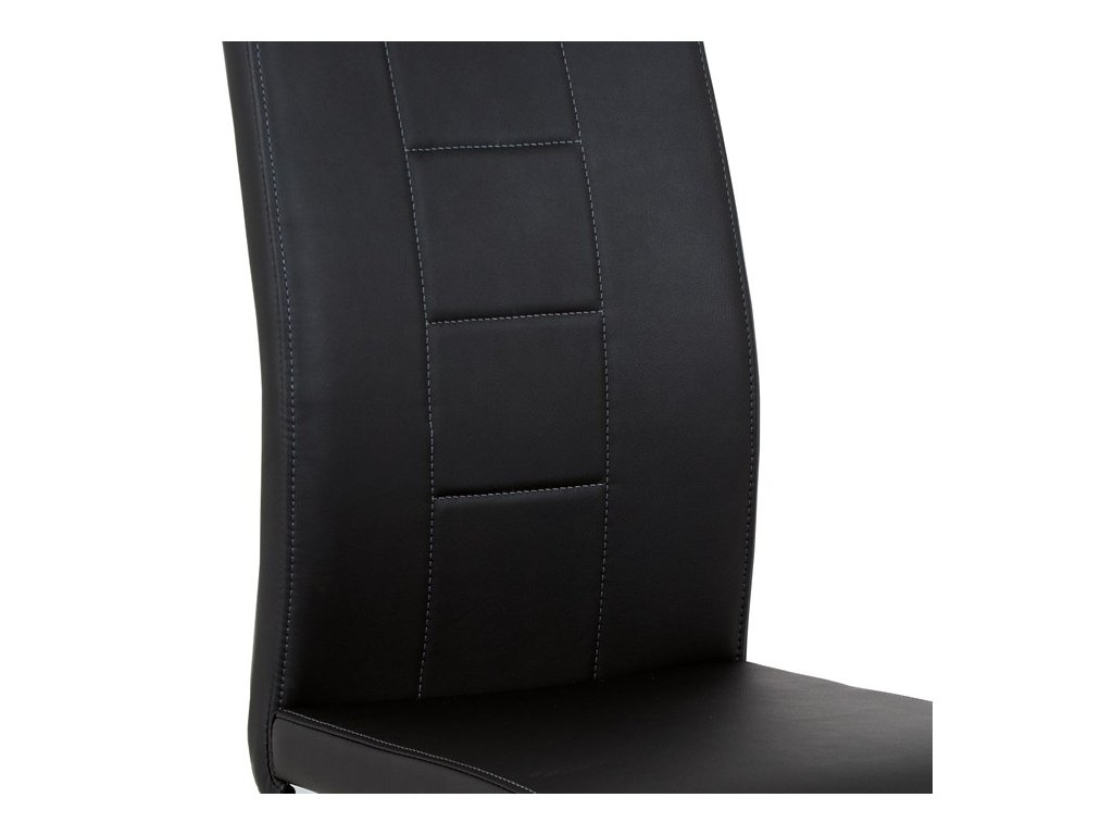 Atraktívna stolička, ktorá bude ozdobou každej jedálne či kuchyne. Prevedenie v čiernej ekokoži s dekoratívnym prešitím v kombinácii s pochrómovaným madlom a podnožou v moderných hranatých prierezoch sú jednoznačne zárukou aktuálneho trendu. Praktické madlo je skvelým bonusom stoličky, ľahké uchytenie a manipulácia bude pre každého užívateľa hračkou.