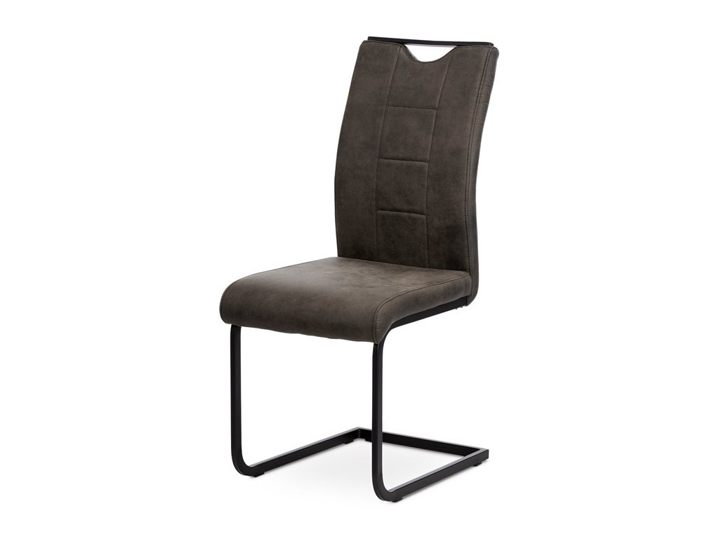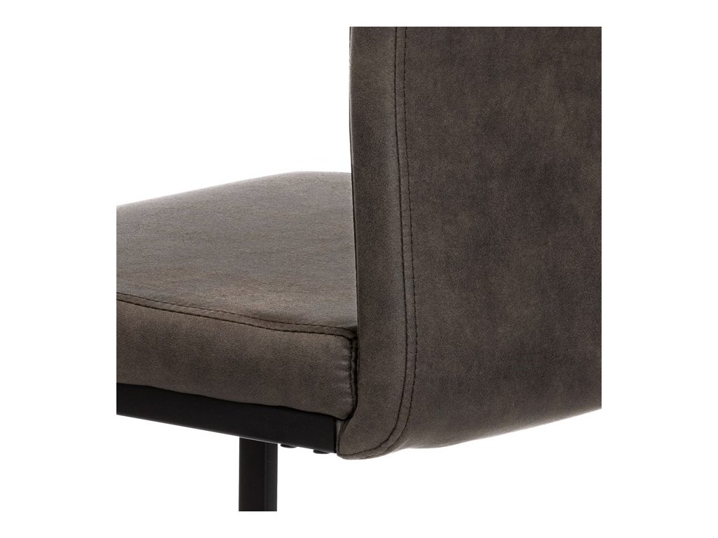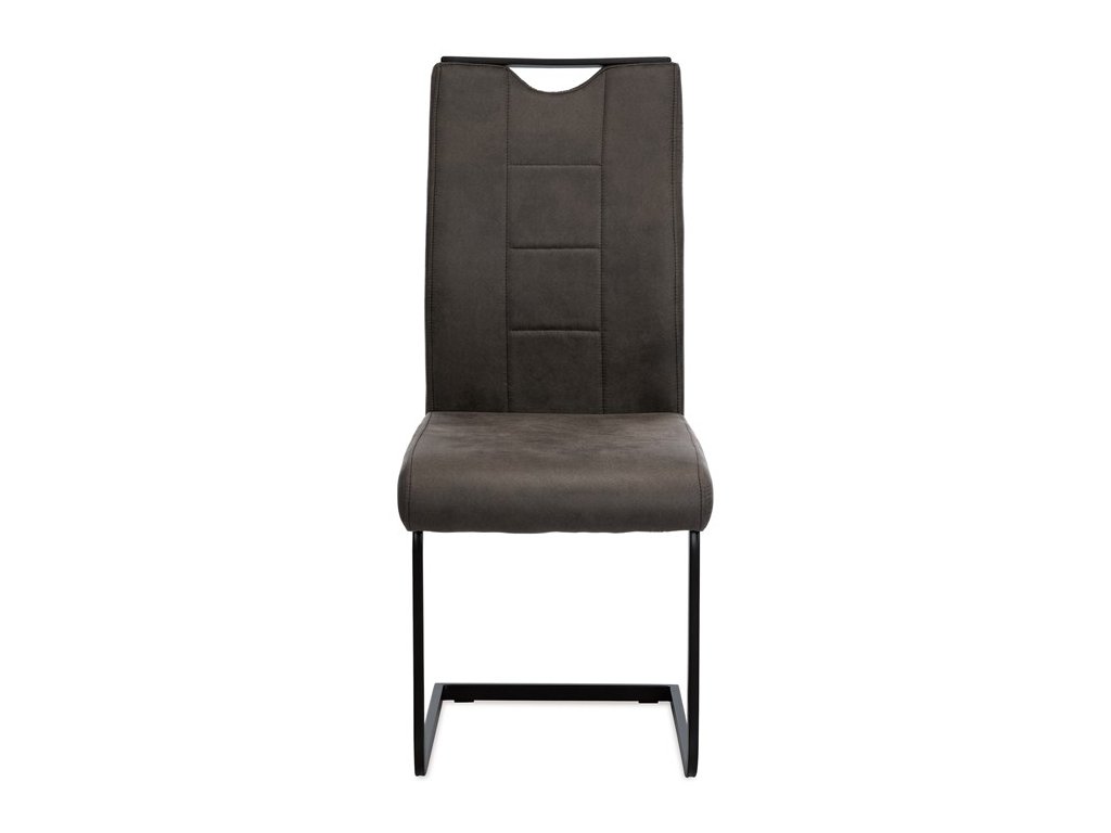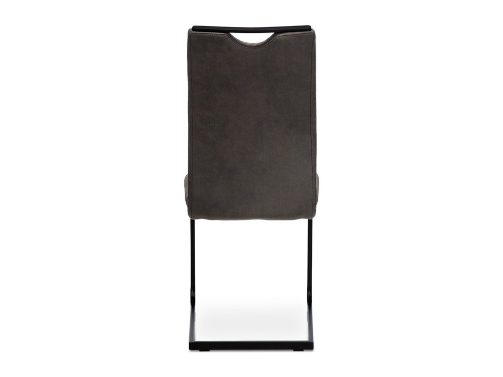 Jedálenská stolička v industriálnom štýle. Poťah je zo sivej látky v trendy dekore vintage kože, so štýlovým prešitím operadla aj sedadla. Industriálny vzhľad podčiarkuje kovová pohupová podnož lakovaná čiernou matnou práškovou farbou. Je trendového obdĺžnikového prierezu a je opatrená čiernymi plastovými klzákmi, ktoré znížia riziko poškodenia vašej podlahy na minimum. Pre ľahšiu manipuláciu má stolička aj kovové madlo cez celú hornú časť operadla.Dodatočné parametre