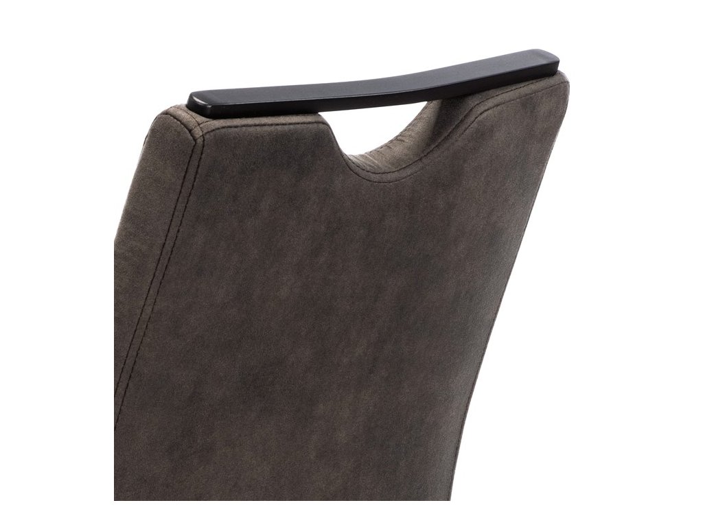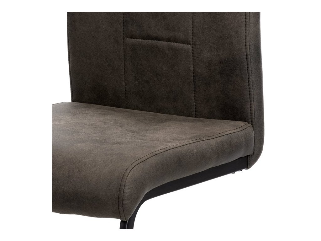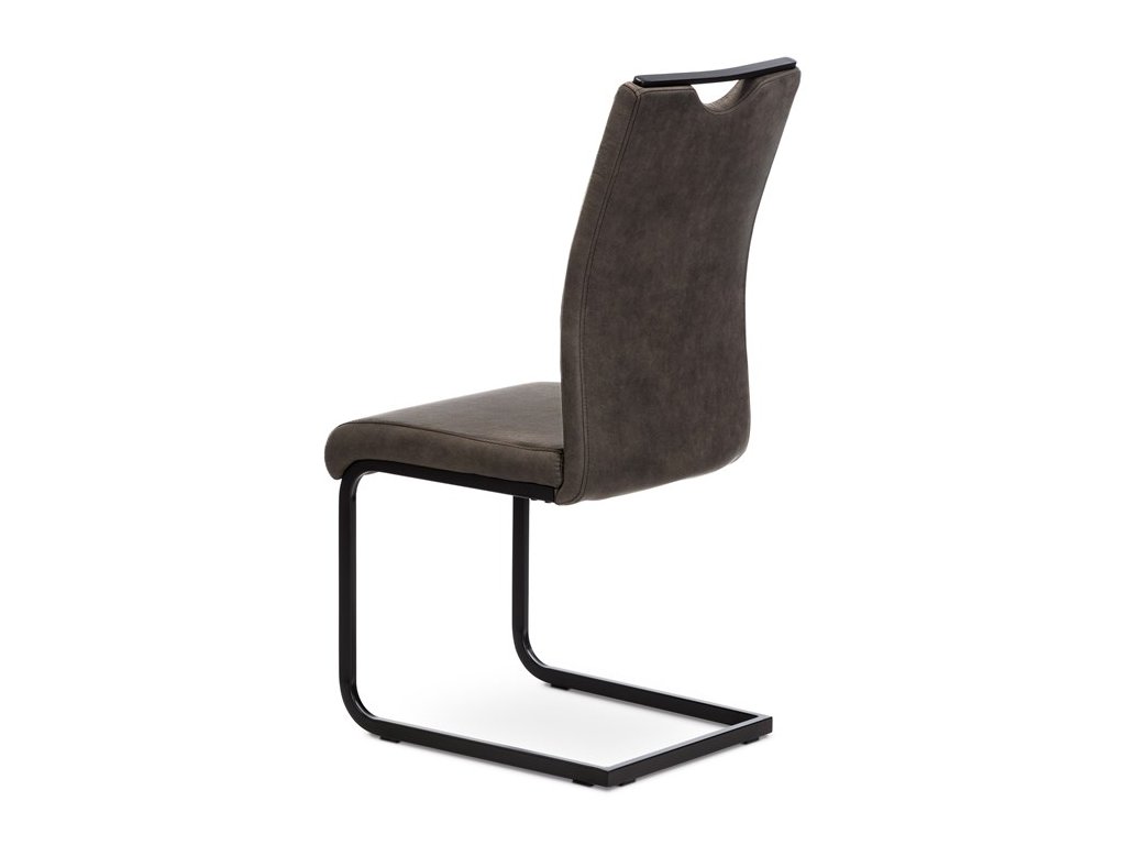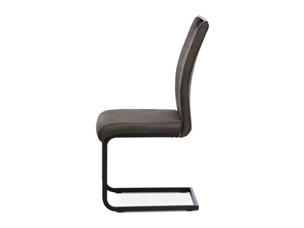Jedálenská stolička v industriálnom štýle. Poťah je zo sivej látky v trendy dekore vintage kože, so štýlovým prešitím operadla aj sedadla. Industriálny vzhľad podčiarkuje kovová pohupová podnož lakovaná čiernou matnou práškovou farbou. Je trendového obdĺžnikového prierezu a je opatrená čiernymi plastovými klzákmi, ktoré znížia riziko poškodenia vašej podlahy na minimum. Pre ľahšiu manipuláciu má stolička aj kovové madlo cez celú hornú časť operadla.Dodatočné parametre