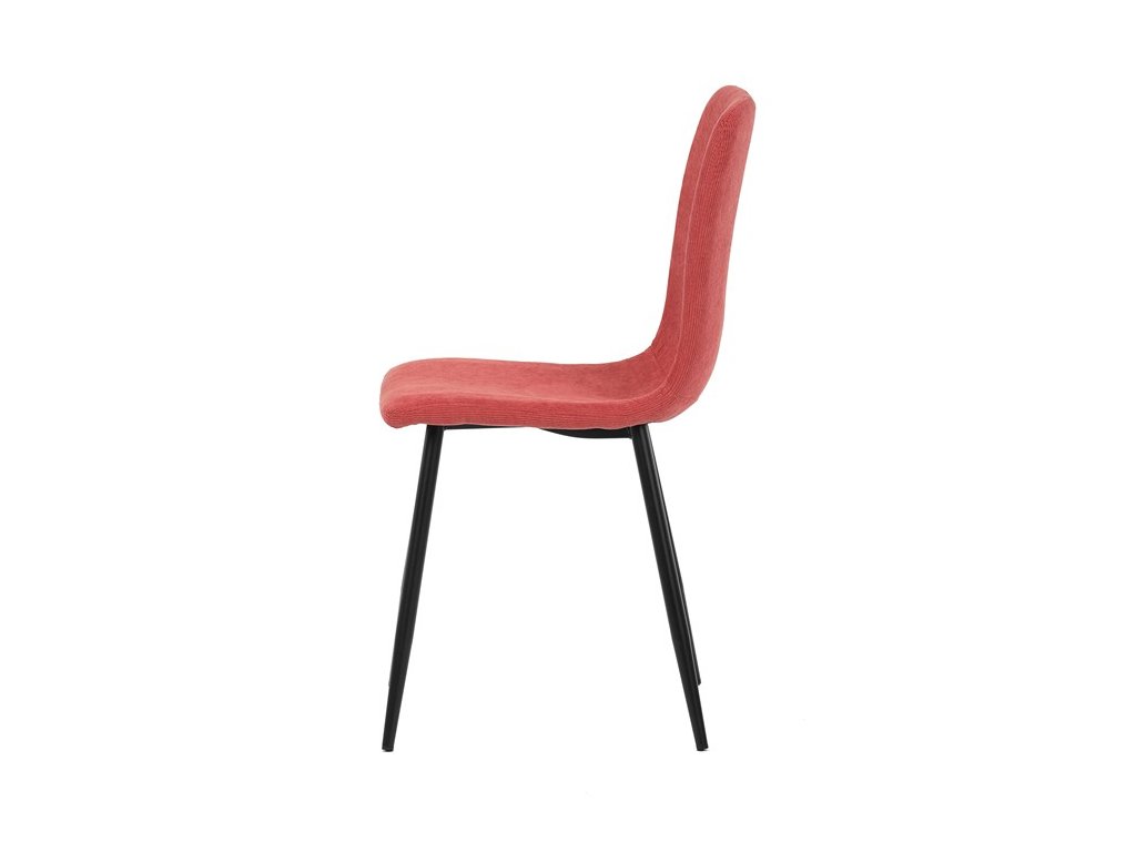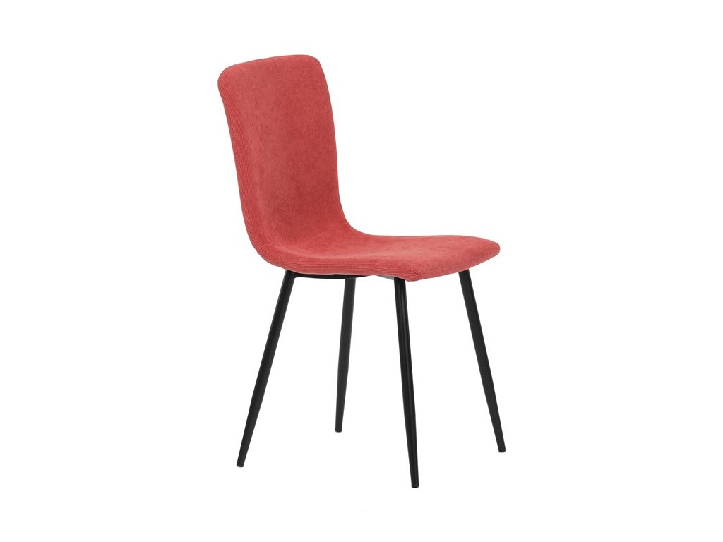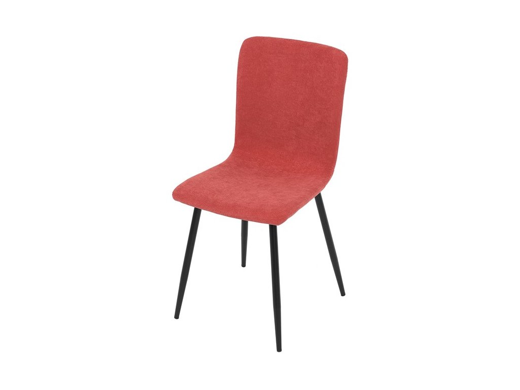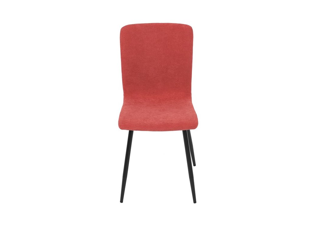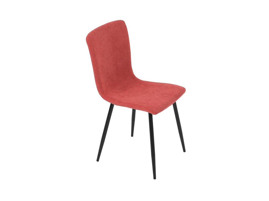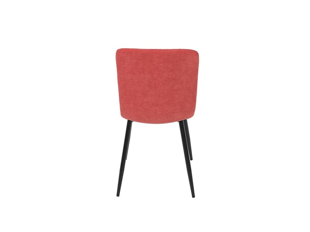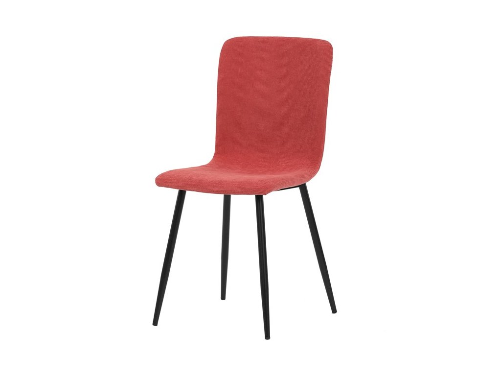 Elegantná jedálenská stolička čalúnená v trendovej manchestrovej látke v červenom odtieni, veľmi príjemnej na dotyk. Celá stolička je ladená v jemných oblých tvaroch, ktoré jej dávajú svojský výzor, do ktorého zapadajú aj kónické nôžky s kruhovým prierezom. Kovové nôžky sú zárukou pevnosti a stability, sú v čiernom odtieni, ktorý dokonale ladí v kombinácii s farbou poťahu. Stolička svojim moderným výzorom bez problémov zaujme svoje miesto nielen v prostredí domova ale aj v akomkoľvek inom interiéri.Dodatočné parametre