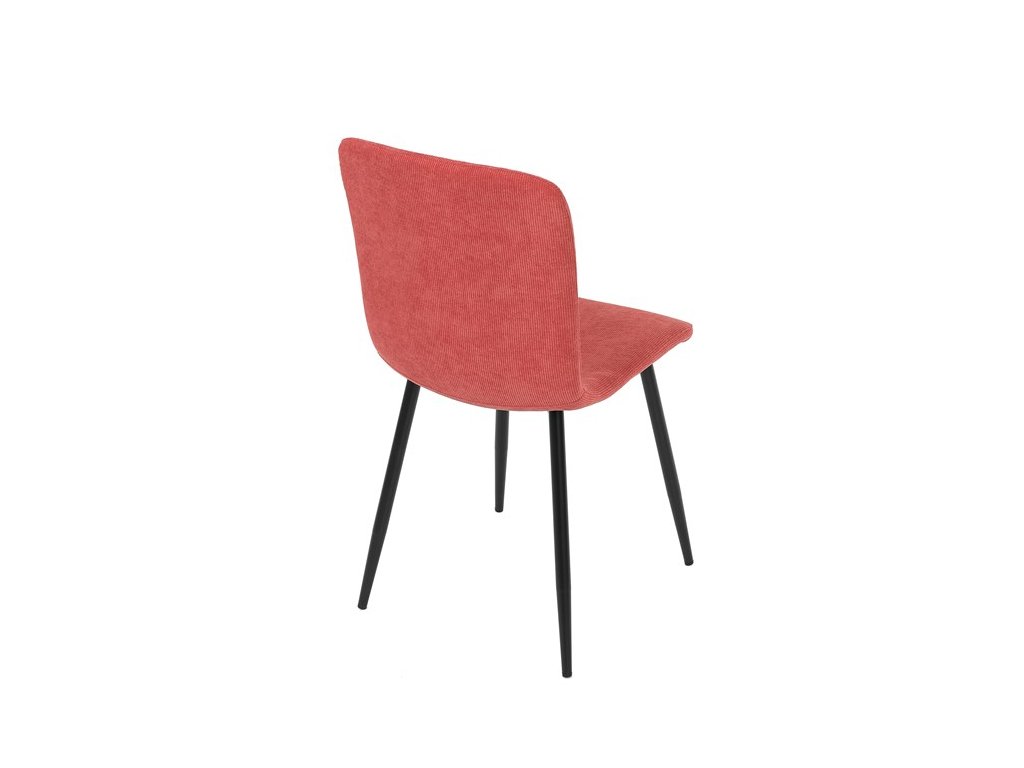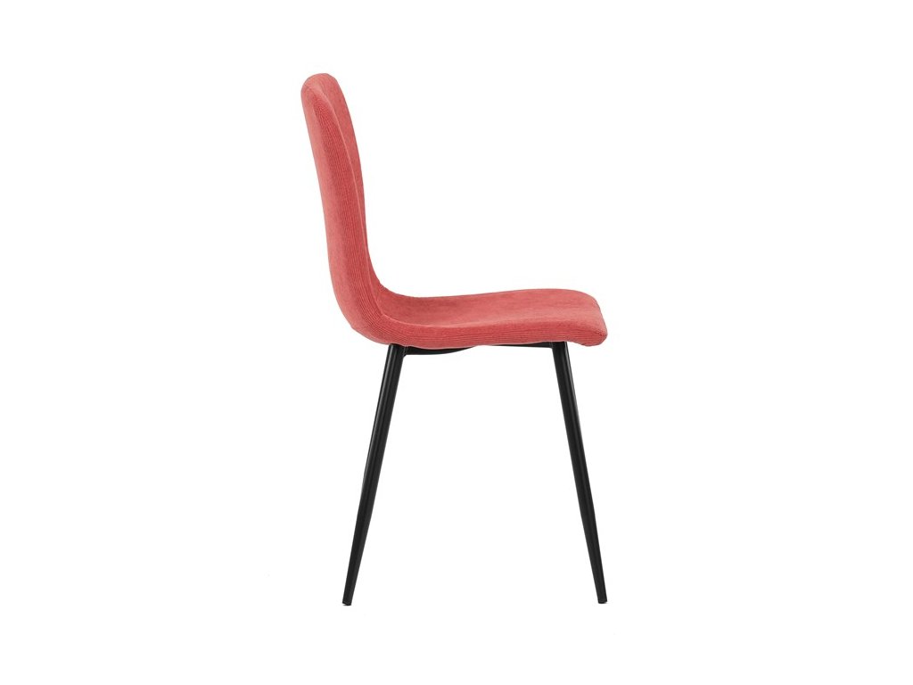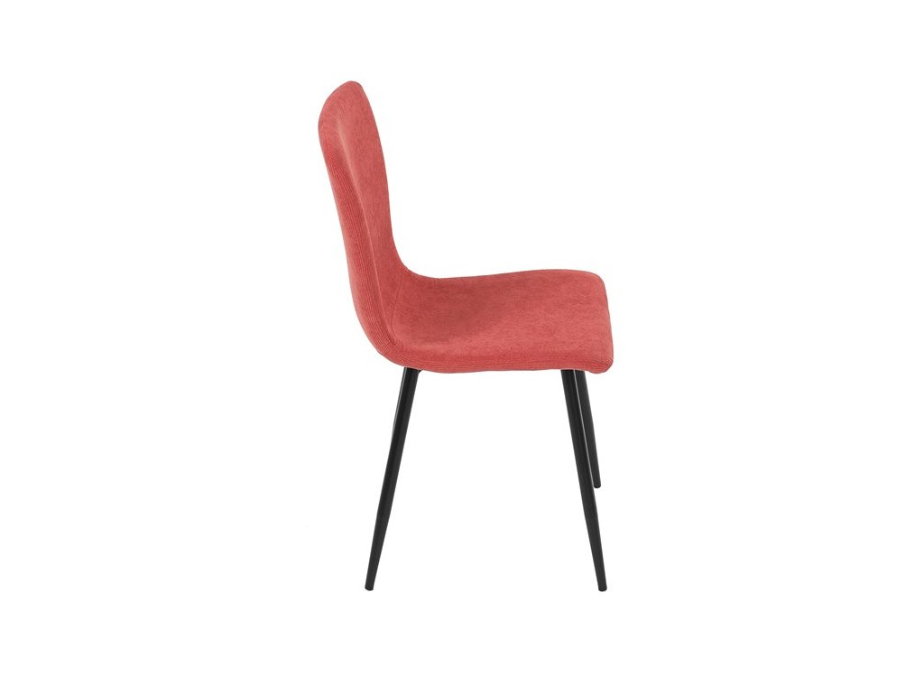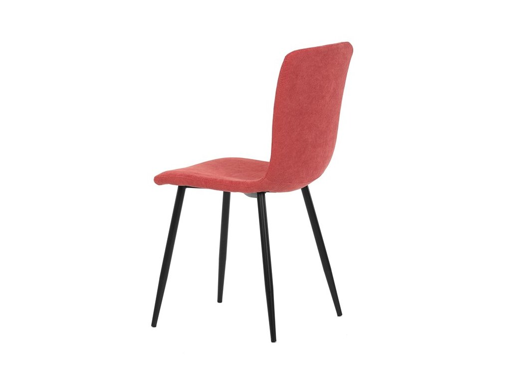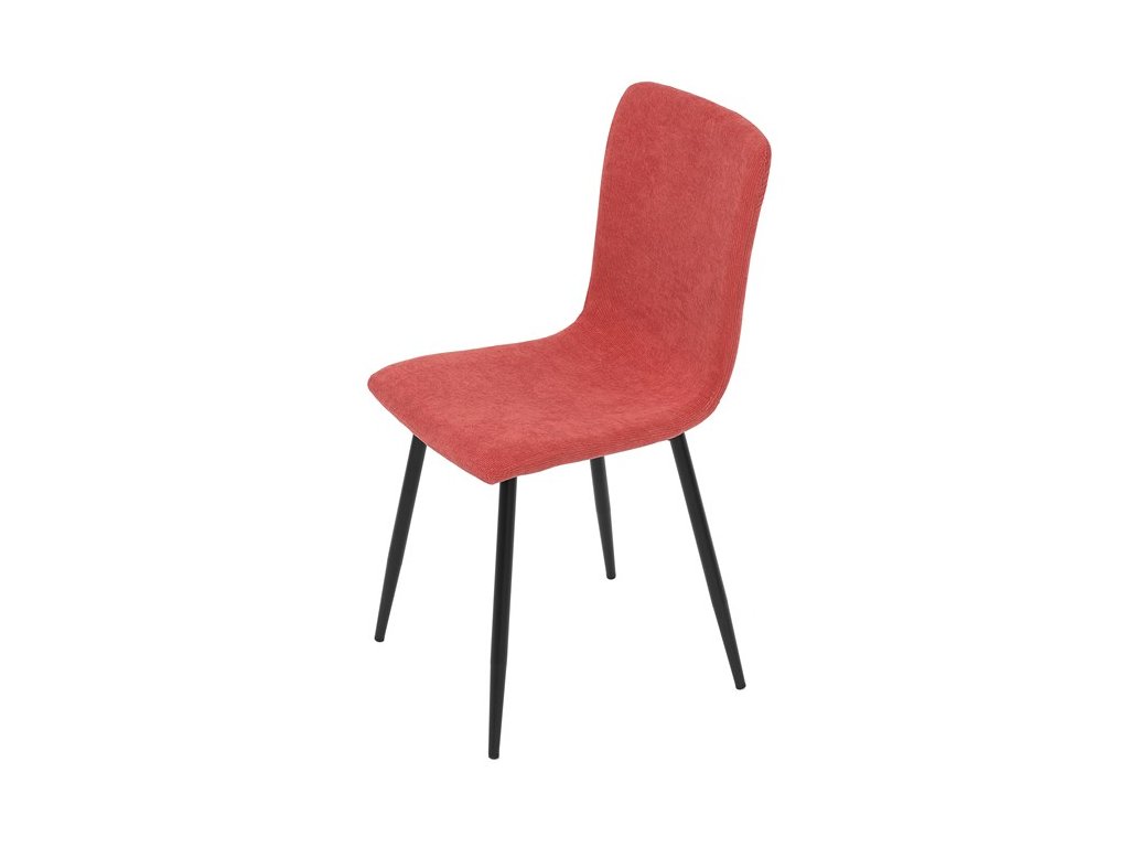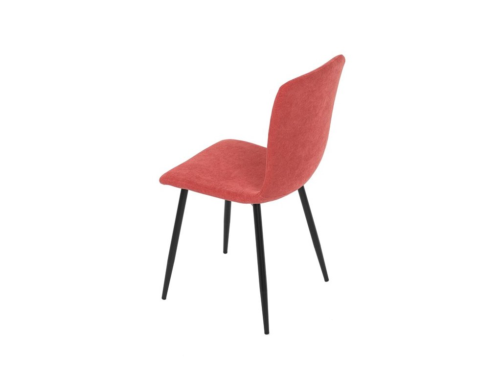 Elegantná jedálenská stolička čalúnená v trendovej manchestrovej látke v červenom odtieni, veľmi príjemnej na dotyk. Celá stolička je ladená v jemných oblých tvaroch, ktoré jej dávajú svojský výzor, do ktorého zapadajú aj kónické nôžky s kruhovým prierezom. Kovové nôžky sú zárukou pevnosti a stability, sú v čiernom odtieni, ktorý dokonale ladí v kombinácii s farbou poťahu. Stolička svojim moderným výzorom bez problémov zaujme svoje miesto nielen v prostredí domova ale aj v akomkoľvek inom interiéri.Dodatočné parametre