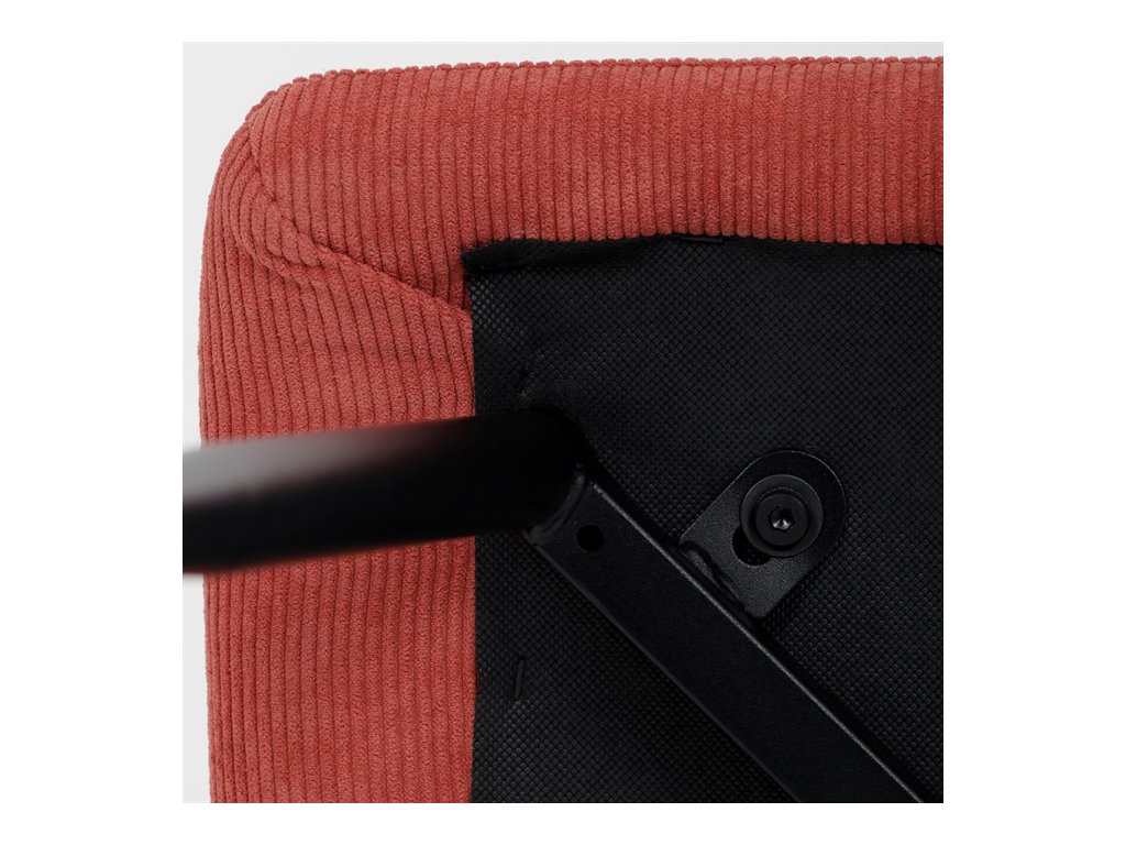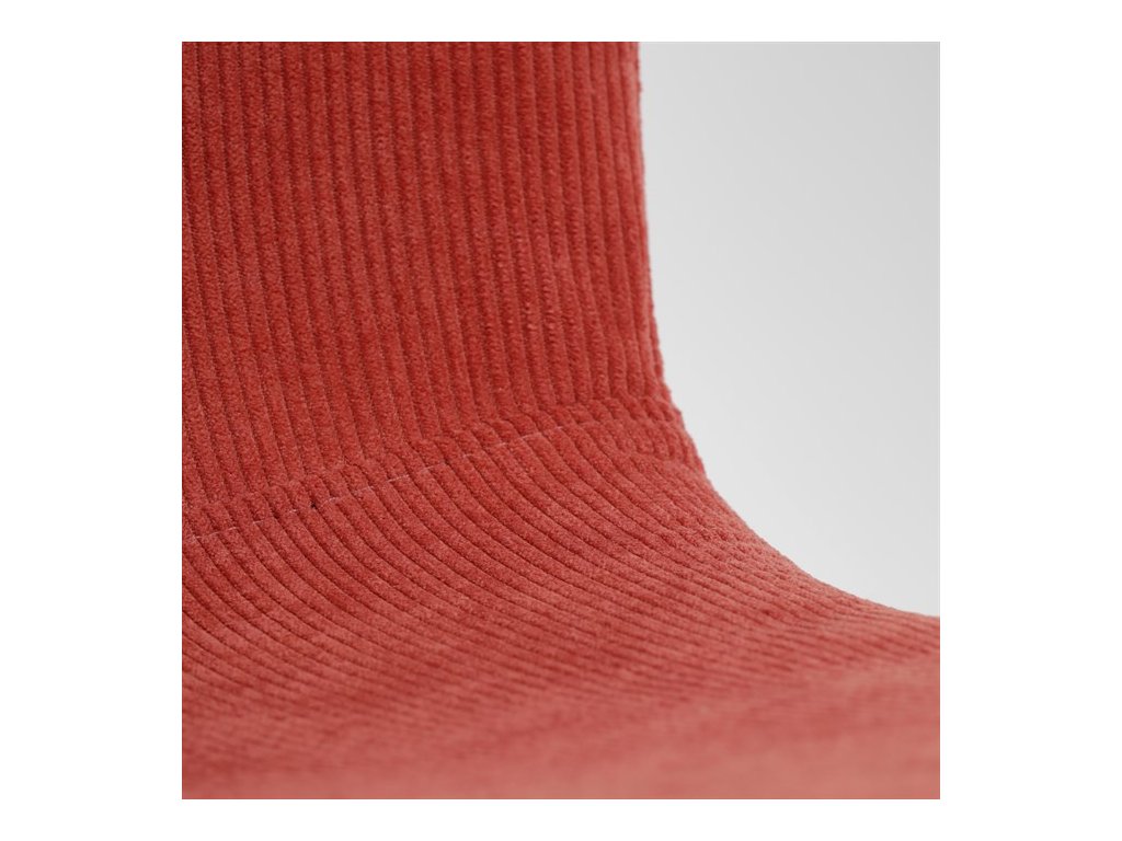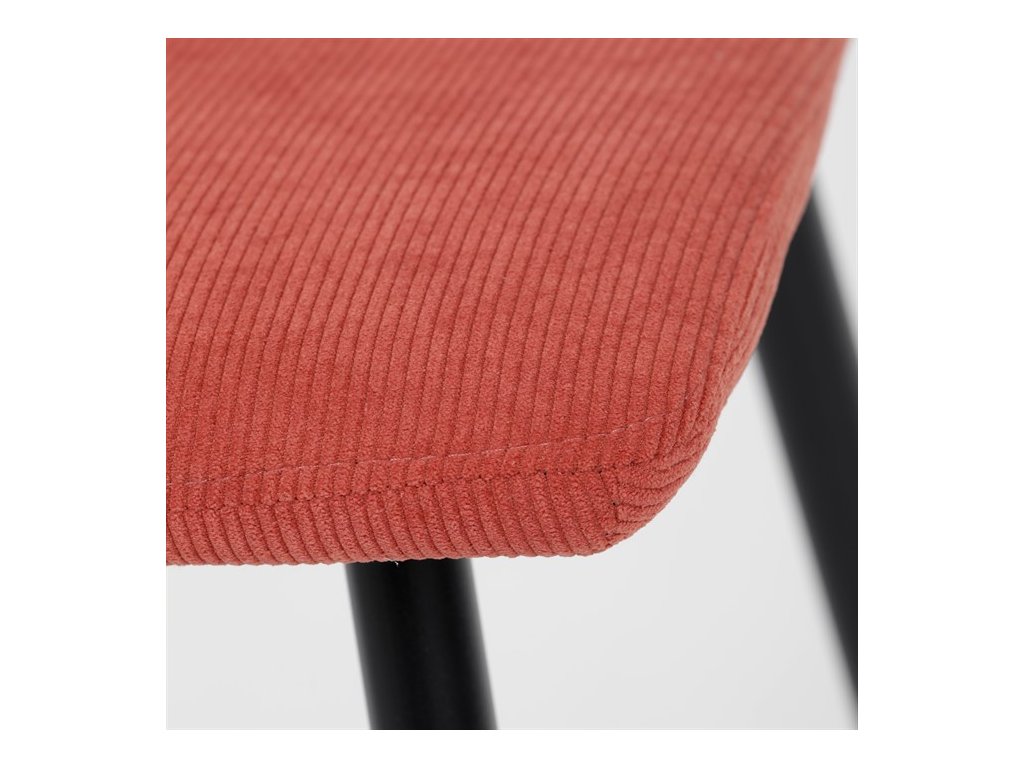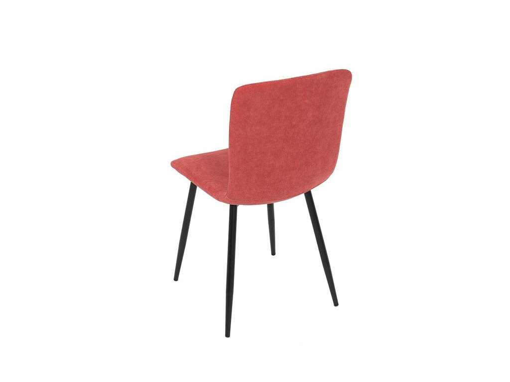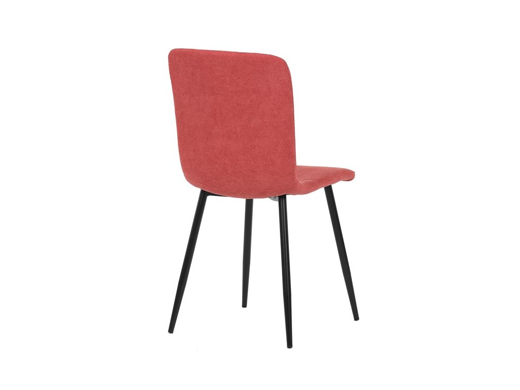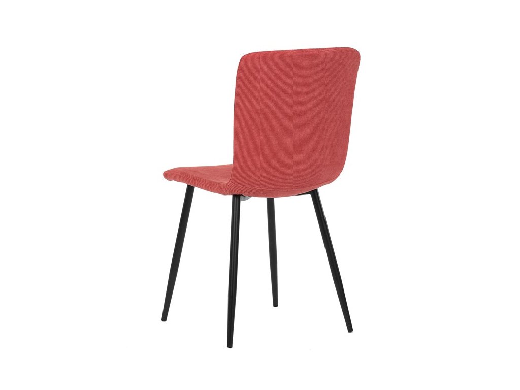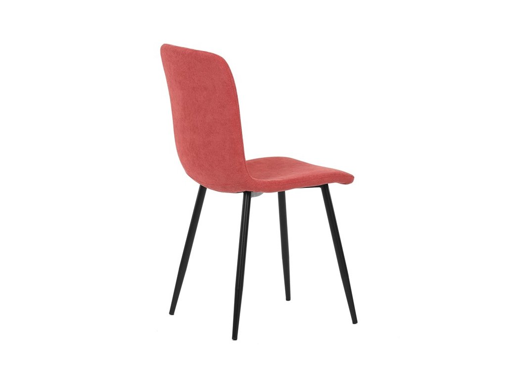 Elegantná jedálenská stolička čalúnená v trendovej manchestrovej látke v červenom odtieni, veľmi príjemnej na dotyk. Celá stolička je ladená v jemných oblých tvaroch, ktoré jej dávajú svojský výzor, do ktorého zapadajú aj kónické nôžky s kruhovým prierezom. Kovové nôžky sú zárukou pevnosti a stability, sú v čiernom odtieni, ktorý dokonale ladí v kombinácii s farbou poťahu. Stolička svojim moderným výzorom bez problémov zaujme svoje miesto nielen v prostredí domova ale aj v akomkoľvek inom interiéri.Dodatočné parametre