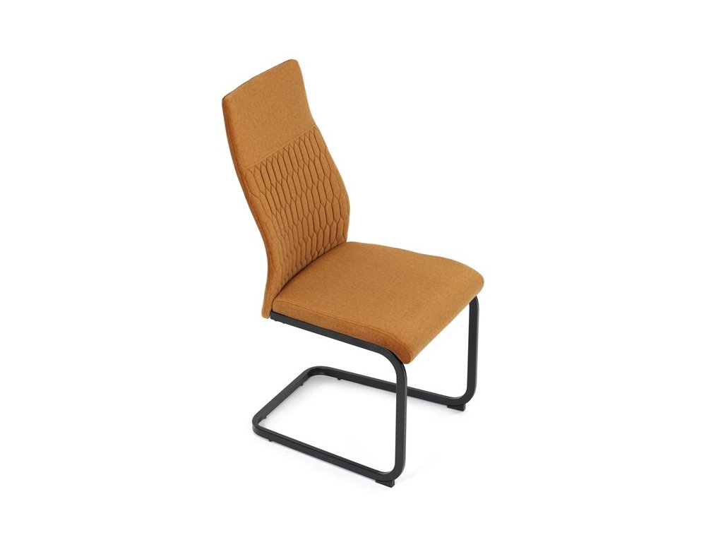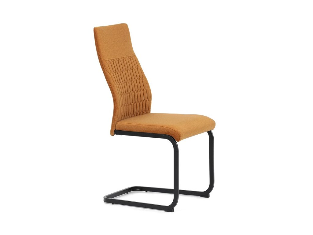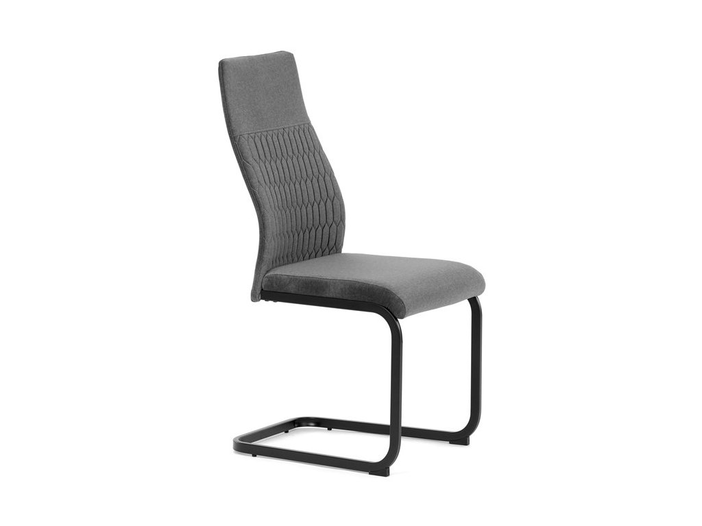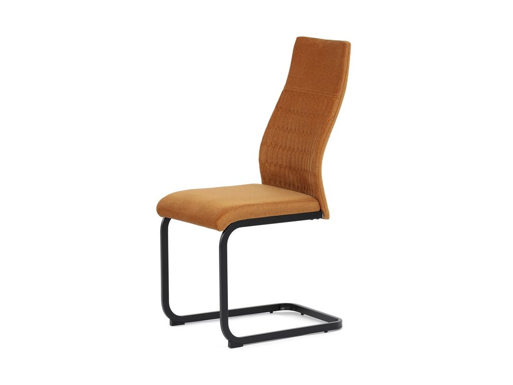 Elegantným a praktickým doplnkom vašej jedálne či kuchyne sa bez problémov stane táto čalúnená stolička. Látkové čalúnenie s neprehliadnuteľným prešívaním, ktoré dáva stoličke svojský výzor, je z príjemnej látky, Čierne kovové nohy s možnosťou jemného pruženia, sú zárukou elegancie a samozrejme aj potrebnej stability a pevnosti. Tento dizajnový kúsok je čistým spojením štýlu a funkčnosti, bude skvelým doplnkom moderného jedálenského interiéru.Dodatočné parametre