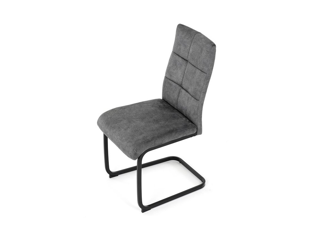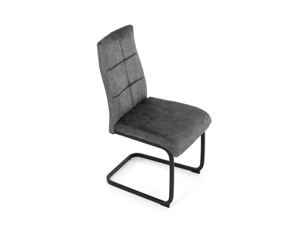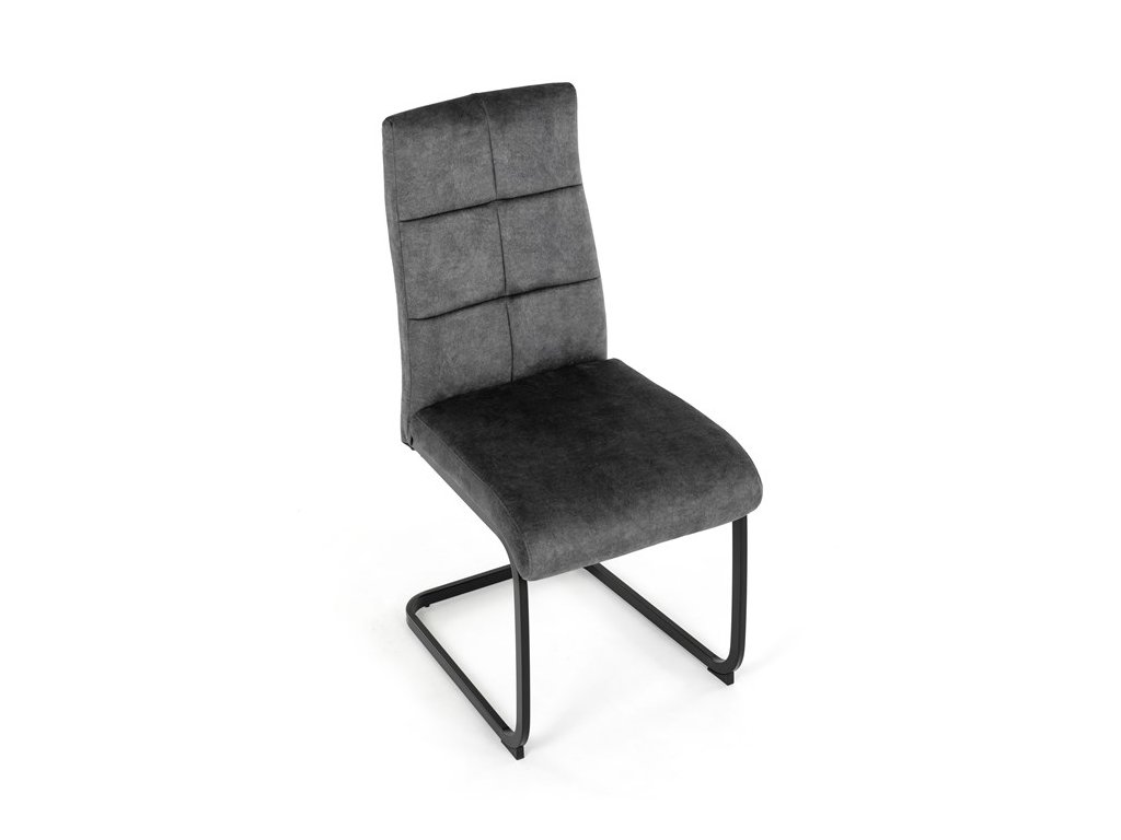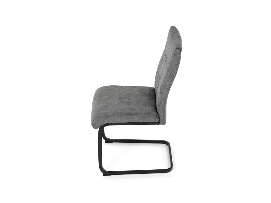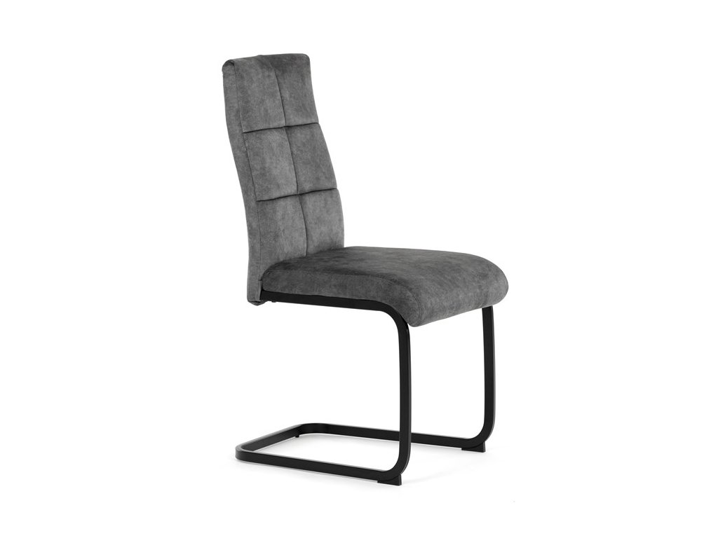 Moderná jedálenská stolička s kovovou podnožou a čalúneným sedadlomElegantná jedálenská stolička, ktorá spája moderný dizajn a vysoký komfort. Sedadlo aj operadlo sú čalúnené príjemnou látkou s dekoratívnym prešitím, čo dodáva stoličke sofistikovaný vzhľad a zaručuje pohodlné sedenie.