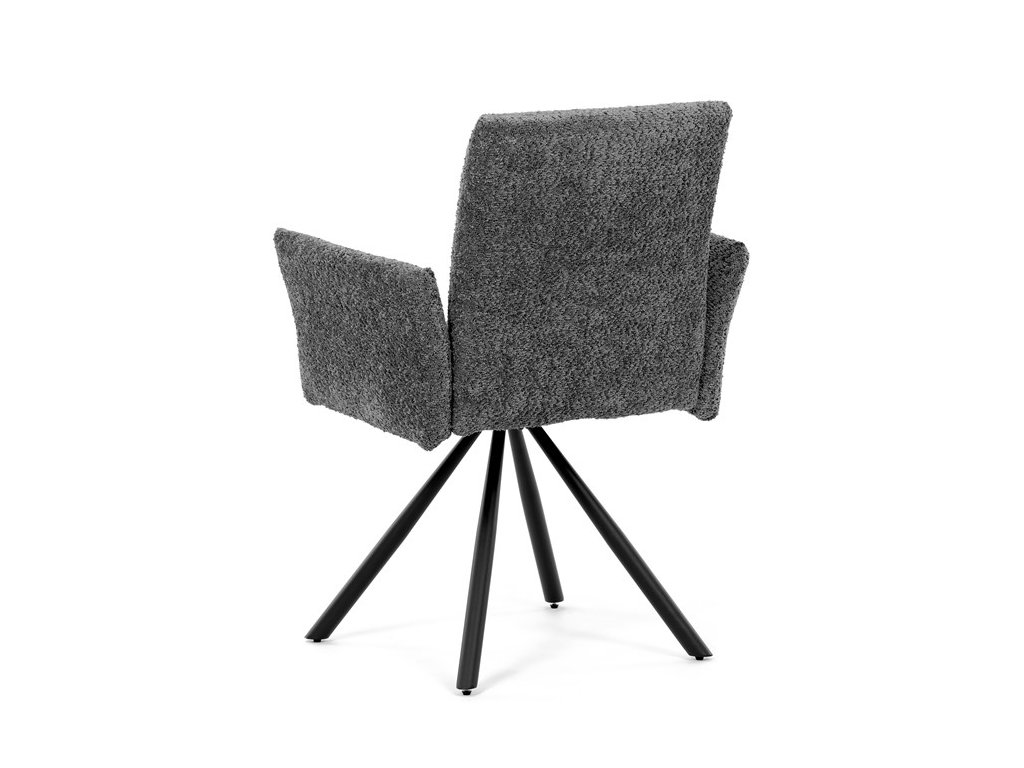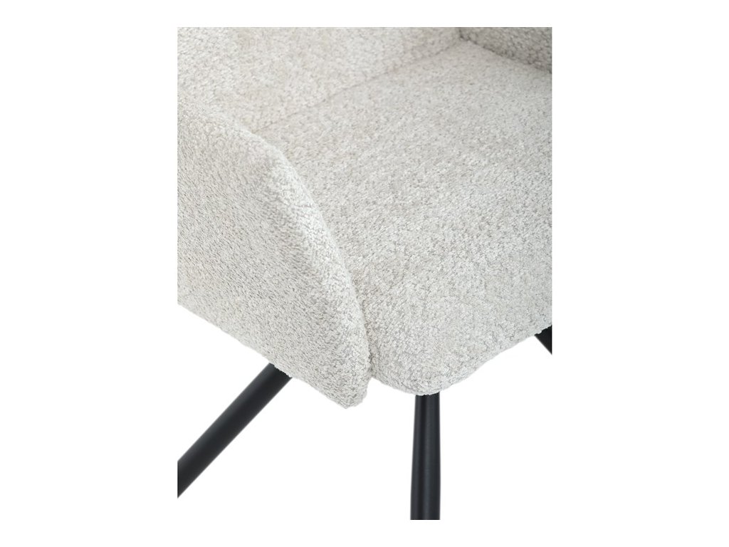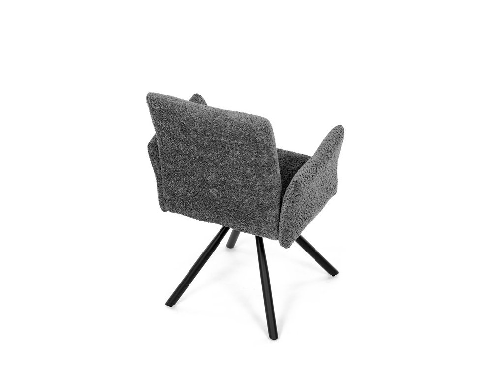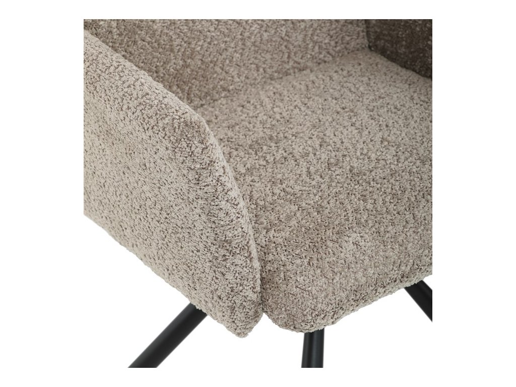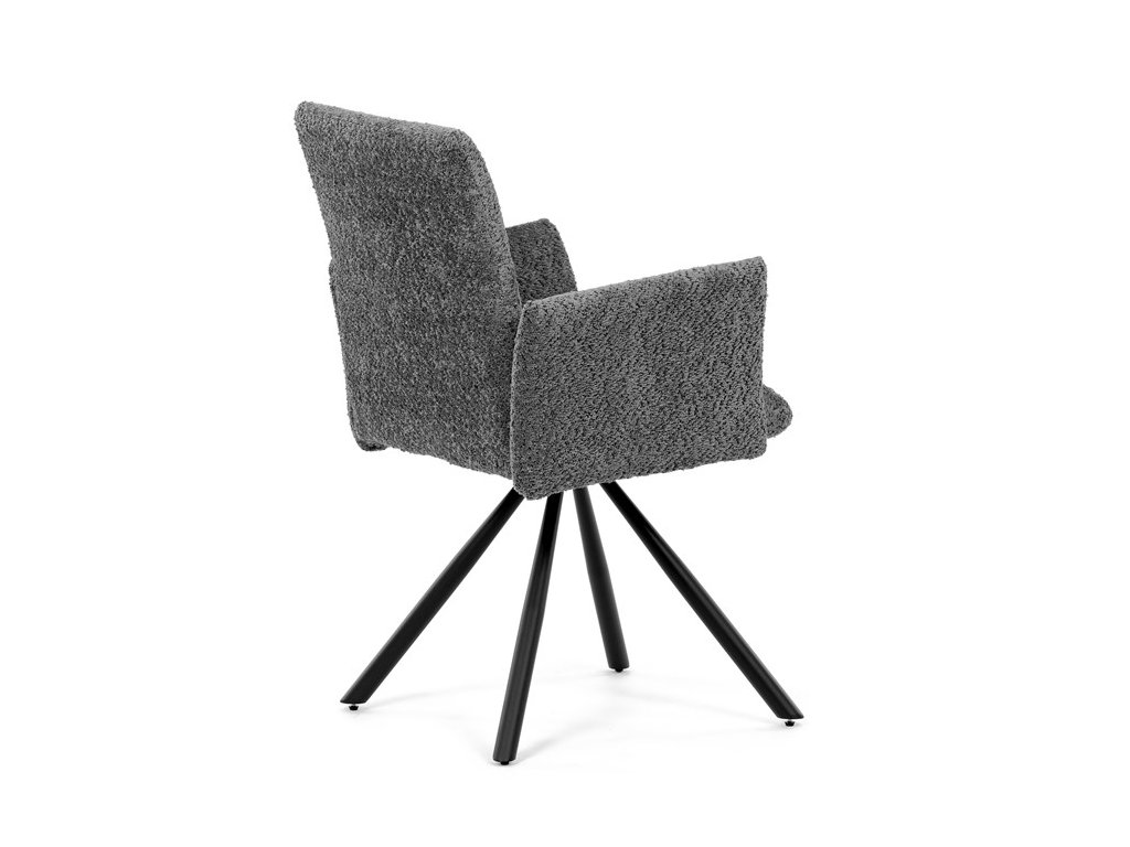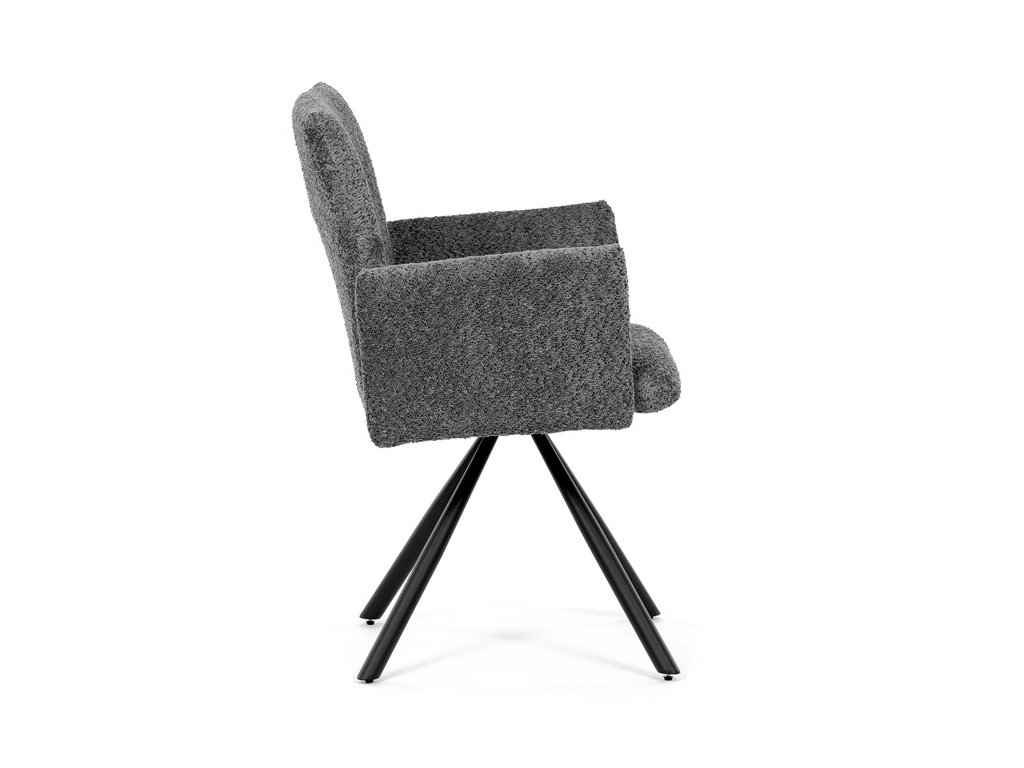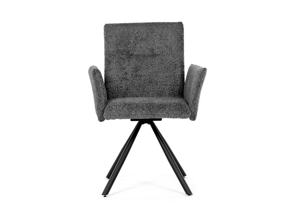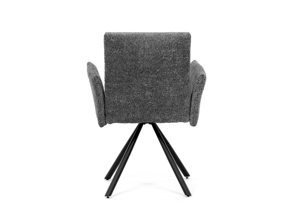 Moderné jedálenské kreslo v industriálnom štýle, ktoré kombinuje pohodlie s funkčnosťou. Otočná stolička s robustnou kovovou podnožou je vybavená pohodlnými podrúčkami, čalúnená trendovou látkou Bouclé, ktorá zaisťuje príjemný a štýlový vzhľad. Polstrovanie z PU peny ponúka mäkké sedenie, zatiaľ čo otočný mechanizmus s funkciou automatického vrátenia sedáku do základnej polohy umožňuje ľahké otáčanie spolu s istotou, že kreslá budú vždy prvotriedne zoradene. Čierna kovová centrálna podnož dodáva stoličke stabilitu a elegantný vzhľad. Kreslo je ideálne pre moderné kuchyne a jedálne, kde sa kombinuje komfort s požiadavkou skvelého výzoru.Dodatočné parametre