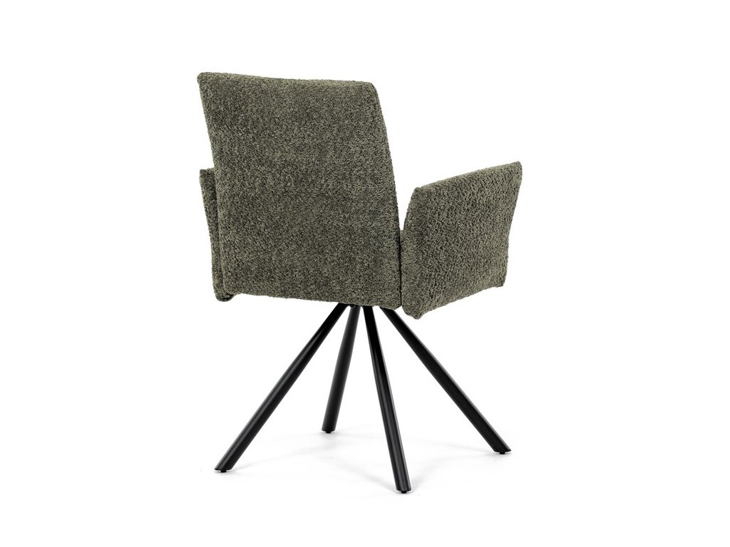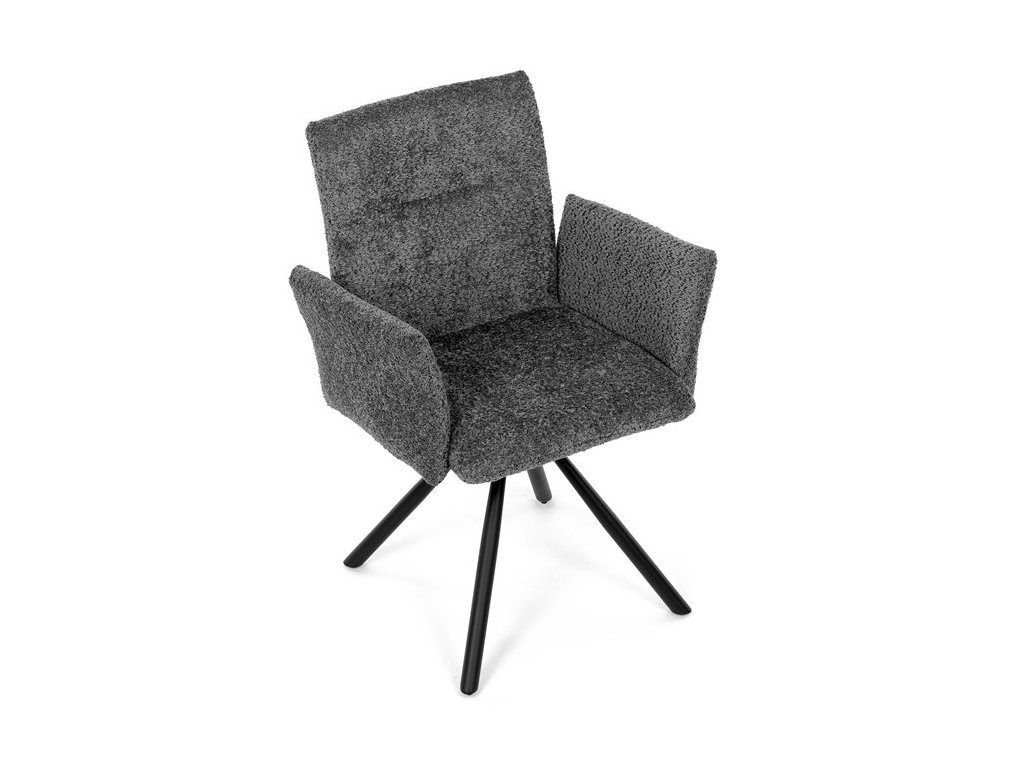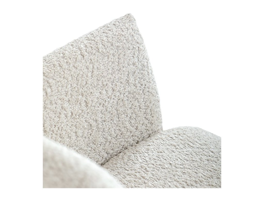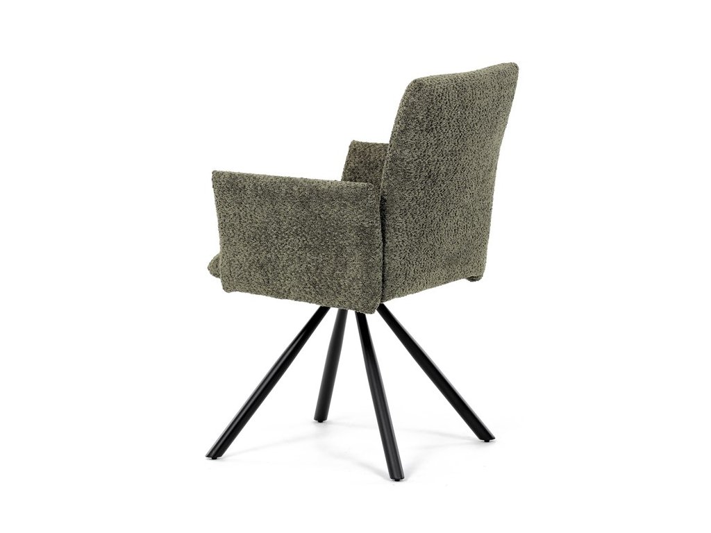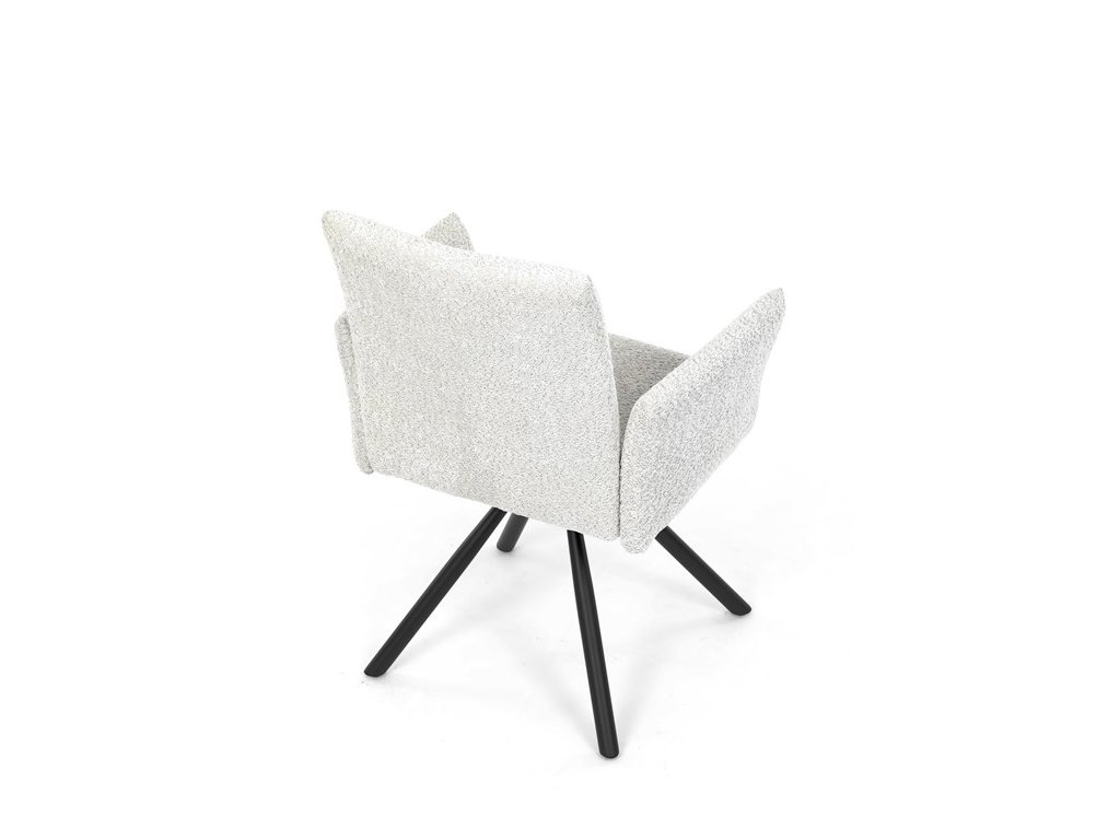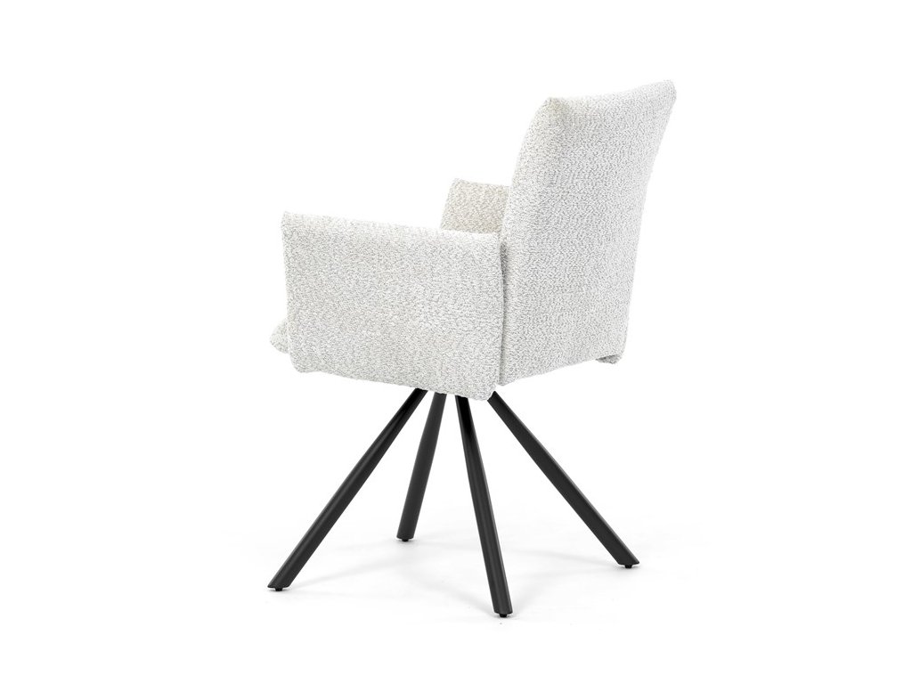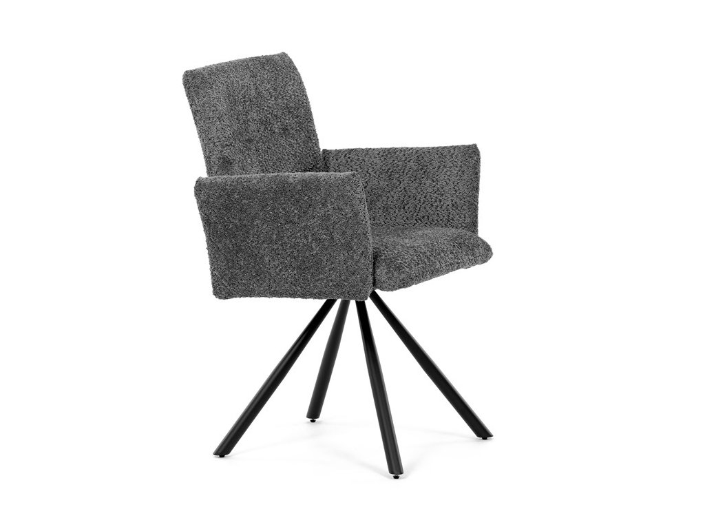 Moderné jedálenské kreslo v industriálnom štýle, ktoré kombinuje pohodlie s funkčnosťou. Otočná stolička s robustnou kovovou podnožou je vybavená pohodlnými podrúčkami, čalúnená trendovou látkou Bouclé, ktorá zaisťuje príjemný a štýlový vzhľad. Polstrovanie z PU peny ponúka mäkké sedenie, zatiaľ čo otočný mechanizmus s funkciou automatického vrátenia sedáku do základnej polohy umožňuje ľahké otáčanie spolu s istotou, že kreslá budú vždy prvotriedne zoradene. Čierna kovová centrálna podnož dodáva stoličke stabilitu a elegantný vzhľad. Kreslo je ideálne pre moderné kuchyne a jedálne, kde sa kombinuje komfort s požiadavkou skvelého výzoru.Dodatočné parametre