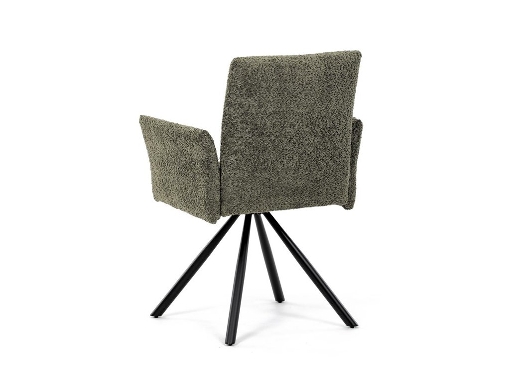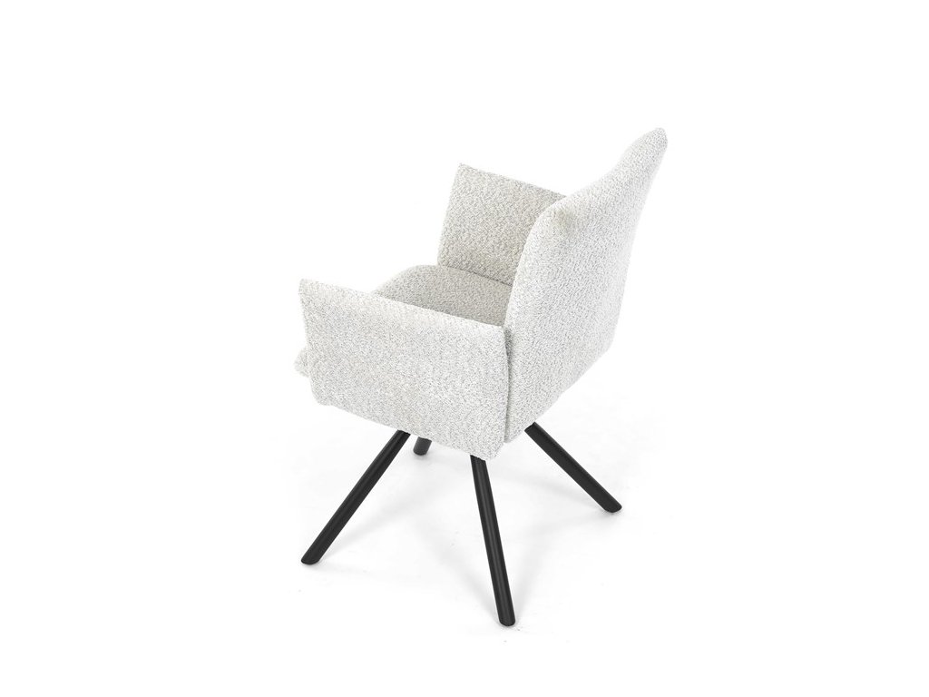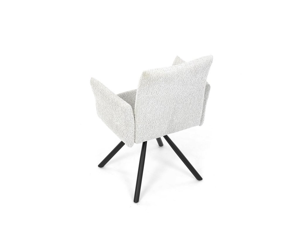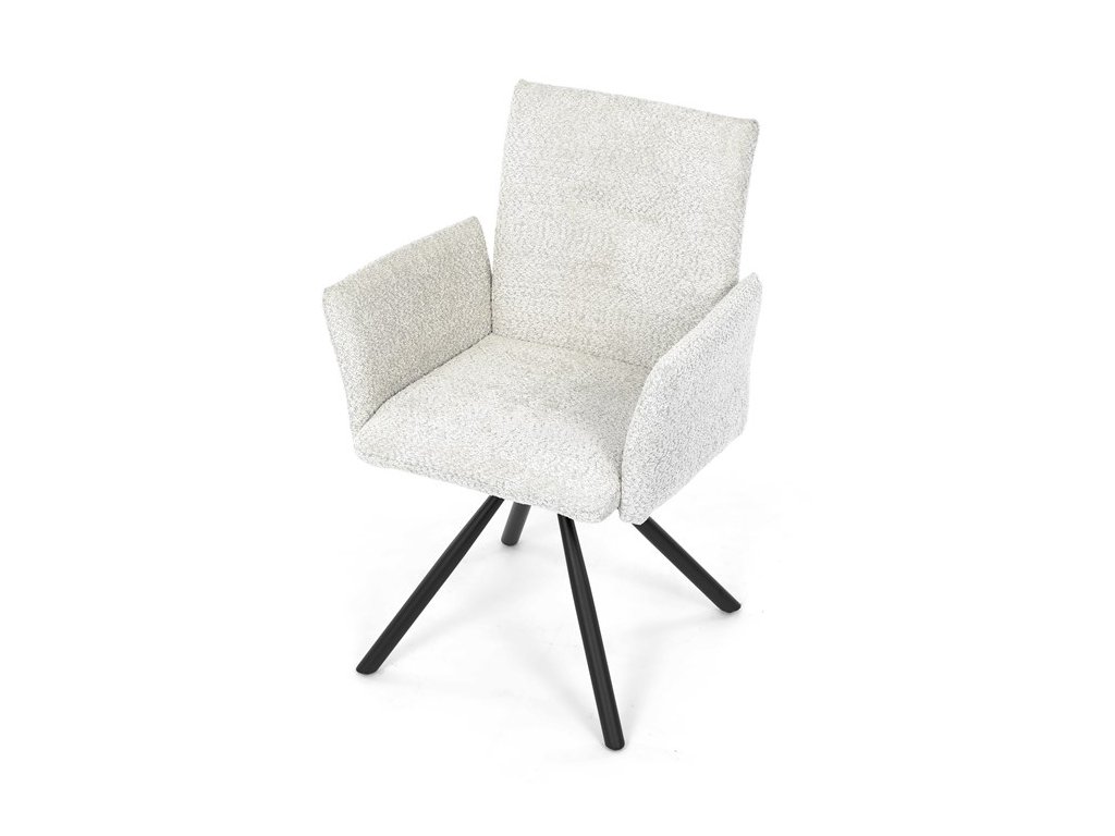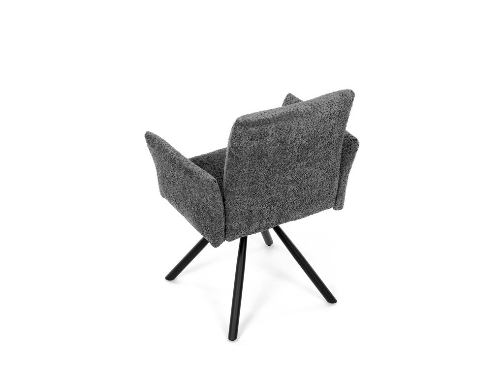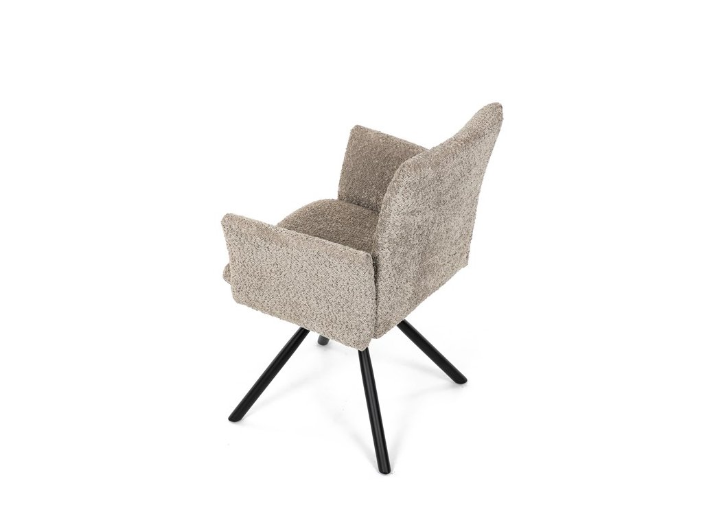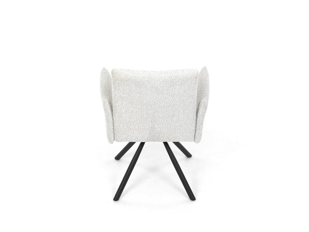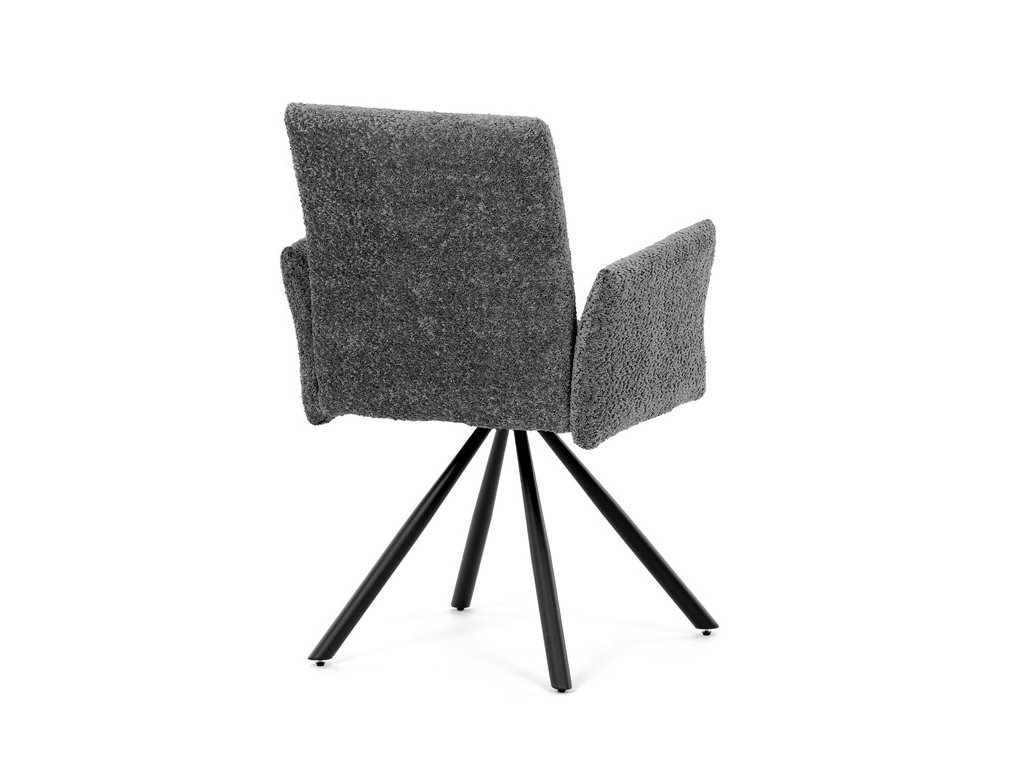 Moderné jedálenské kreslo v industriálnom štýle, ktoré kombinuje pohodlie s funkčnosťou. Otočná stolička s robustnou kovovou podnožou je vybavená pohodlnými podrúčkami, čalúnená trendovou látkou Bouclé, ktorá zaisťuje príjemný a štýlový vzhľad. Polstrovanie z PU peny ponúka mäkké sedenie, zatiaľ čo otočný mechanizmus s funkciou automatického vrátenia sedáku do základnej polohy umožňuje ľahké otáčanie spolu s istotou, že kreslá budú vždy prvotriedne zoradene. Čierna kovová centrálna podnož dodáva stoličke stabilitu a elegantný vzhľad. Kreslo je ideálne pre moderné kuchyne a jedálne, kde sa kombinuje komfort s požiadavkou skvelého výzoru.Dodatočné parametre