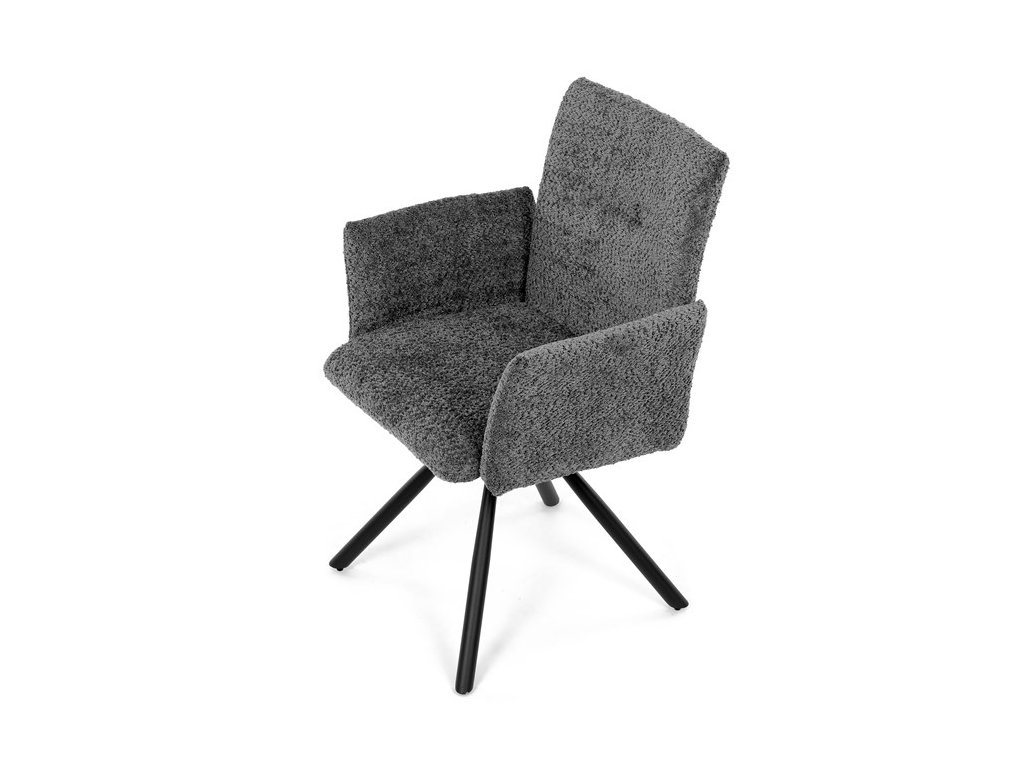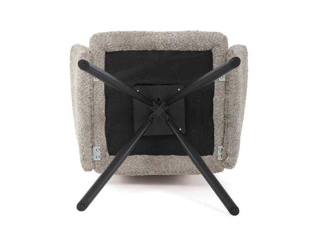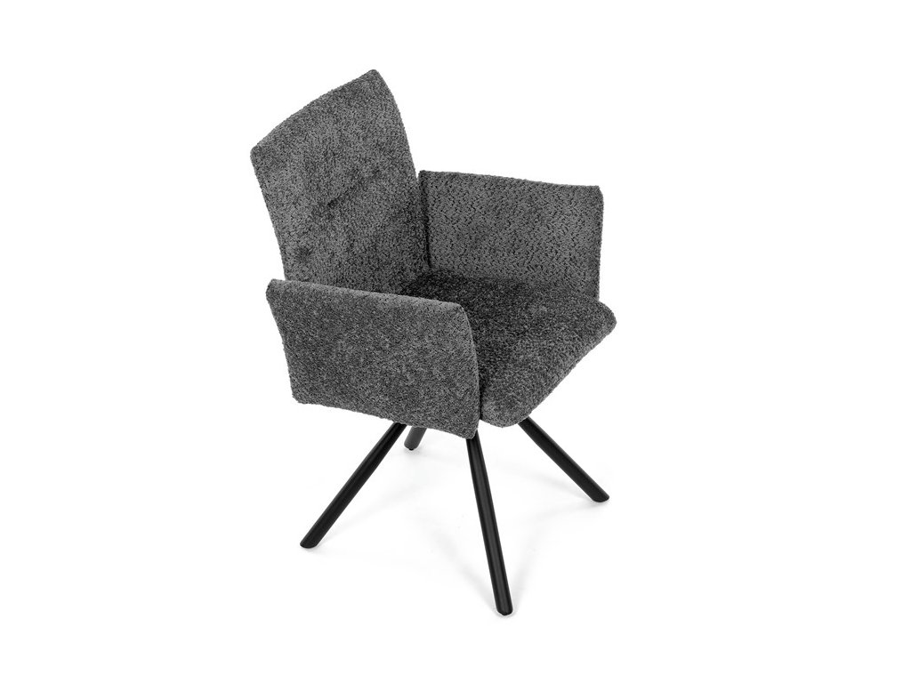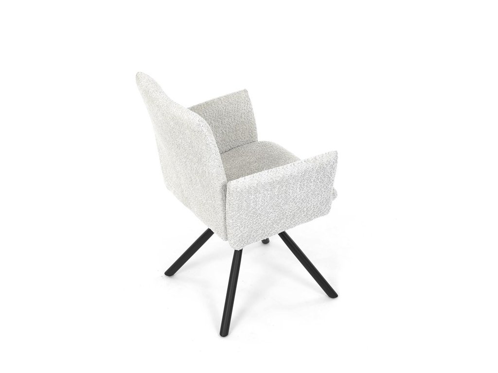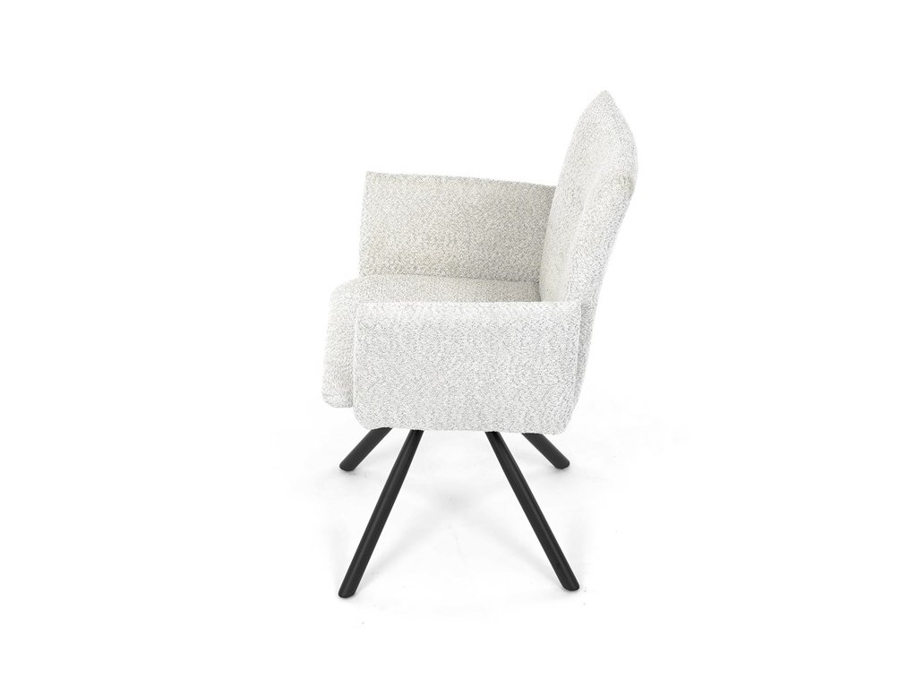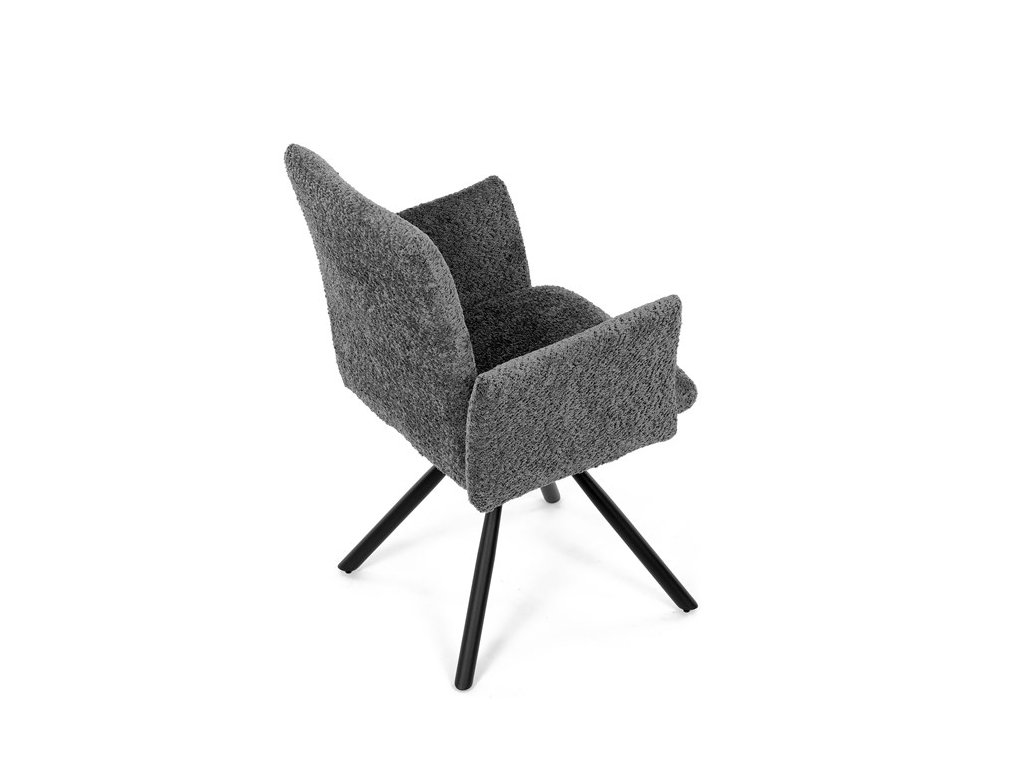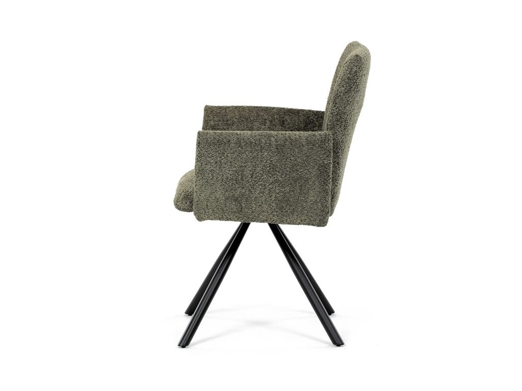 Moderné jedálenské kreslo v industriálnom štýle, ktoré kombinuje pohodlie s funkčnosťou. Otočná stolička s robustnou kovovou podnožou je vybavená pohodlnými podrúčkami, čalúnená trendovou látkou Bouclé, ktorá zaisťuje príjemný a štýlový vzhľad. Polstrovanie z PU peny ponúka mäkké sedenie, zatiaľ čo otočný mechanizmus s funkciou automatického vrátenia sedáku do základnej polohy umožňuje ľahké otáčanie spolu s istotou, že kreslá budú vždy prvotriedne zoradene. Čierna kovová centrálna podnož dodáva stoličke stabilitu a elegantný vzhľad. Kreslo je ideálne pre moderné kuchyne a jedálne, kde sa kombinuje komfort s požiadavkou skvelého výzoru.Dodatočné parametre
