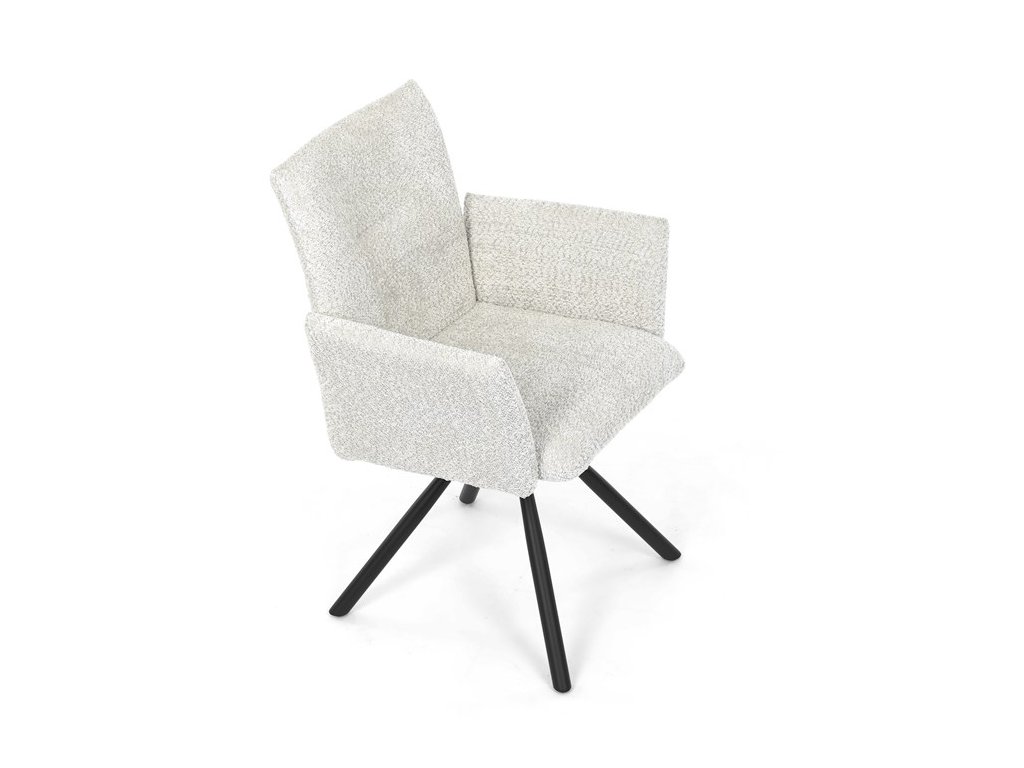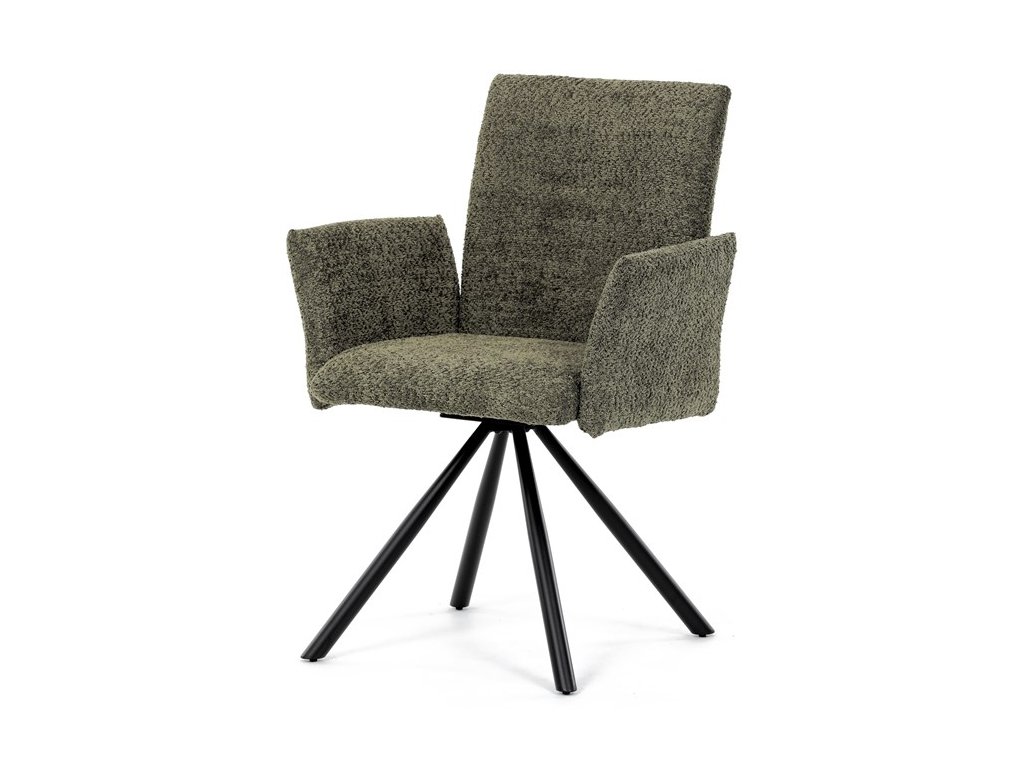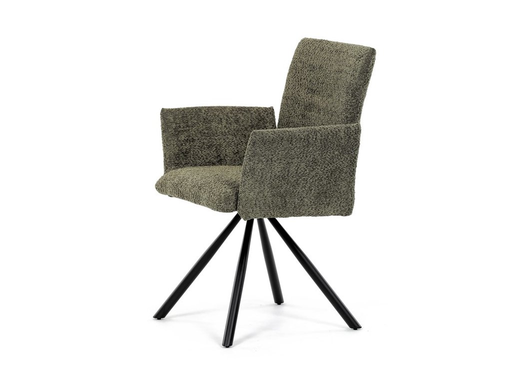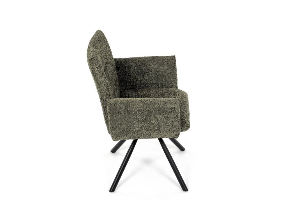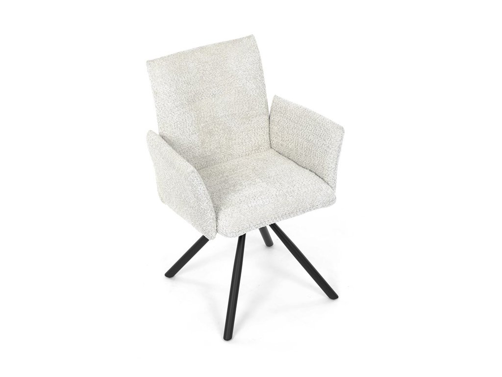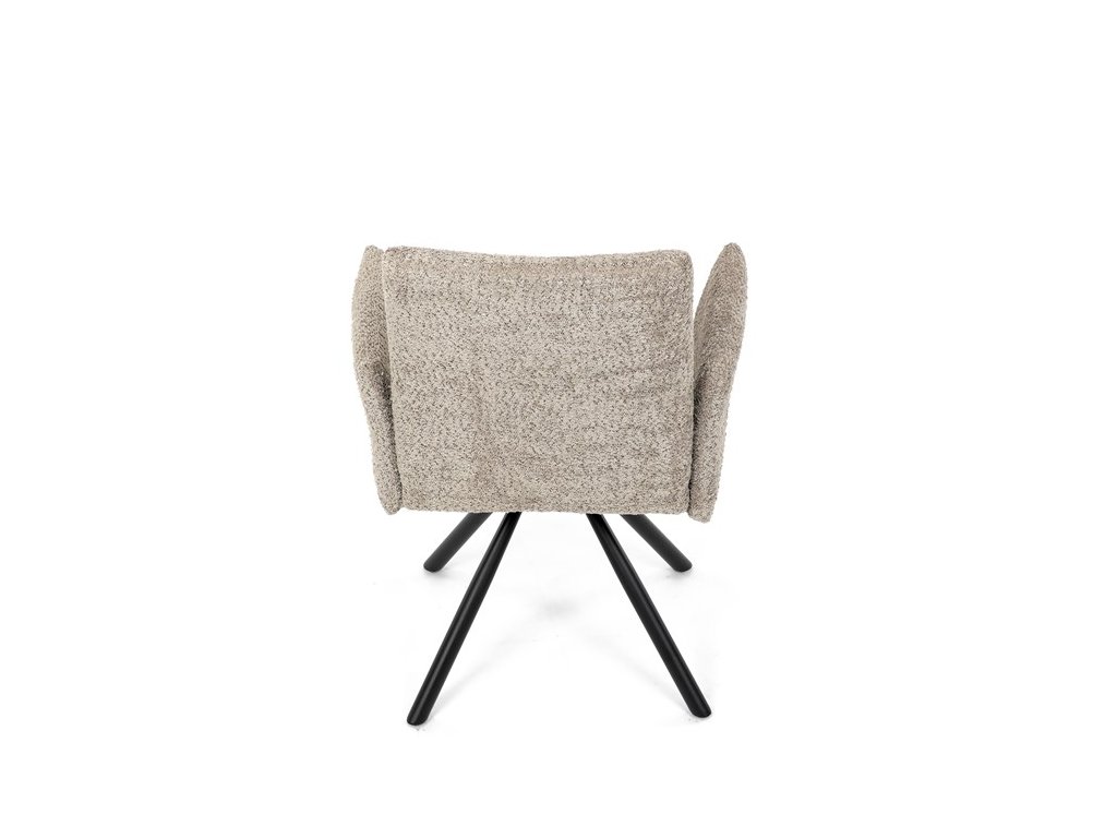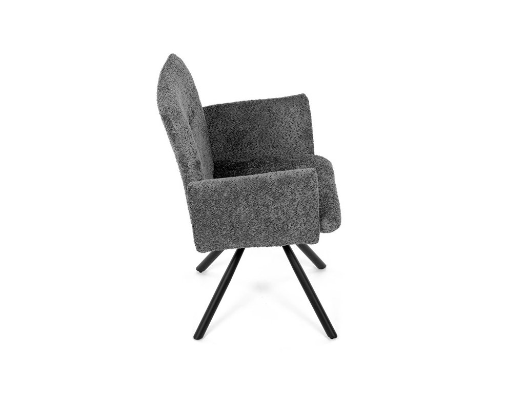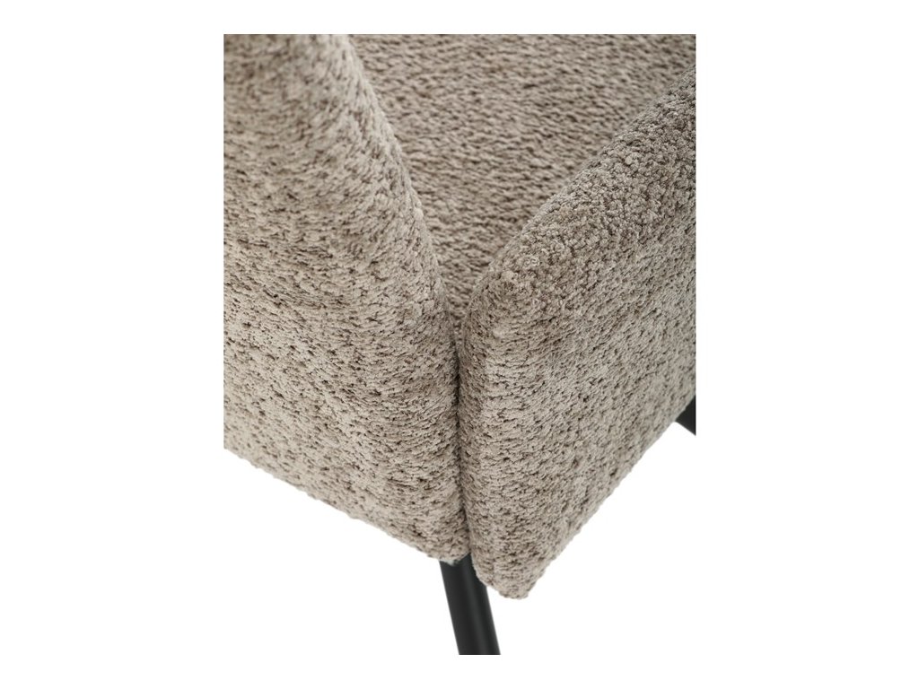 Moderné jedálenské kreslo v industriálnom štýle, ktoré kombinuje pohodlie s funkčnosťou. Otočná stolička s robustnou kovovou podnožou je vybavená pohodlnými podrúčkami, čalúnená trendovou látkou Bouclé, ktorá zaisťuje príjemný a štýlový vzhľad. Polstrovanie z PU peny ponúka mäkké sedenie, zatiaľ čo otočný mechanizmus s funkciou automatického vrátenia sedáku do základnej polohy umožňuje ľahké otáčanie spolu s istotou, že kreslá budú vždy prvotriedne zoradene. Čierna kovová centrálna podnož dodáva stoličke stabilitu a elegantný vzhľad. Kreslo je ideálne pre moderné kuchyne a jedálne, kde sa kombinuje komfort s požiadavkou skvelého výzoru.Dodatočné parametre