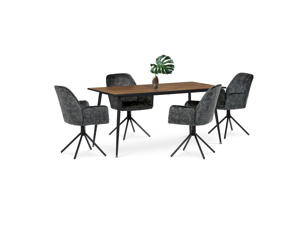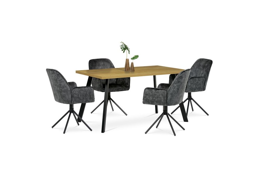 Stretnite sa pri stole so štýlovými kreslami. Stoličky čalúnené matnou zamatovou látkou ponúkajú jedinečné pohodlie a dizajn. Stoličky sa honosia industriálnym dizajnom a sú vyvedené v univerzálnom čiernom odtieni, ktorý vkusne doplní interiér. Každá stolička je vytvorená z robustného kovu, ktorý dokazuje jej odolnosť. Centrálna základňa stoličky k jej užívateľom prihovára prostredníctvom elegantného tvaru a odvážnej čiernej farby nôh. Konštrukčný materiál spája formy a funkcie a elegantne začlení stoličku do všetkých prostredí. Kreslo sa pýši tým, že vytvára nábytok zvýrazňujúci modernú estetiku bez ohľadu na praktickosť. Jedálenská stolička sa vďaka svojim rozmerom bez problémov prispôsobí každému stolu od jednania v zasadacej miestnosti až po rodinné stolovanie. Sadnite si na luxusný podsedák industriálnej stoličky, zatiaľ čo si vychutnávate lahodné jedlo alebo jednáte na obchodnej schôdzke.Dodatočné parametre