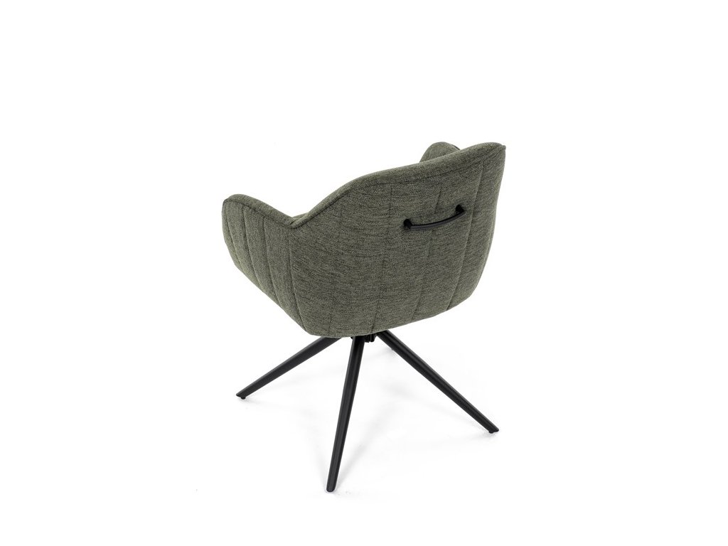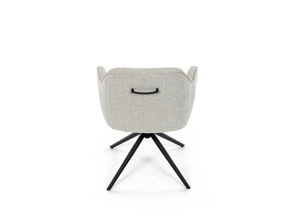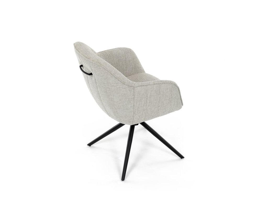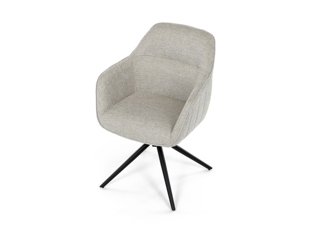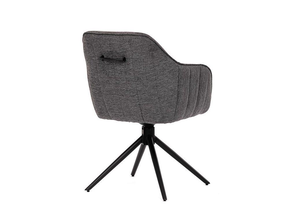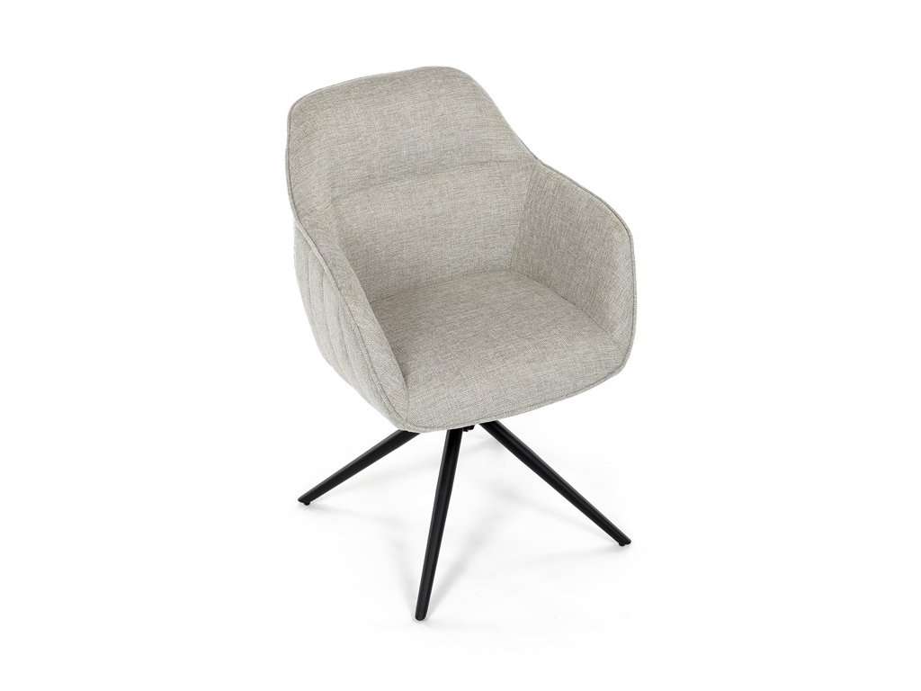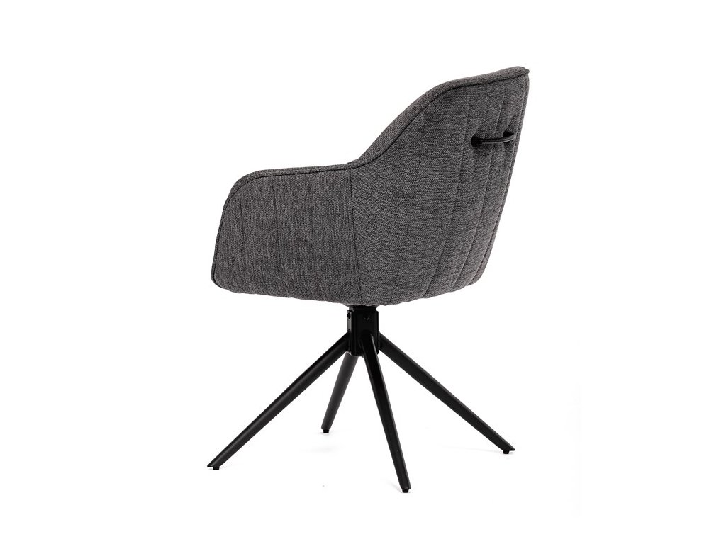 Moderná jedálenská stolička s efektným prešitím a otočným sedadlomElegantná jedálenská stolička, ktorá spája moderný dizajn s praktickými funkciami. Operadlo aj predná časť sú zdobené efektným prešitím v odtieni poťahového materiálu, čo dodáva stoličke sofistikovaný vzhľad. Zadná strana operadla je doplnená vkusným madlom, vďaka ktorému je manipulácia jednoduchá a pohodlná.