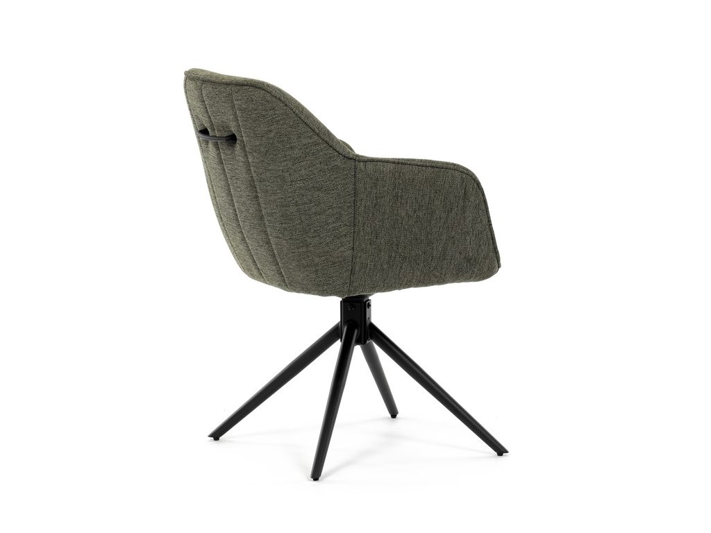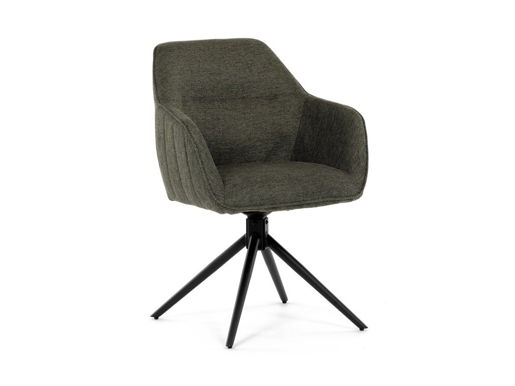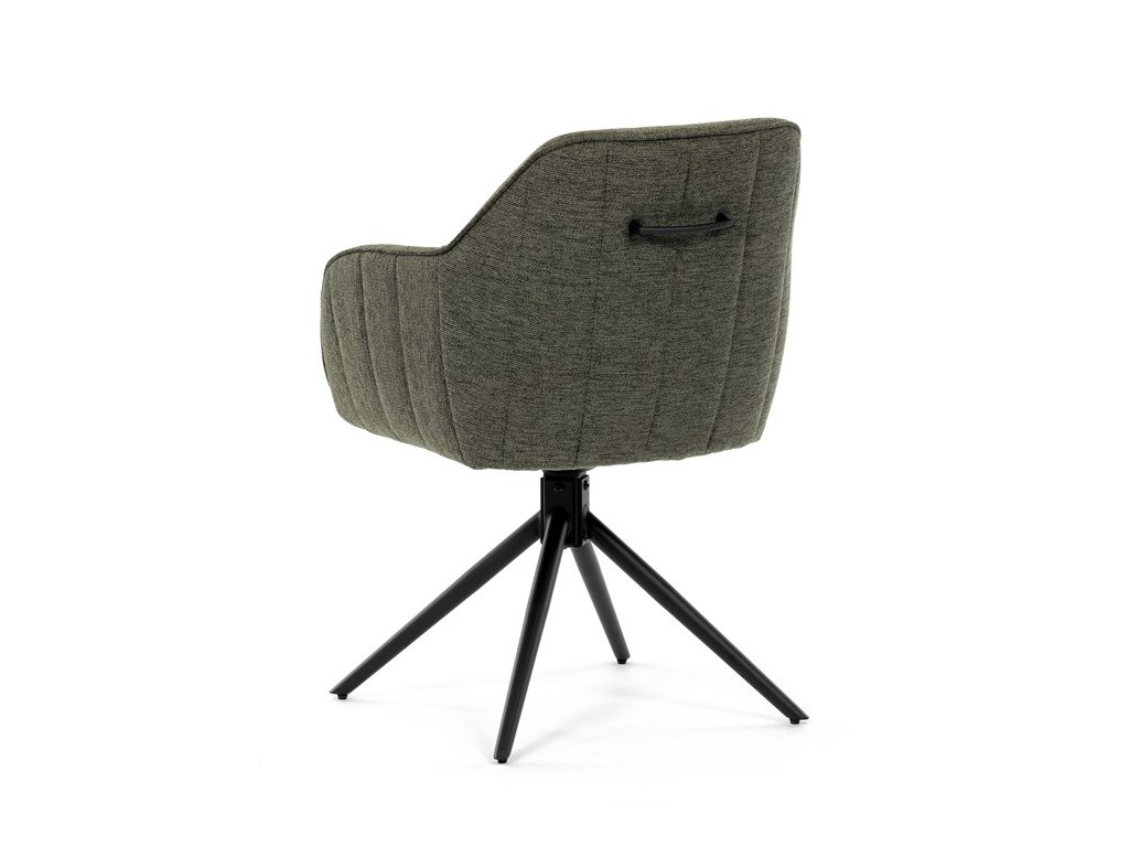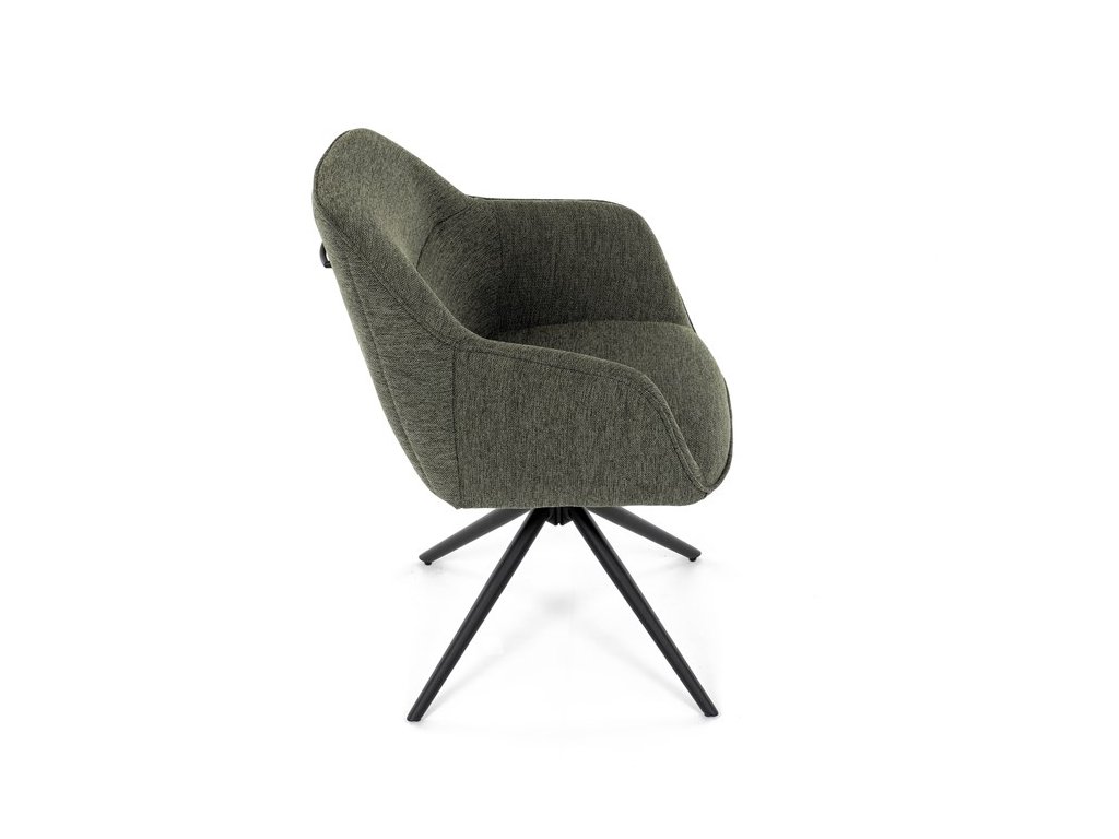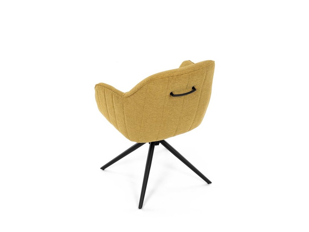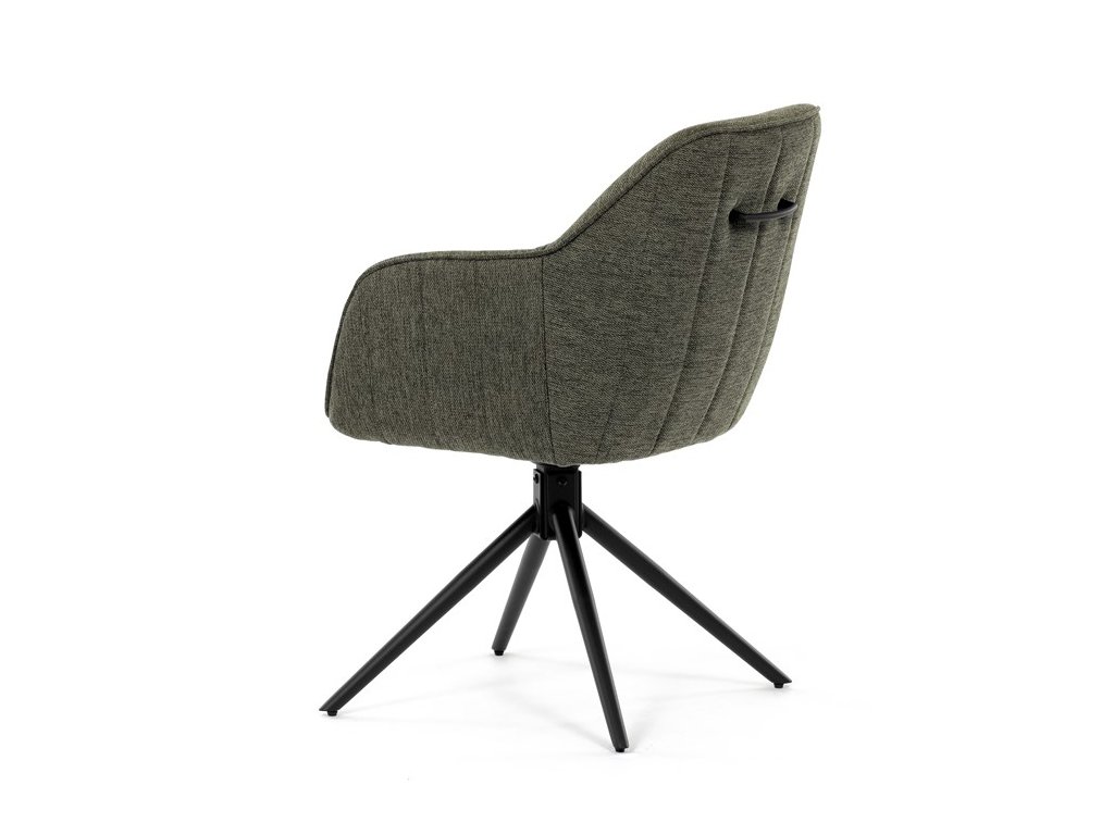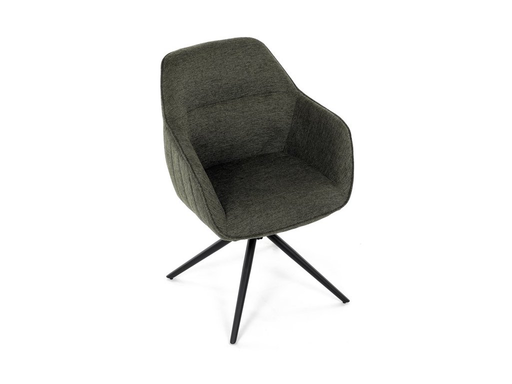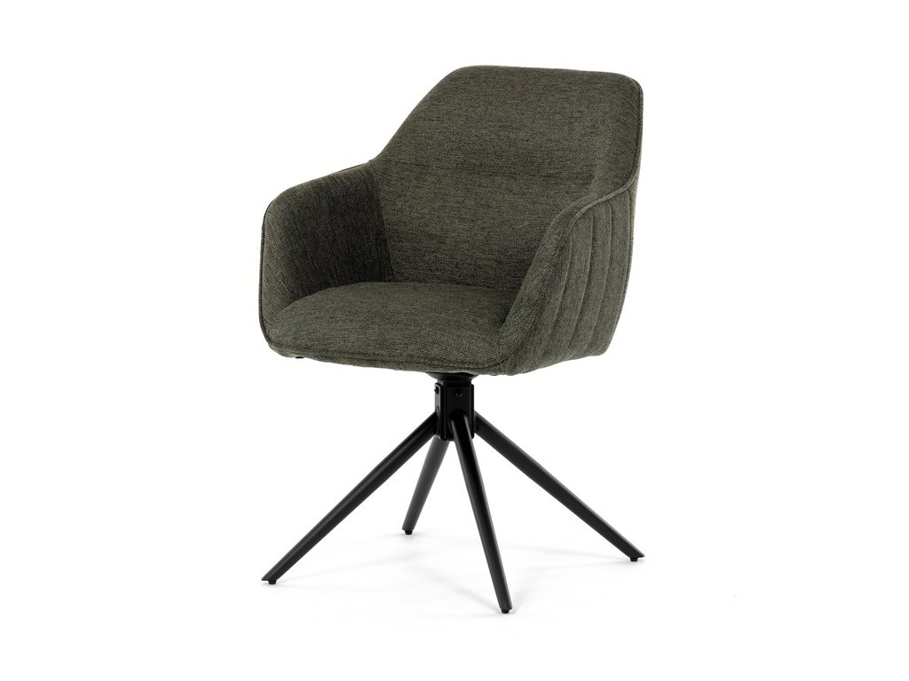 Moderná jedálenská stolička s efektným prešitím a otočným sedadlomElegantná jedálenská stolička, ktorá spája moderný dizajn s praktickými funkciami. Operadlo aj predná časť sú zdobené efektným prešitím v odtieni poťahového materiálu, čo dodáva stoličke sofistikovaný vzhľad. Zadná strana operadla je doplnená vkusným madlom, vďaka ktorému je manipulácia jednoduchá a pohodlná.