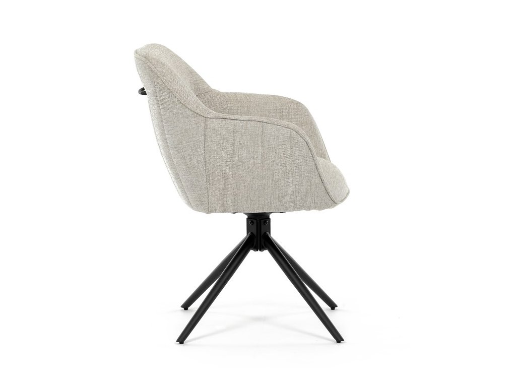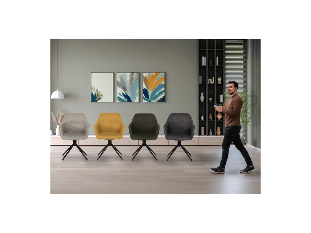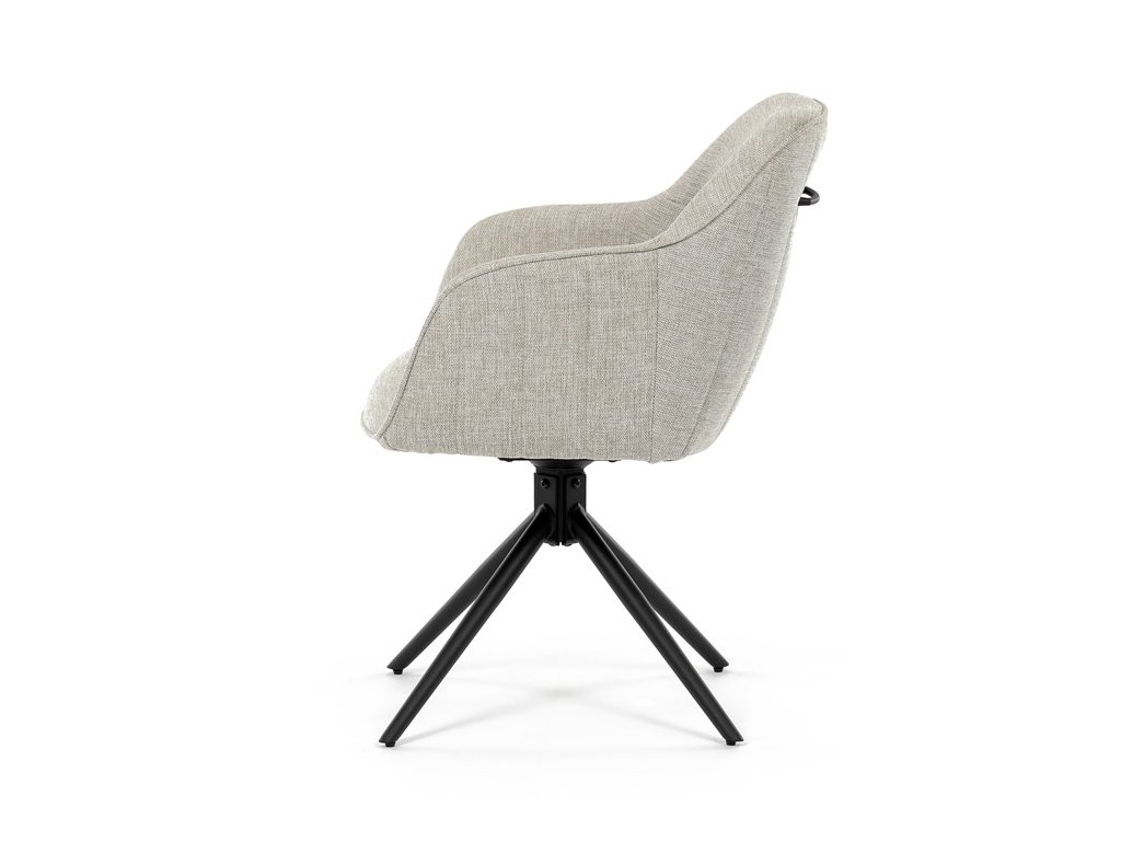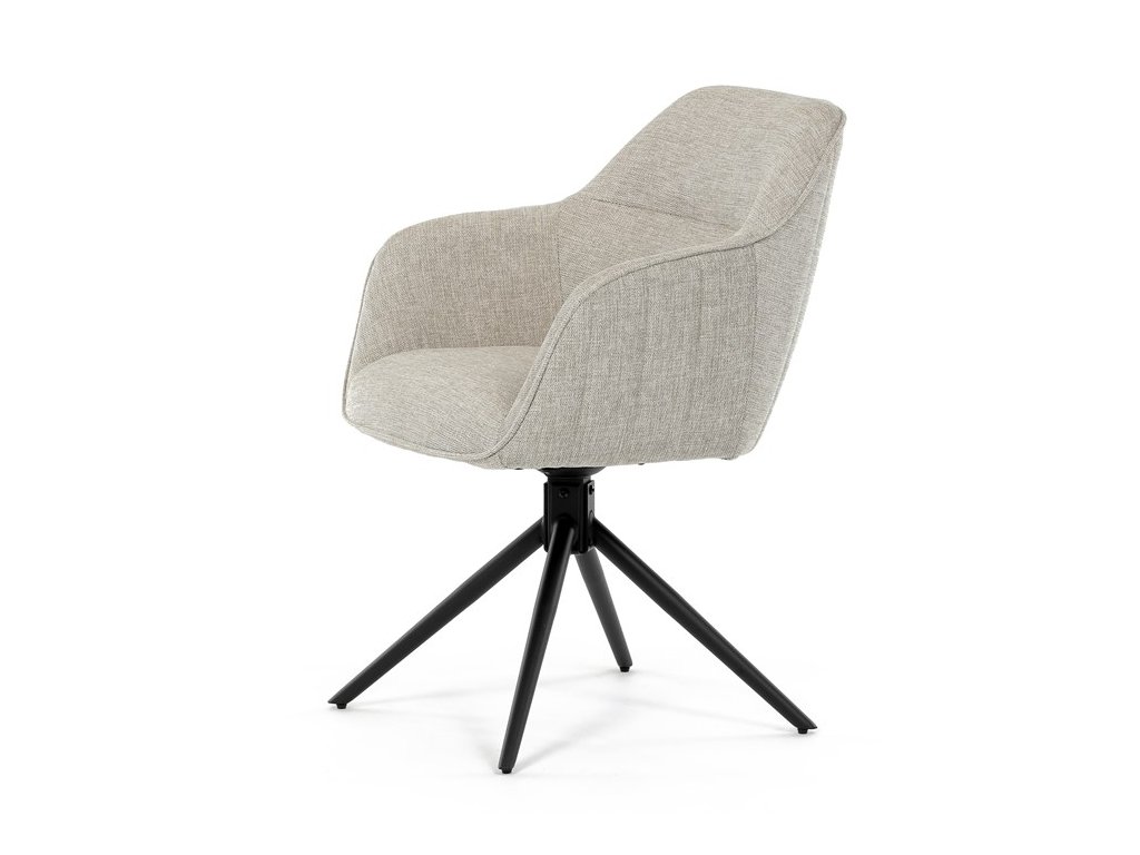 Štyri kovové nohy v matnom práškovom nástreku vychádzajú z centrálneho bodu pod sedadlom, čím zabezpečujú výnimočnú stabilitu. Sedák je otočný o P90° a L90° s vratným mechanizmom, ktorý sa vždy vráti do pôvodnej polohy. Tento detail oceníte pri každodennom používaní aj pri spoločenských stretnutiach.