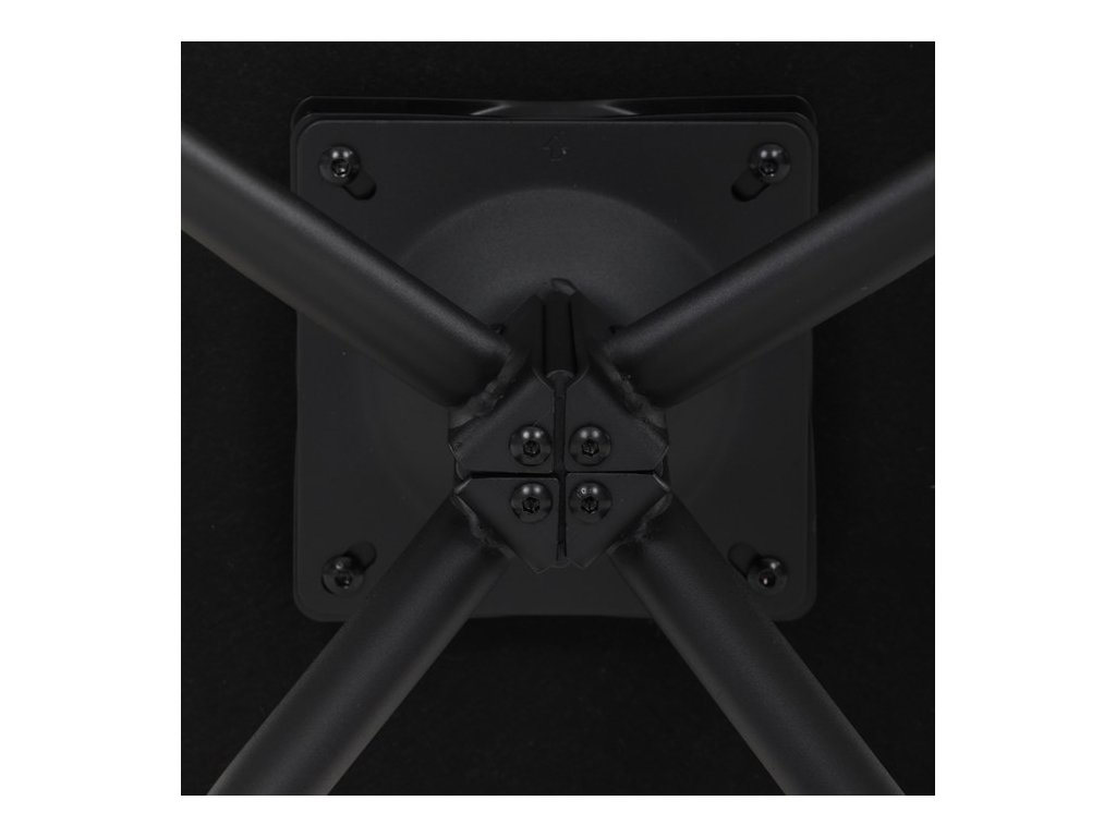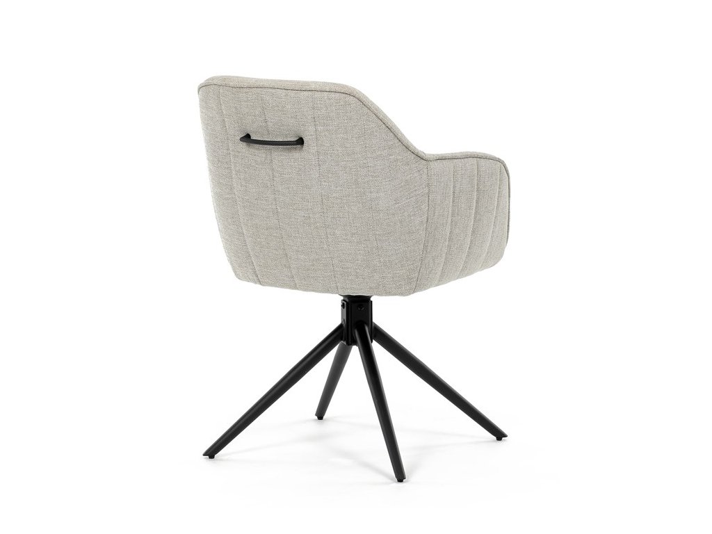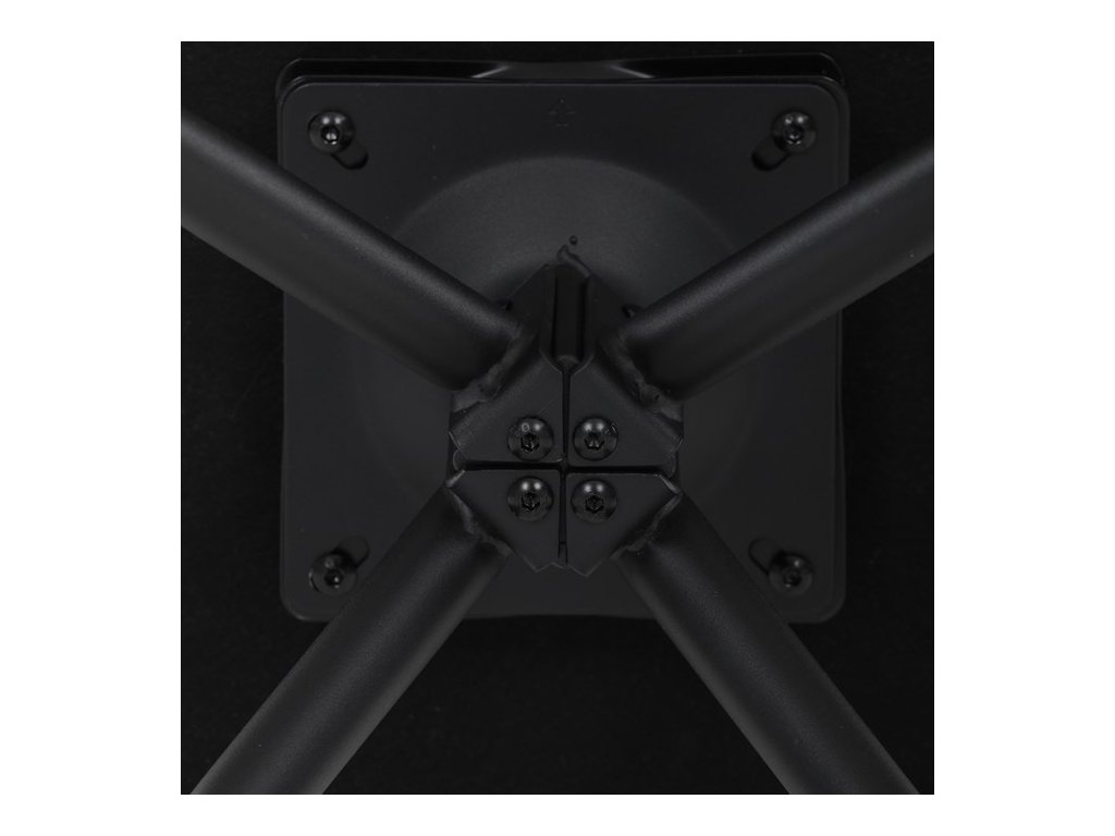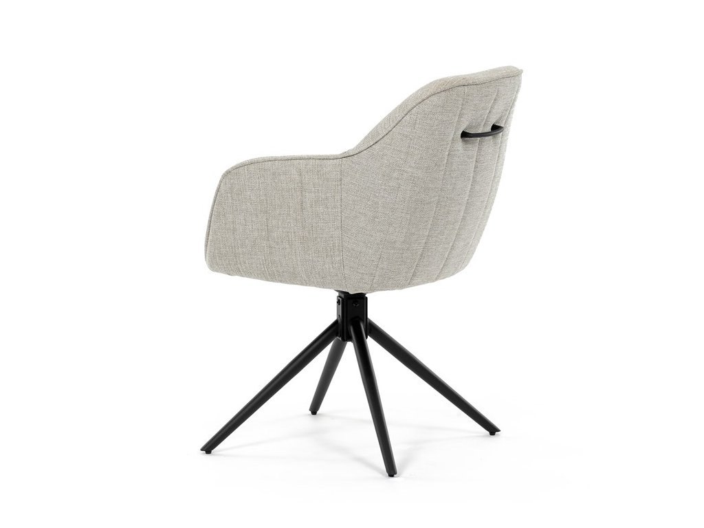 Štyri kovové nohy v matnom práškovom nástreku vychádzajú z centrálneho bodu pod sedadlom, čím zabezpečujú výnimočnú stabilitu. Sedák je otočný o P90° a L90° s vratným mechanizmom, ktorý sa vždy vráti do pôvodnej polohy. Tento detail oceníte pri každodennom používaní aj pri spoločenských stretnutiach.