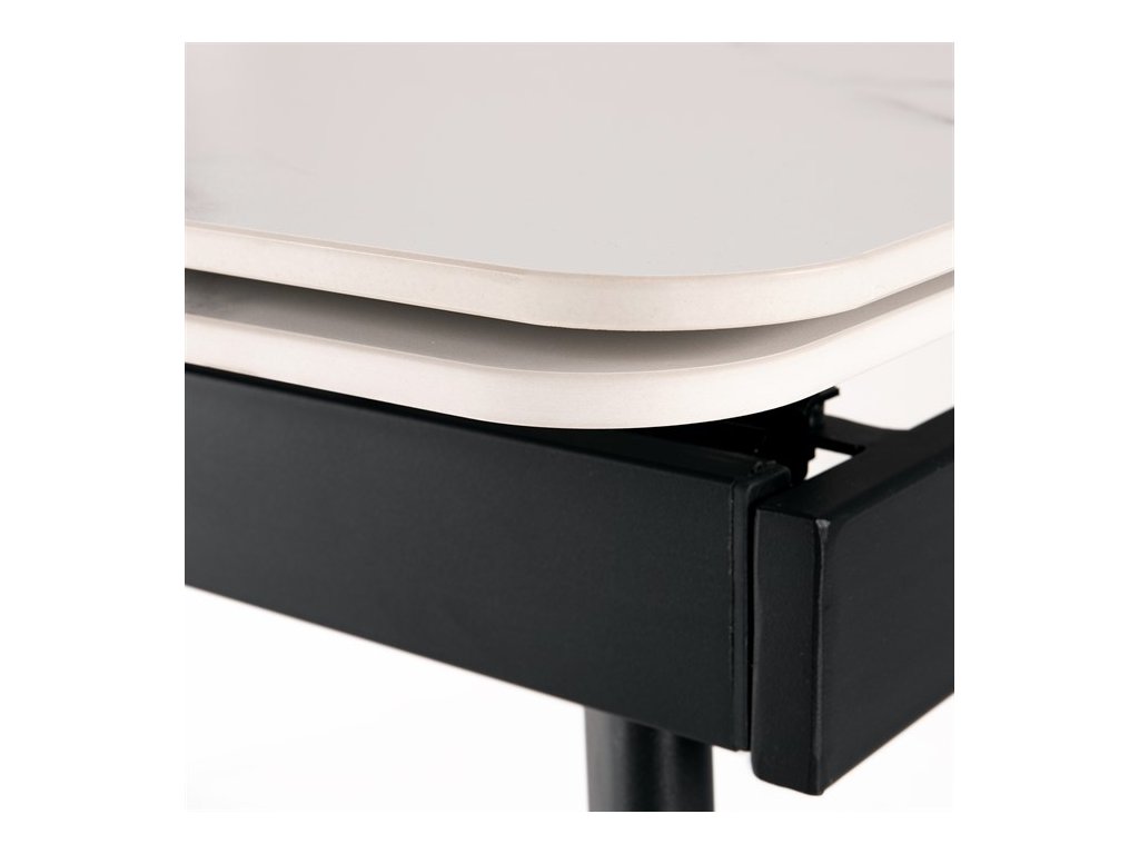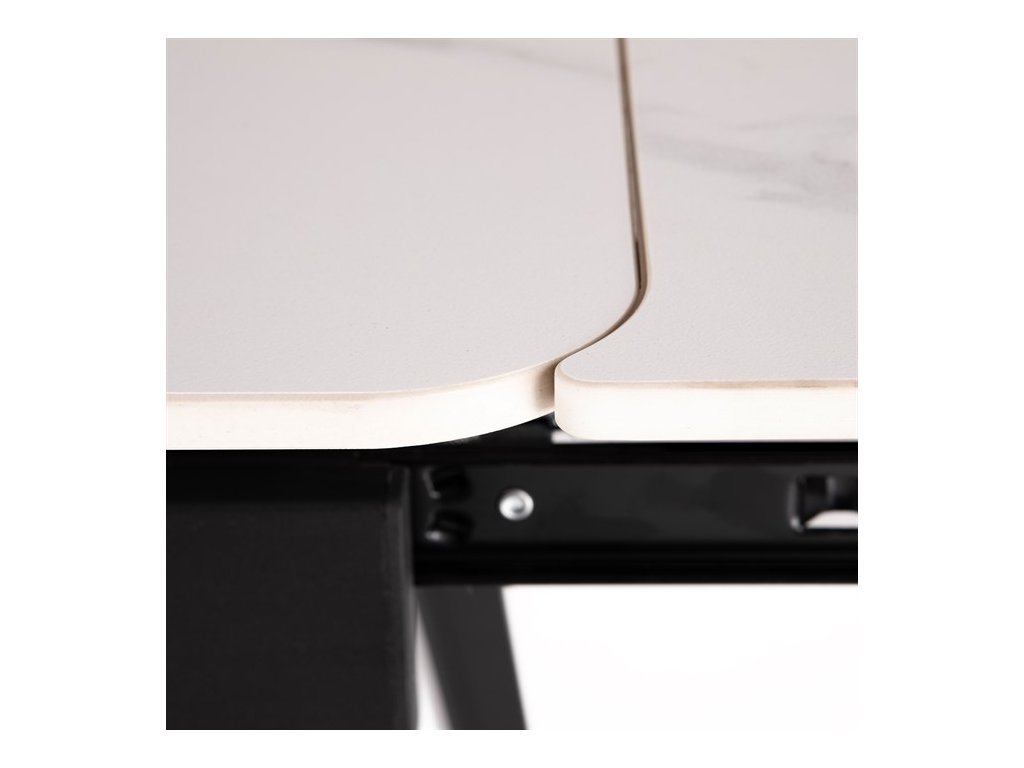 Dizajnový jedálenský rozkladací stôl v industriálnom minimalistickom štýle. Vrchná stolová doska je tvrdenej keramiky hr. 12 mm v matnom dekore "Bulharský sivý mramor". Konštrukcia stola aj nohy sú celokovové s nástrekom práškového vypaľovacieho laku v matnom čiernom odtieni. Plastové klzáky na nohách eliminujú možnosť poškodenia povrchov tvrdých podláh. Rozkladanie je výsuvné, diely o šírke 30 cm sa vysúvajú z oboch kratších strán, mechanika je celokovová a je vybavená pružinami a plynovými piestami. Stôl zaujme ako svojím minimalistickým dizajnom a skvelým spracovaním detailu, ale aj prevedením dosky so zaguľatenými rohmi a v neposlednom rade aj dekorom vrchnej dosky, imitujúcej jeden z najkvalitnejších a najžiadanejších mramorov na svete. Iste sa stane sa veľmi elegantným a neprehliadnuteľným prvkom v moderných – industriálnych, ale aj klasicky ladených jedálňach, kuchyniach a obývacích priestoroch. K stolu je možné umiestniť až 8 stoličiek. Bulharský sivý mramor je jedným z najobľúbenejších mramorov z Iránu. Má veľmi unikátnu a kontrastnú kresbu zloženú z čiernych a bielych vlákien na sivom základe.Dodatočné parametre