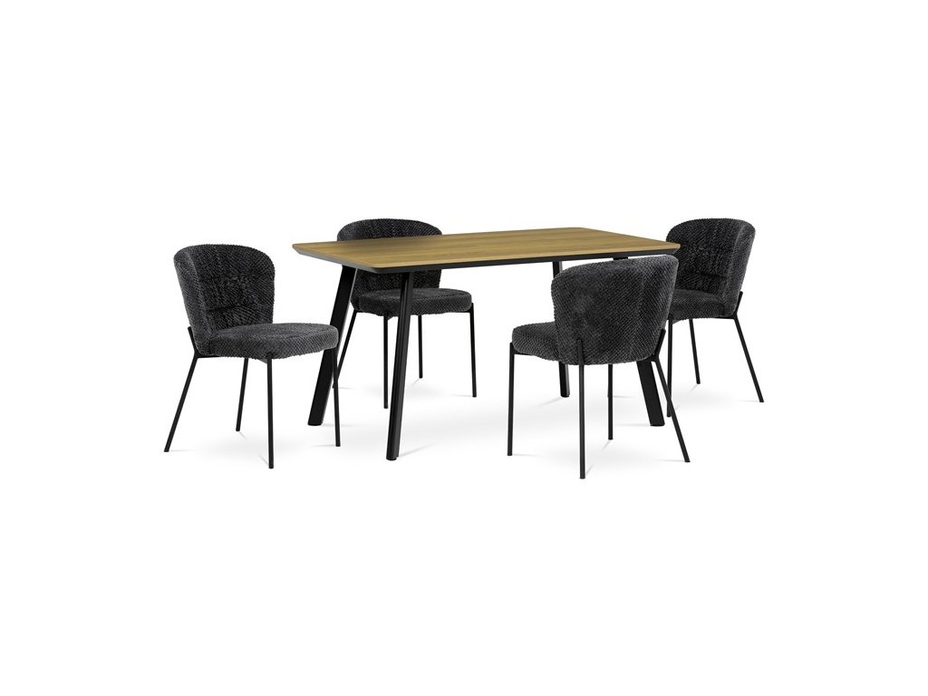 Moderný jedálenský stôl značky, ktorý prináša jednoduchý a nadčasový design do každého interiéru. MDF doska v dekore DUB v matnom prevedení vytvára elegantný kontrast s čiernymi kovovými nohami. Stôl je pevný, odolný a poskytuje dostatok priestoru na pohodlné stolovanie až pre šesť osôb. Jeho obdĺžnikový tvar a stabilná konštrukcia zaisťujú maximálne pohodlie pri každodennom používaní. Vďaka svojmu industriálnemu štýlu je ideálnou voľbou nielen do moderných kuchýň a jedální, ale aj do kancelárskych priestorov.Dodatočné parametre