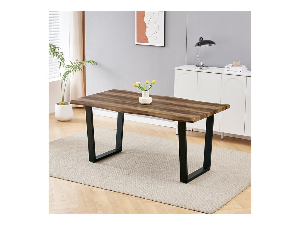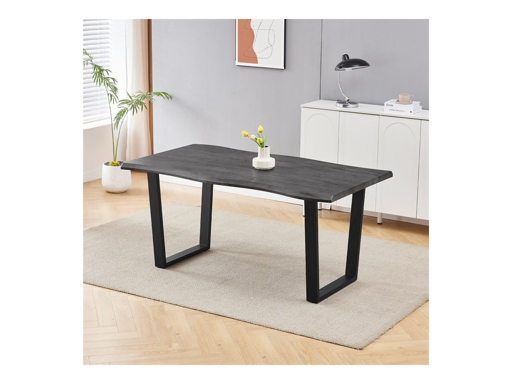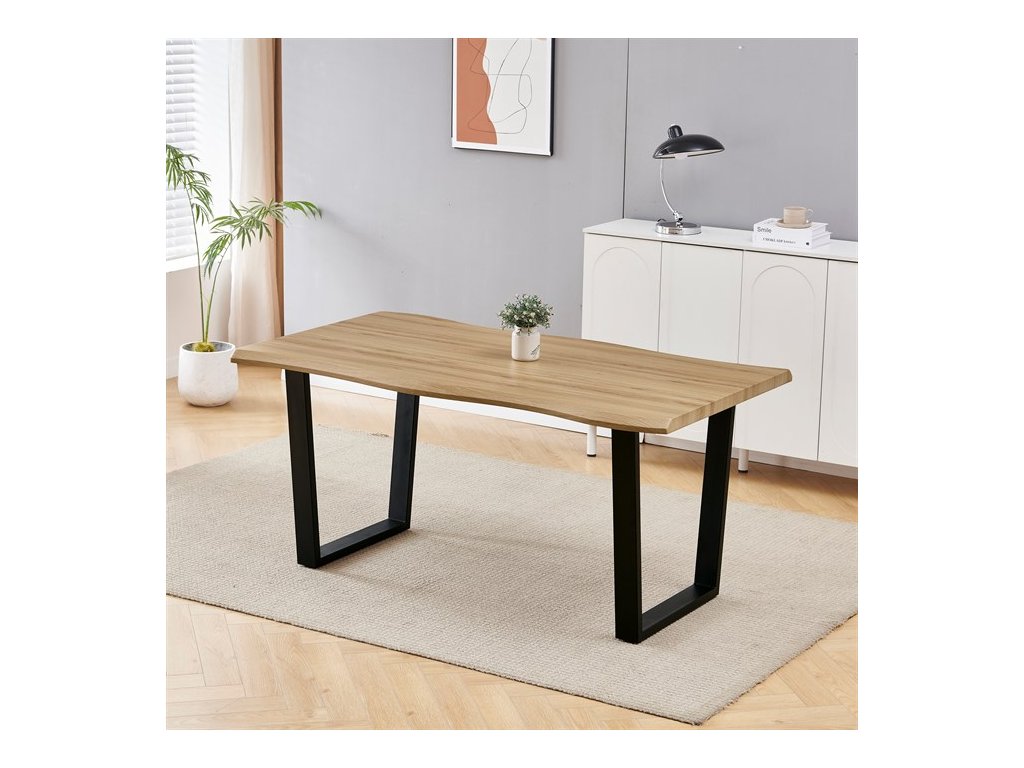 Jedálenský stôl v industriálnom štýle prinesie do vašej jedálne výrazný dizajnový prvok. Doska stola v dekore divokého duba so sivým povrchom ponúka atraktívnu štruktúru a odolnosť vďaka kvalitnej MDF. Pôsobivý vzhľad je podčiarknutý čiernymi kovovými nohami, ktoré poskytujú stabilitu a vytvárajú moderný kontrast k šedému odtieňu dosky. Atypický tvar dosky dodáva stolu originalitu, zatiaľ čo jeho pevná konštrukcia zaisťuje dlhú životnosť. Tento stôl je ideálny pre milovníkov designu, ktorí hľadajú spojenie funkčnosti a štýlu.Dodatočné parametre