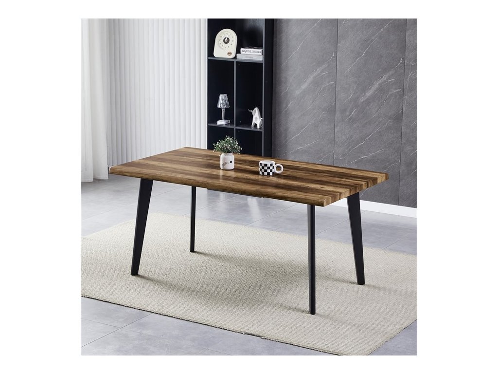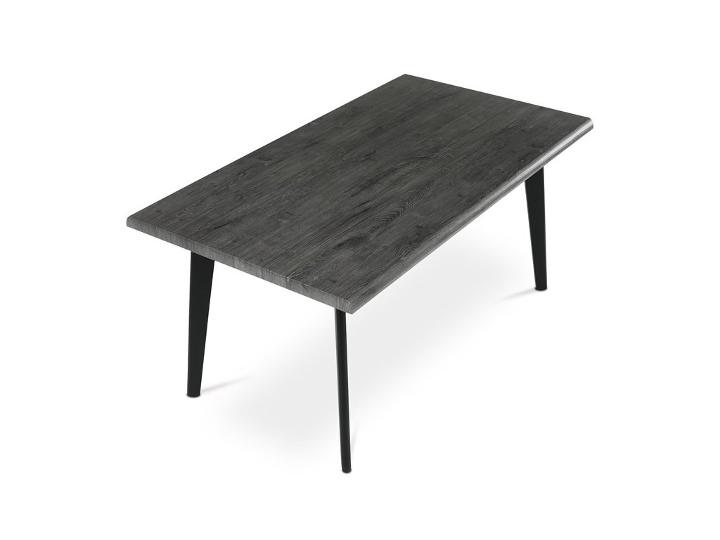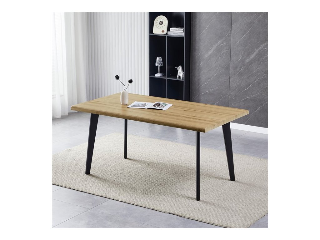 Jedálenský stôl v dekore sivého duba vnáša do interiéru rustikálne kúzlo s moderným nádychom. Obdĺžniková doska z kvalitného MDF materiálu imituje vzhľad opracovaného dreva a pridáva priestoru na autentickosti a teple. Čierne kovové nohy pridávajú industriálny kontrast a zaisťujú pevnosť a stabilitu. Svojím nadčasovým dizajnom a praktickými rozmermi 160x90x75 cm sa tento stôl hodí do rôznych štýlov jedální a kuchýň. Vyberte si tento elegantný a odolný stôl a doprajte si pohodlné rodinné stolovanie.Dodatočné parametre