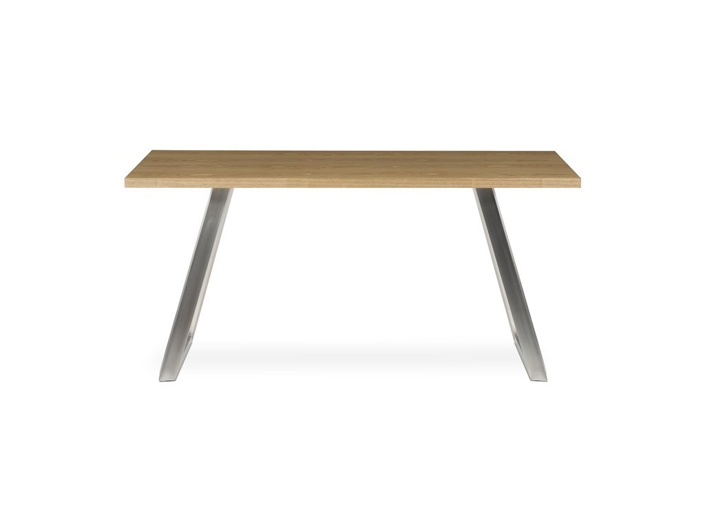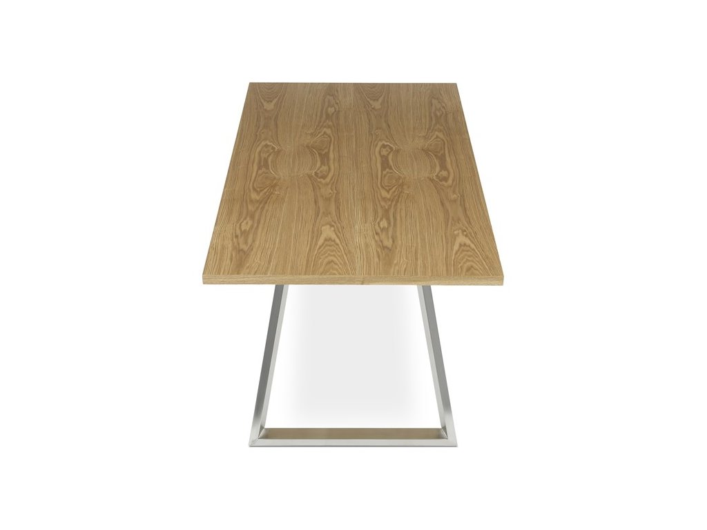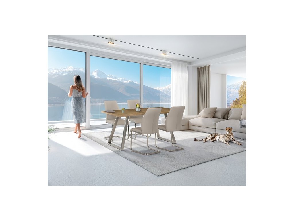 Jedálenský stôl v modernom dizajne, ktorý skvele zapadne do každého interiéru. Jeho doska je vyrobená z kvalitnej dyhy s dekorom duba, čo dodáva stolu elegantný a prírodný vzhľad. Nohy sú vyrobené z brúseného nerezu, čo radí tento stôl medzi kráľa svojho odboru. Stôl je ideálny na každodenné stolovanie v rodinnom kruhu aj na posedenie s priateľmi.Dodatočné parametre