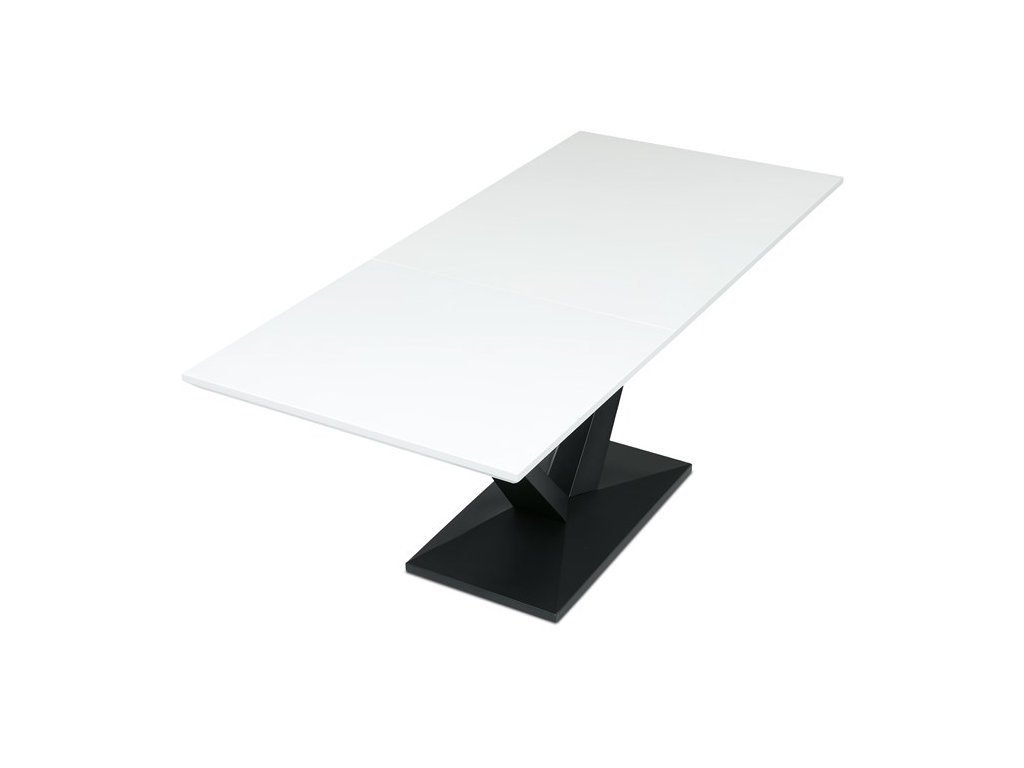 Rozkladací jedálenský stôl, ktorý vyniká svojou robustnou centrálnou nohou v tvare V. Biela matná doska z MDF materiálu ponúka odolný a ľahko udržiavateľný povrch, ideálny pre každodenné stolovanie. Vďaka rozkladaciemu mechanizmu ľahko prispôsobíte veľkosť stola aktuálnym potrebám, čo je skvelé pre rodinné stretnutia. Tento stôl bude štýlovým a funkčným doplnkom každej jedálne, ktorý zaujme na prvý pohľad.Dodatočné parametre