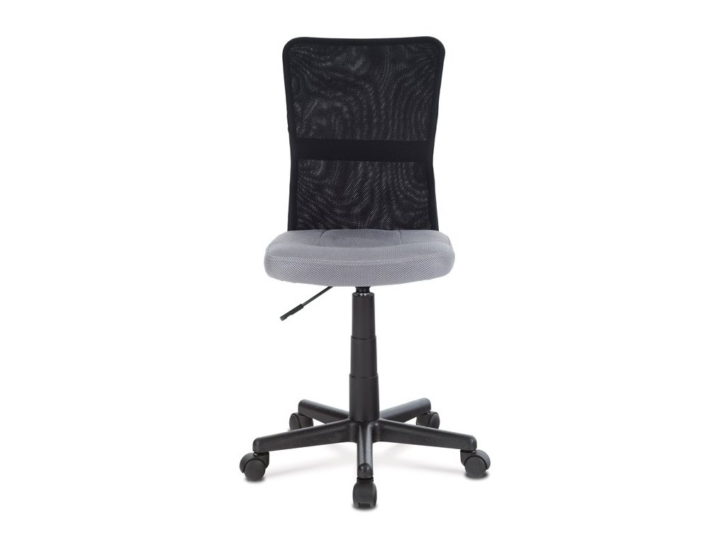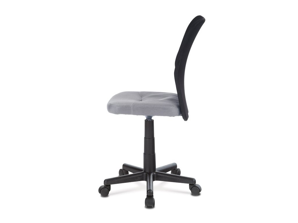 Detská kancelárska stolička čalúnená vzdušnou látkou MESH v univerzálnej sivej farbe, operadlo z čiernej trvácej sieťoviny. Vďaka plynovému piestu je stolička výškovo nastaviteľná, otočná funkcia je samozrejmosťou. Stolička má pevný a stabilný kríž z tvrdeného plastu s plastovými kolieskami.