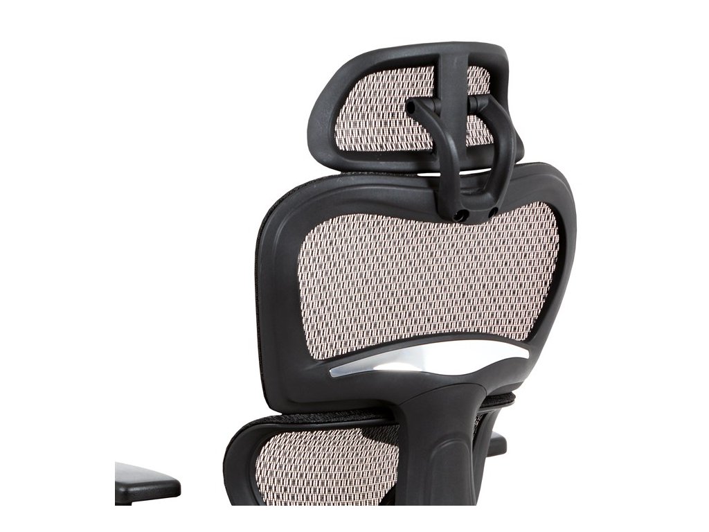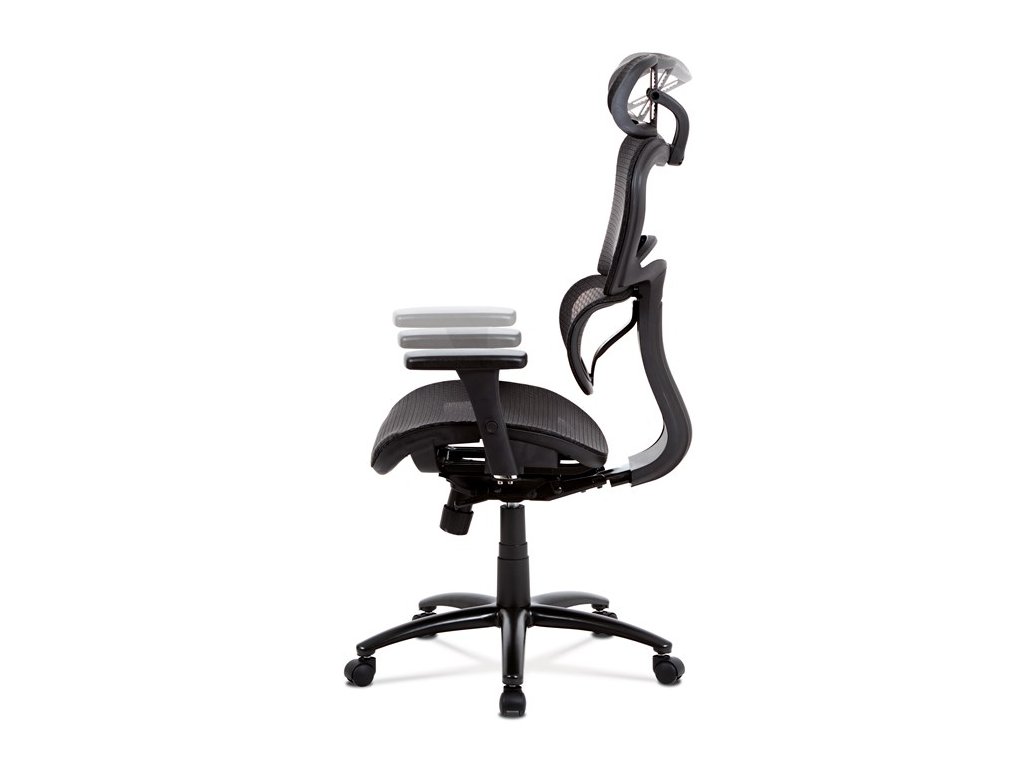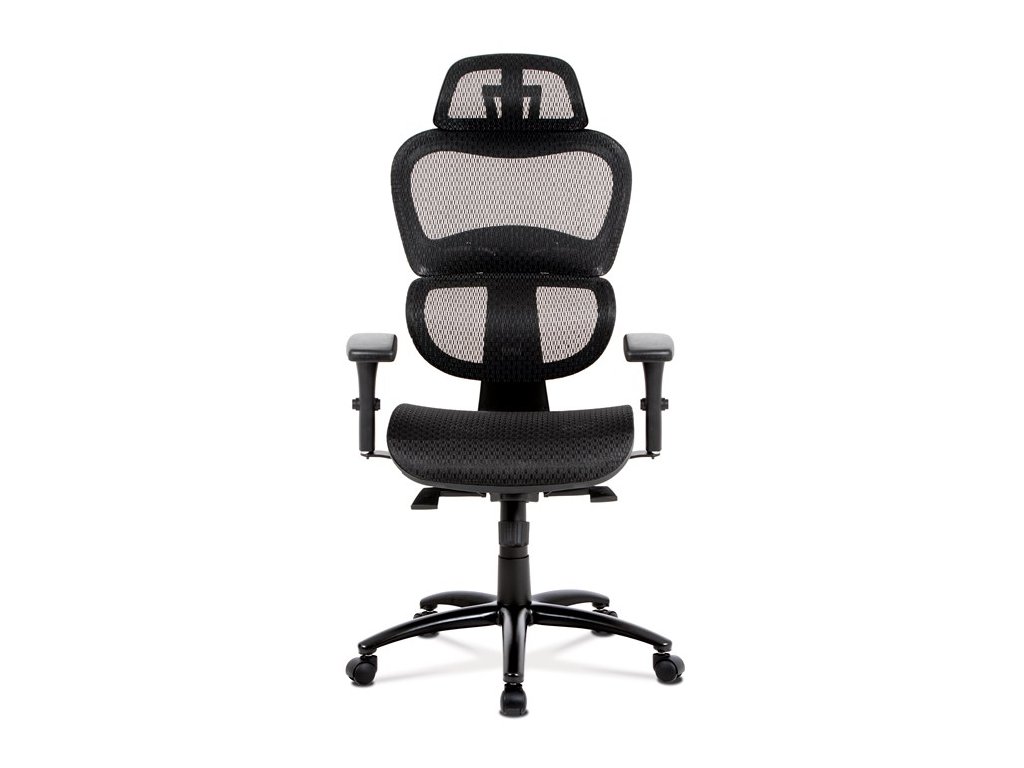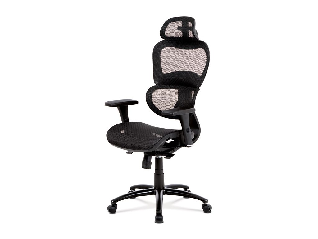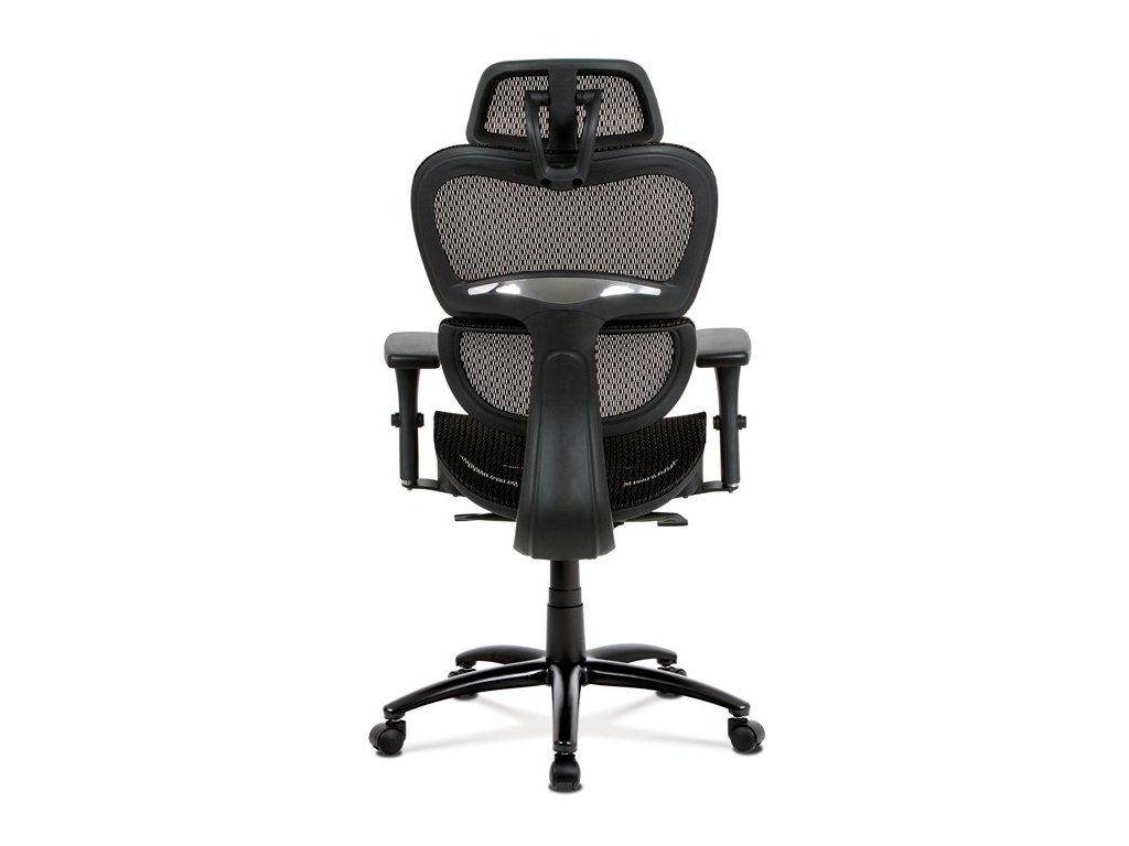 Dizajnová kancelárska stolička v kategórii TOP manager. Poťah je zo sieťoviny MESH v čiernej farbe. Synchrónny mechanizmus je možné aretovať v niekoľkých polohách. Podrúčky umožňujú nastaviť výšku aj posúvať mäkčené opierky vpred a vzad. Opierka hlavy je horizontálne aj vertikálne nastaviteľná. Kríž je kovový, čierny matný a kolieska univerzálne. Operadlo je priedušné a špeciálne ergonomicky tvarované pre správne a zdravé držanie chrbta aj pri náročnej kancelárskej práci.Dodatočné parametre
