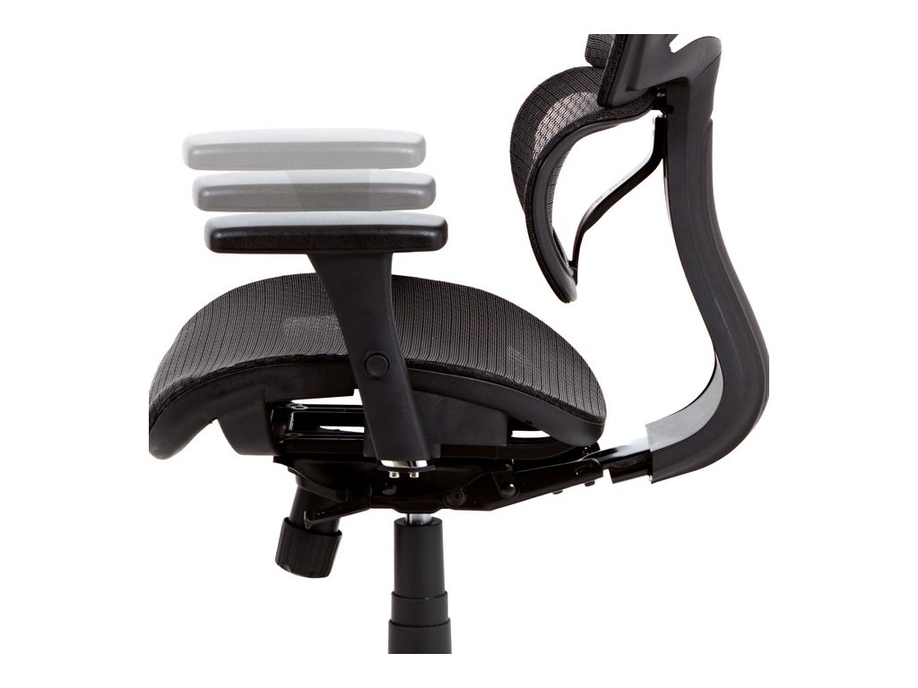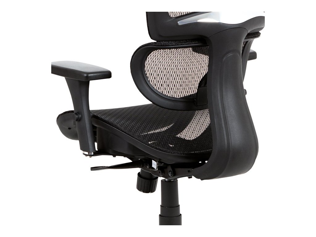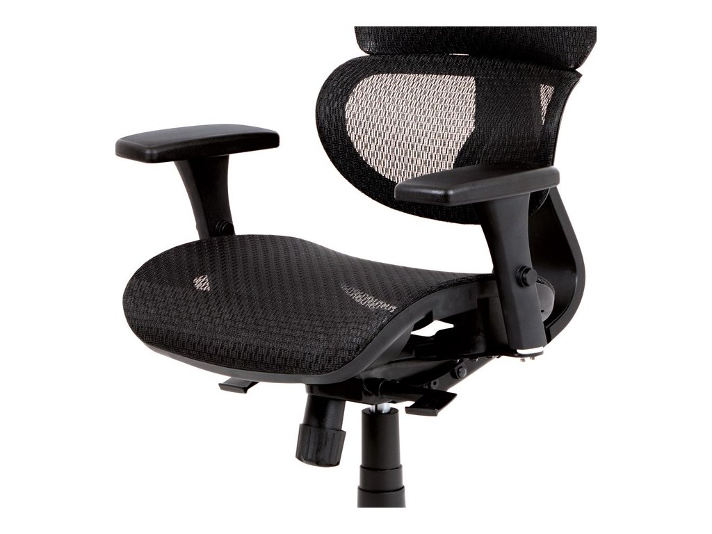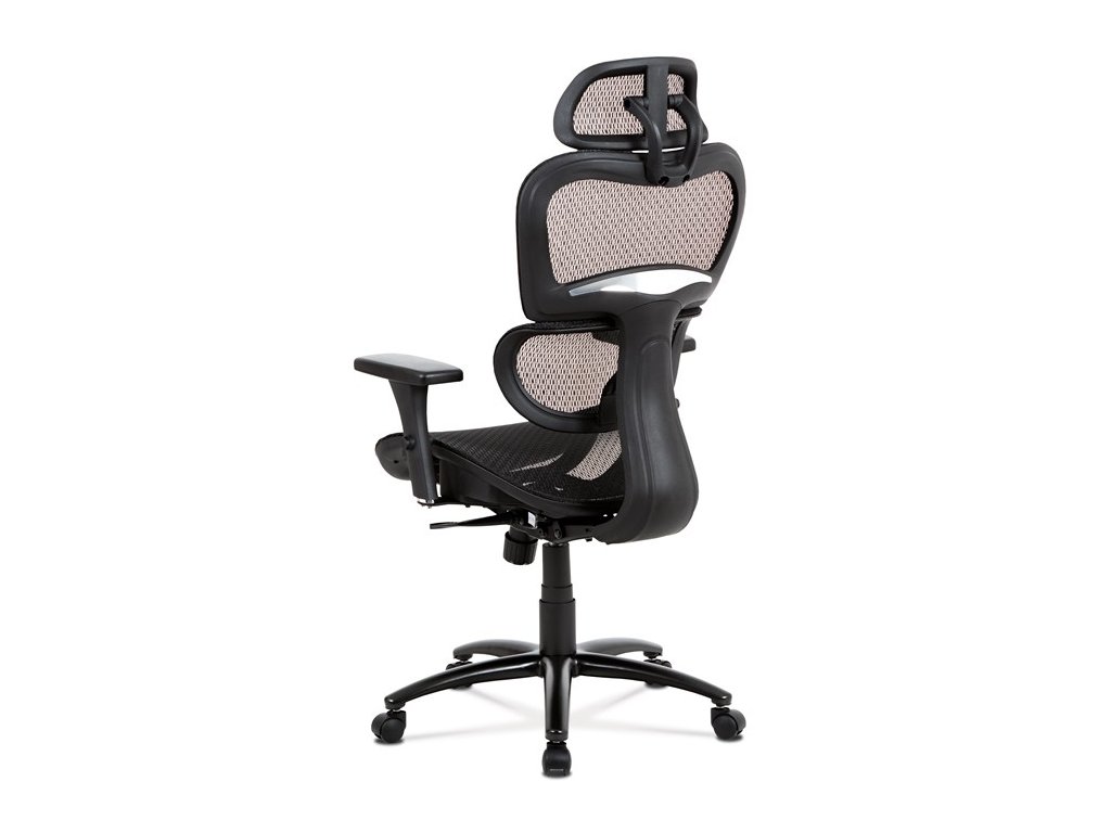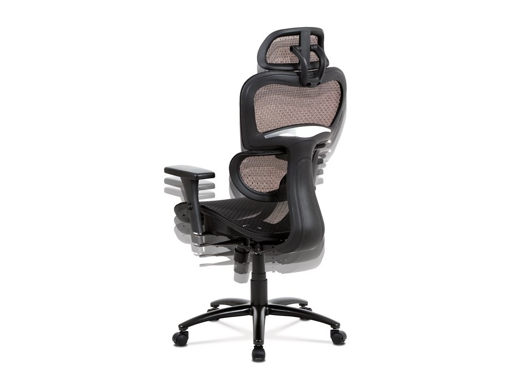 Dizajnová kancelárska stolička v kategórii TOP manager. Poťah je zo sieťoviny MESH v čiernej farbe. Synchrónny mechanizmus je možné aretovať v niekoľkých polohách. Podrúčky umožňujú nastaviť výšku aj posúvať mäkčené opierky vpred a vzad. Opierka hlavy je horizontálne aj vertikálne nastaviteľná. Kríž je kovový, čierny matný a kolieska univerzálne. Operadlo je priedušné a špeciálne ergonomicky tvarované pre správne a zdravé držanie chrbta aj pri náročnej kancelárskej práci.Dodatočné parametre