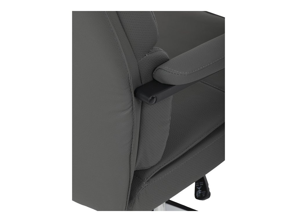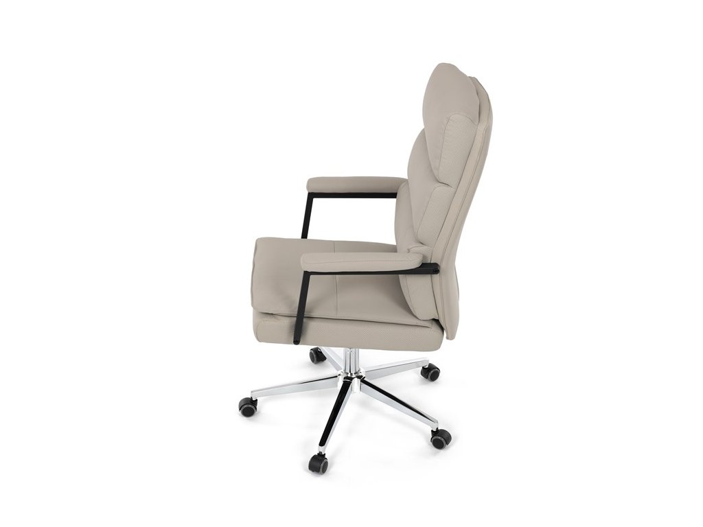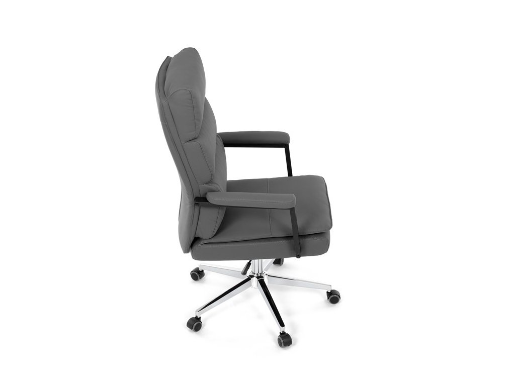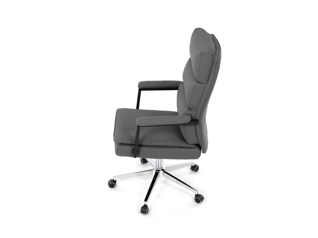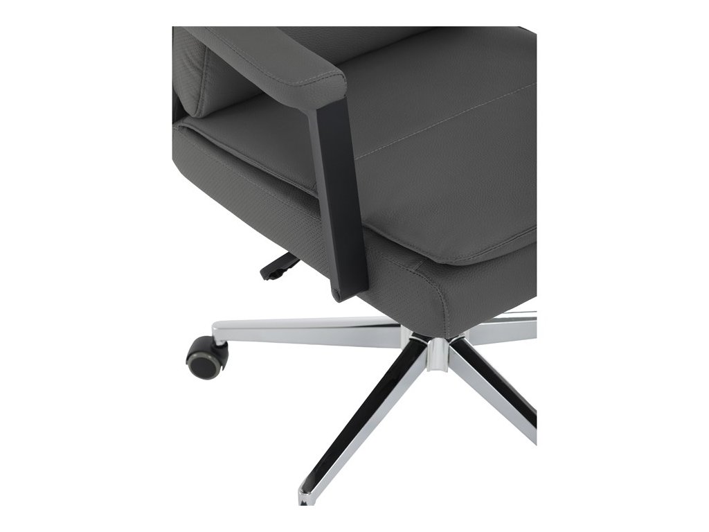 Kancelárska stolička, ktorú ocení každý používateľ, ktorý potrebuje komfort počas dlhšieho sedenia. Ten je zabezpečený bohatým zdvojeným čalúnením s výrazným prešitím, v hrubej, pevnej a zároveň veľmi príjemnej na dotyk štrukturovanej ekokoži. Stabilitu a pevnosť zabezpečuje vďaka pochrómovaniu výrazný celokovový nosný kríž, pri ktorom je odolnosť voči opotrebovaniu samozrejmosťou. Kancelárska stolička, ktorú si obľúbite vďaka svojmu pohodliu, sa určite stane aj skvelým dizajnovým prvkom vašej kancelárie čo domáceho pracovného kútika.Dodatočné parametre
