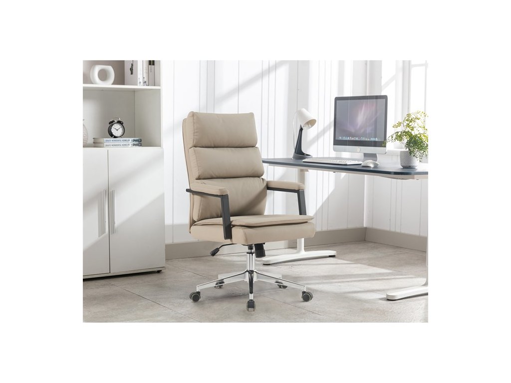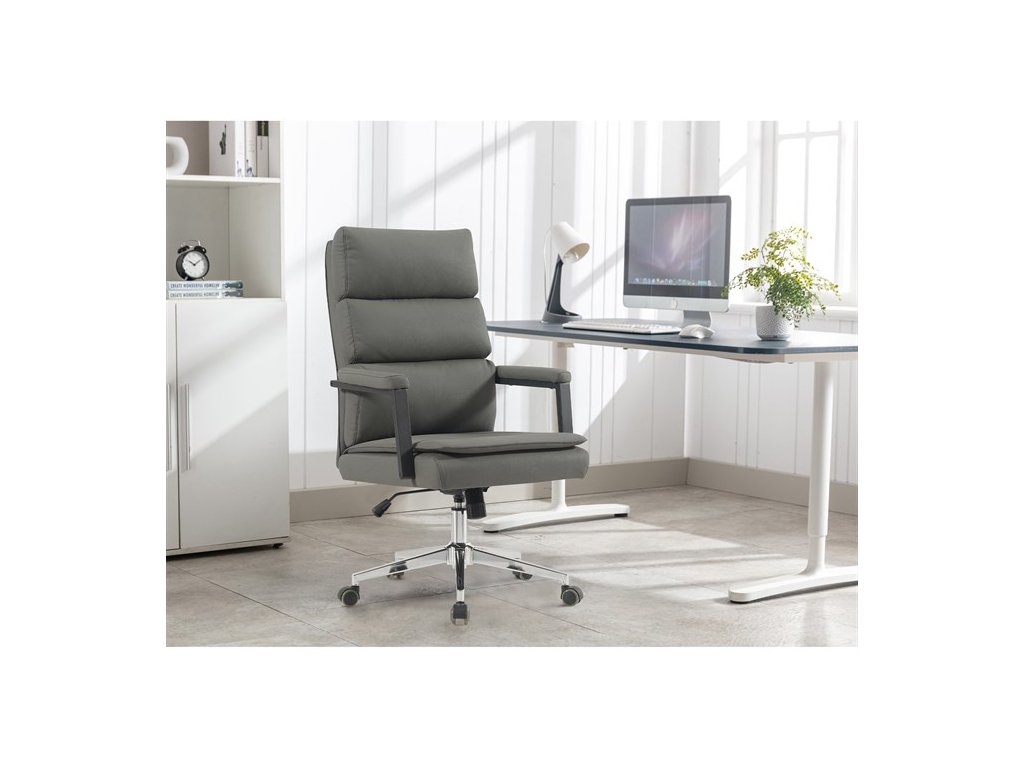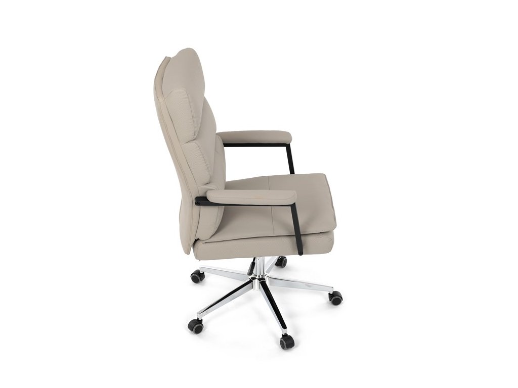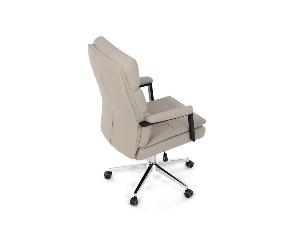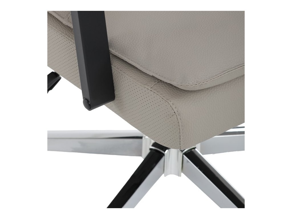 Kancelárska stolička, ktorú ocení každý používateľ, ktorý potrebuje komfort počas dlhšieho sedenia. Ten je zabezpečený bohatým zdvojeným čalúnením s výrazným prešitím, v hrubej, pevnej a zároveň veľmi príjemnej na dotyk štrukturovanej ekokoži. Stabilitu a pevnosť zabezpečuje vďaka pochrómovaniu výrazný celokovový nosný kríž, pri ktorom je odolnosť voči opotrebovaniu samozrejmosťou. Kancelárska stolička, ktorú si obľúbite vďaka svojmu pohodliu, sa určite stane aj skvelým dizajnovým prvkom vašej kancelárie čo domáceho pracovného kútika.Dodatočné parametre