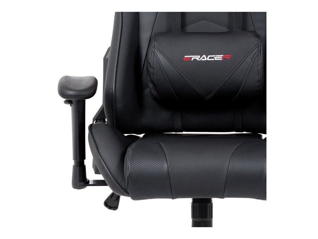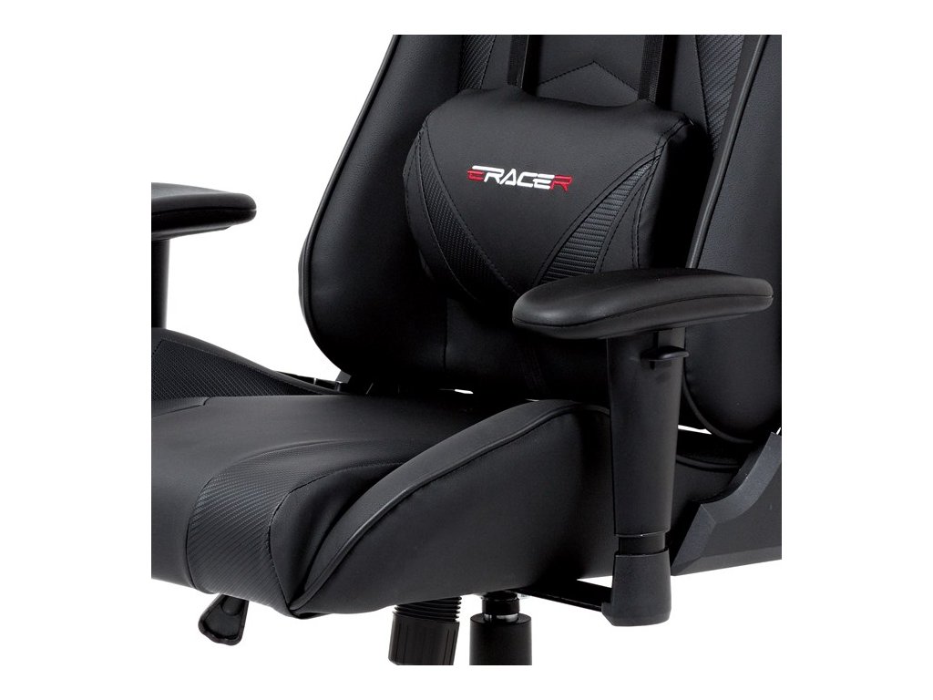 Špičkové herné kreslo v prevedení čierna ekokoža s detailmi v dekore "CARBON". Kreslo ktoré poteší každého hráča svojím dizajnom sedačky zo športového auta, pocit je prakticky rovnaký. Polohovanie až do 180 ° polohy, ovládanie ako v aute, hojdací mechanizmus s možnosťou nastavenia tuhosti podľa váhy užívateľa, bedrová opierka a podhlavník - to sú všetko detaily, ktoré zabezpečia pohodlie a vytrhnú vás z reality. O stabilitu sa stará pevný nylonový kríž s protišmykovými plochami na každom ramene, štýl zvýrazňujú dizajnovo ladené kolieska.Dodatočné parametre