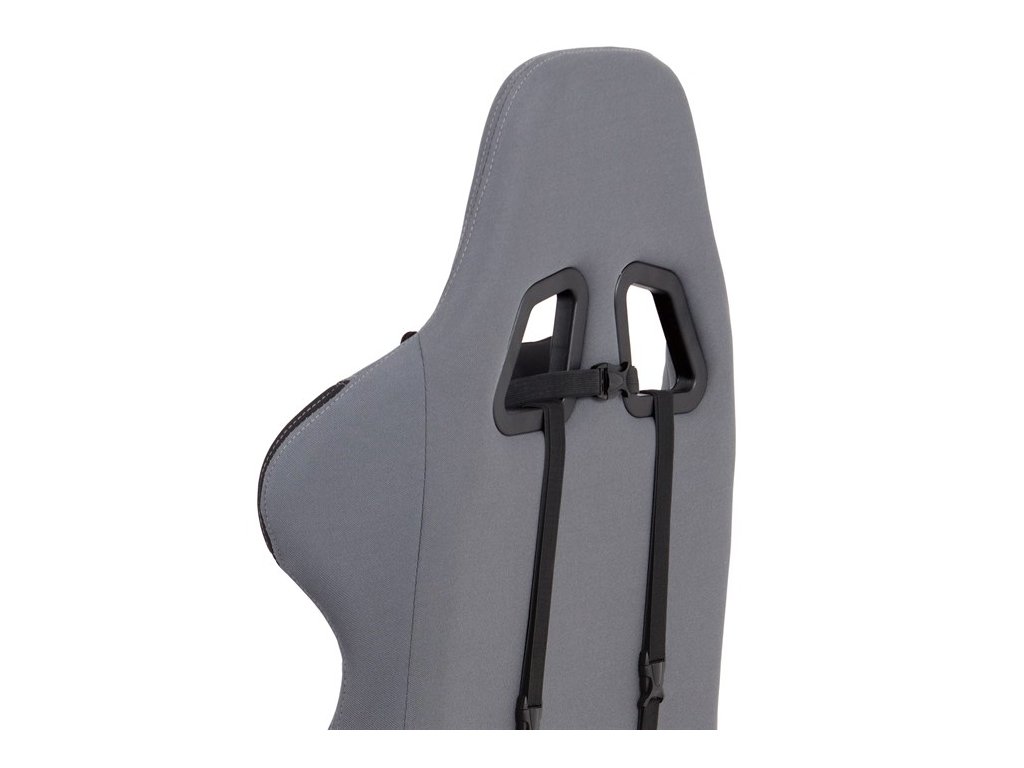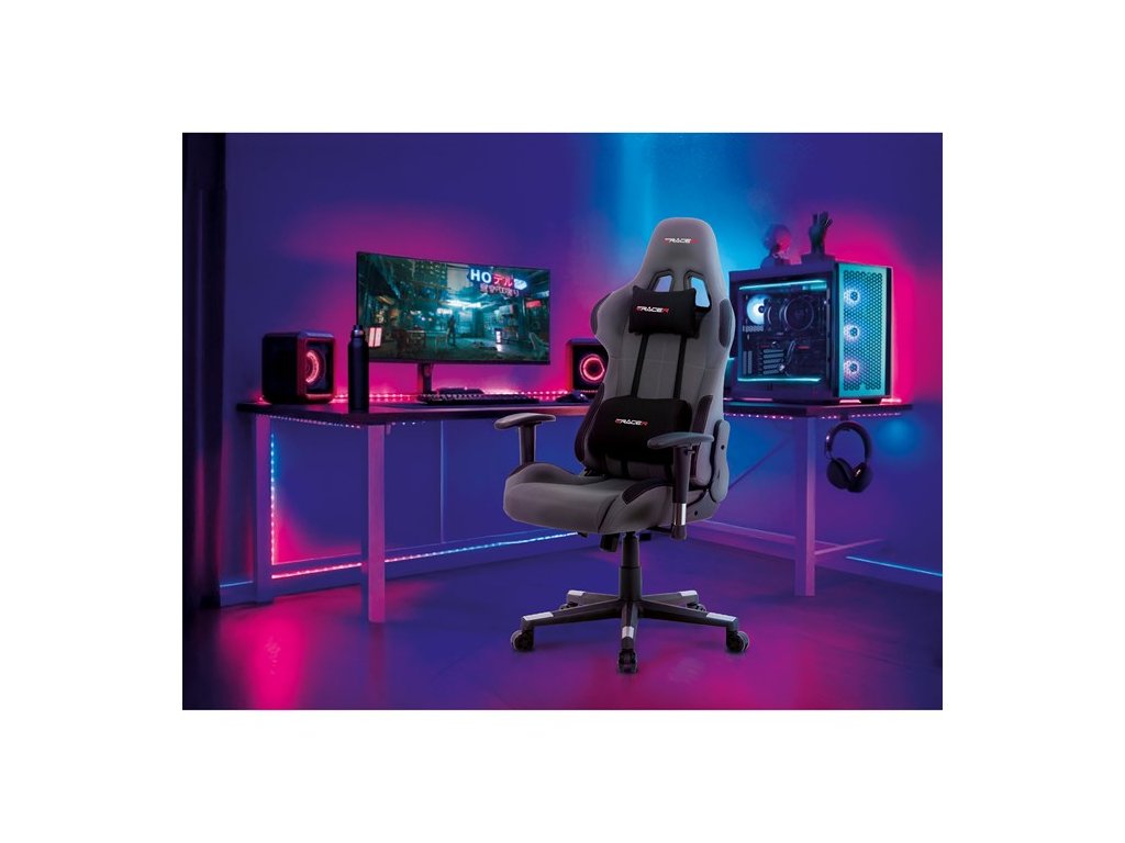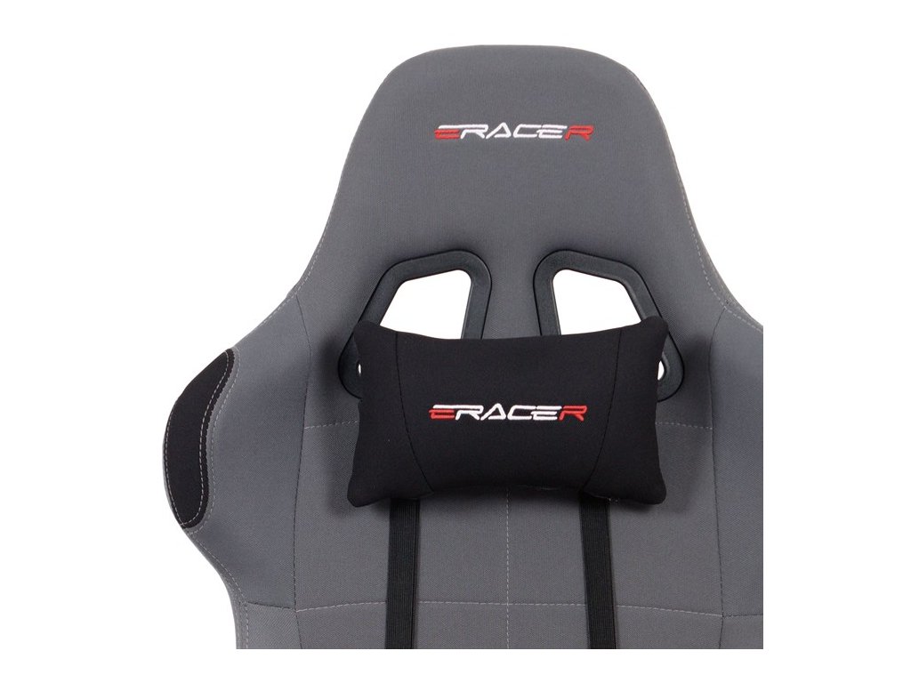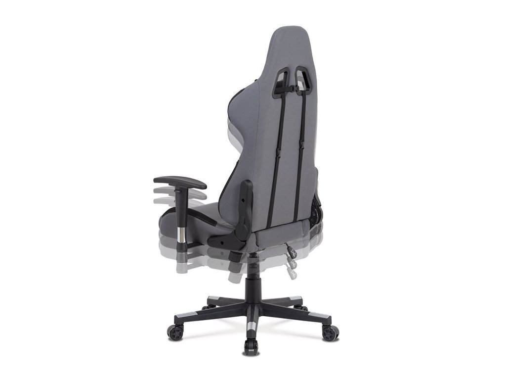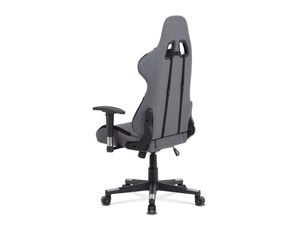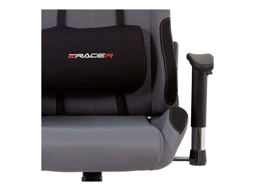 Herné kreslo v športovom dizajne v sivej vzdušnej látke s čiernymi detailmi a štýlovým prešitím sa stane nevyhnutným doplnkom každého PC pretekára. Polohovacie operadlo ktoré možno sklopiť až na 180 ° spolu s otočným/hojdacím mechanizmom, ovládaným identicky ako v športovom aute, zabezpečí pevné komfortné sedenie, ktorému je nápomocný bedrový vankúšik a vankúšik pod hlavu, ktoré možno podľa potreby posúvať alebo úplne odobrať. Stolička má nastaviteľné podrúčky, masívny nosný kríž s elegantnými protišmykovými doplnkami, ktorý zabezpečí potrebnú stabilitu plus jedinečný dizajnový prvok - efektné otvory na operadle.