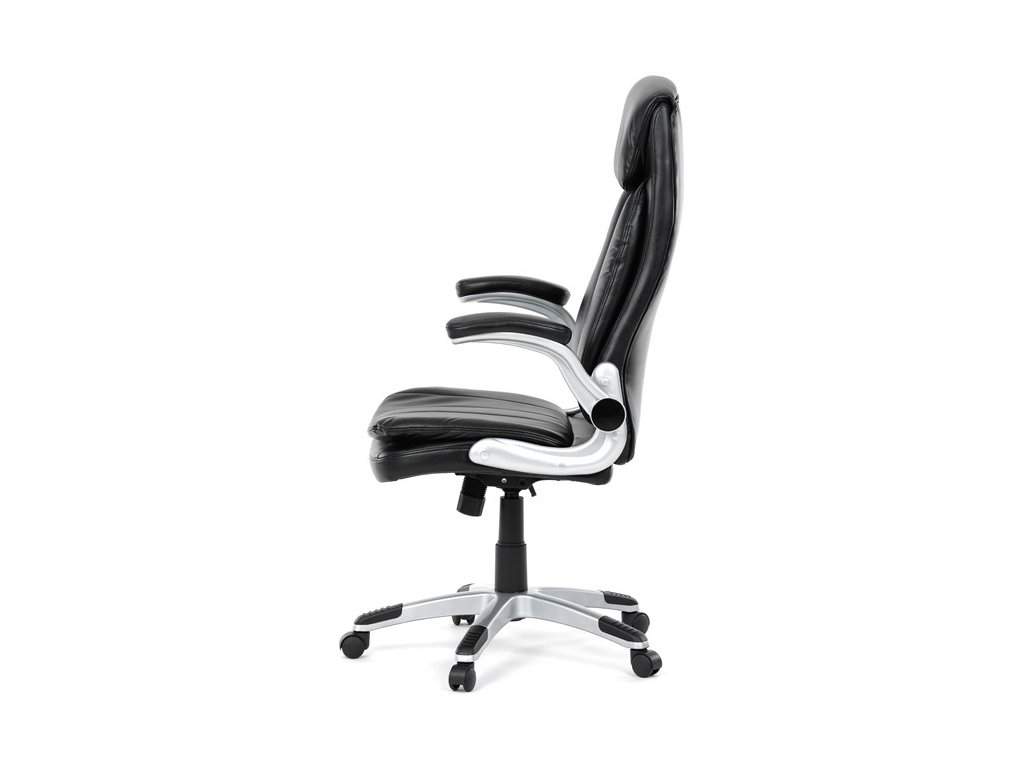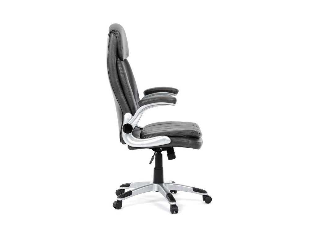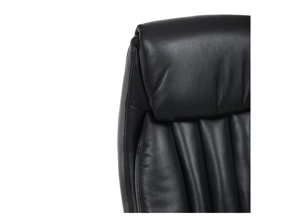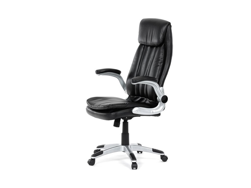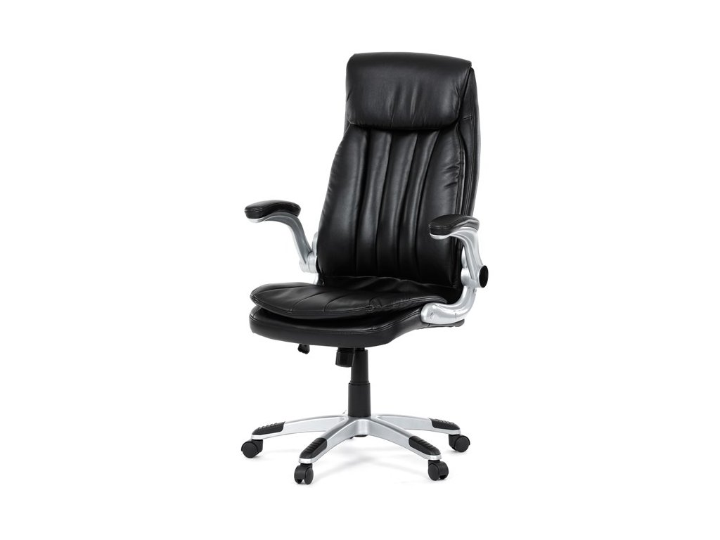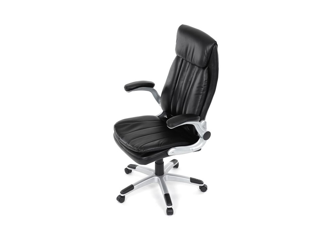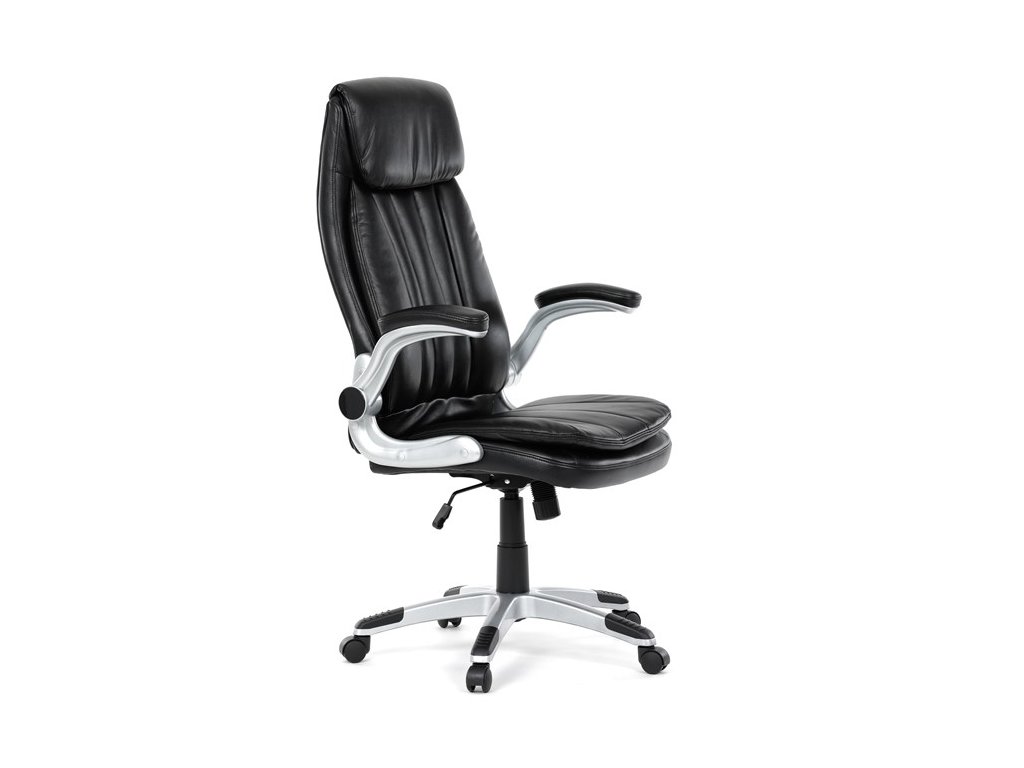 Kancelárske kreslo, ktoré dokáže vniesť nádych elegancie do interiéru. Kreslo je čalúnené do čiernej ekokože, veľmi príjemnej na dotyk, s bohatou výplňou hlavne sedacej a operadlovej časti s výrazným prešitím - to všetko je záruka skvelého výzoru a veľmi pohodlného sedenia, čo ešte podporujú zdvojený sedák, ergonomická opierka hlavy a praktické výklopné podrúčky, ktoré sú čalúnené v dizajne kresla. O stabilitu sa stará mohutný nosný kríž z tvrdeného plastu, ktorý je navyše opatrený čiernymi protišmykovými prvkami. Kreslo je primárne určené do modernej kancelárie, kde popri potrebe príjemného sedenia sa kladie dôraz aj na celkový výzor a štýl.Dodatočné parametre