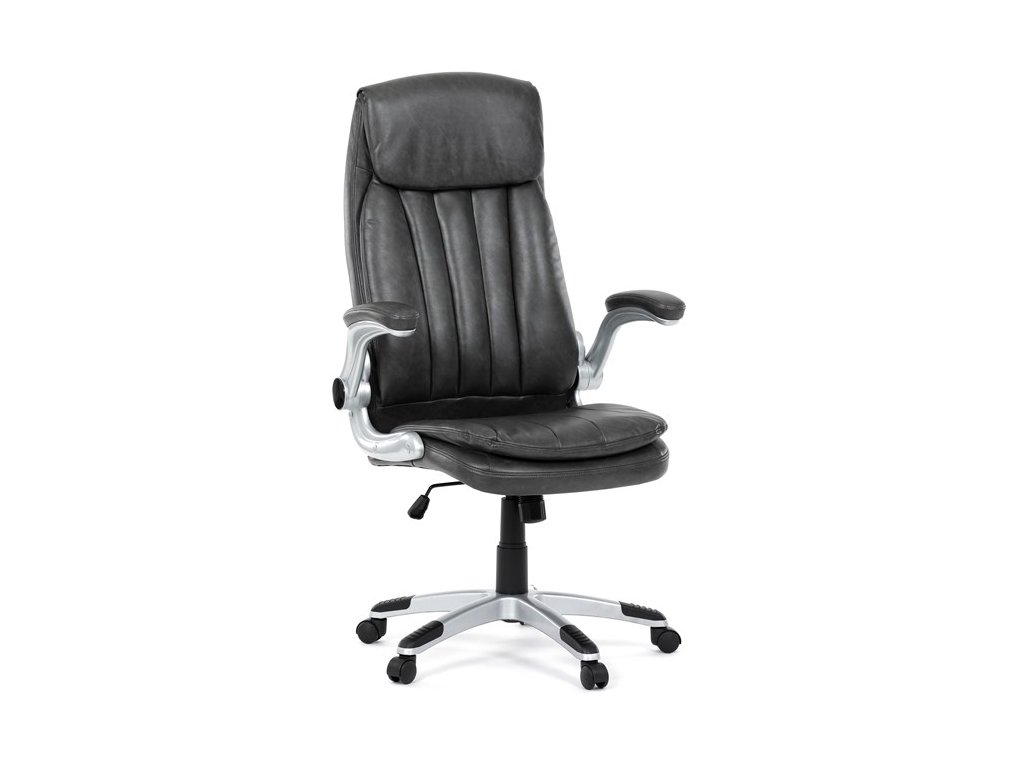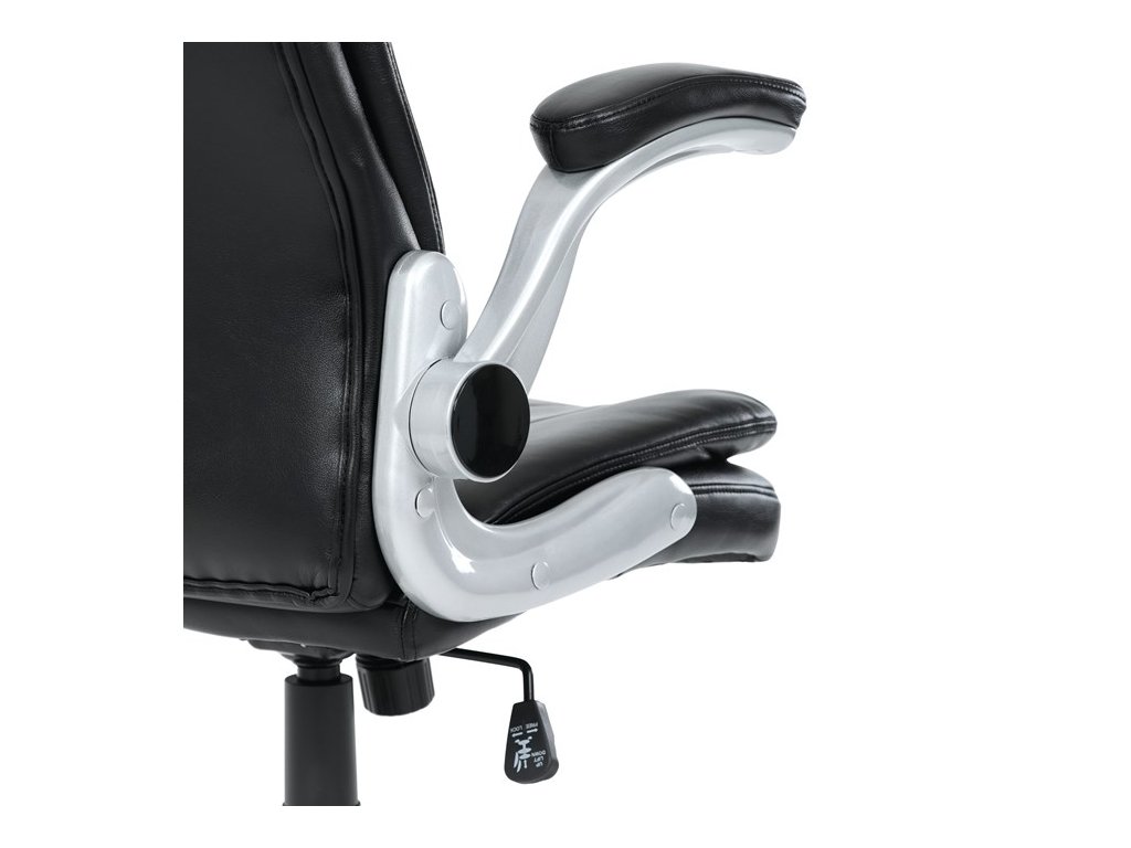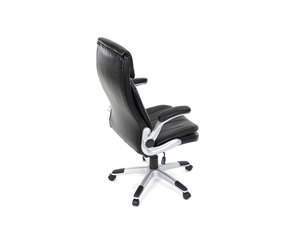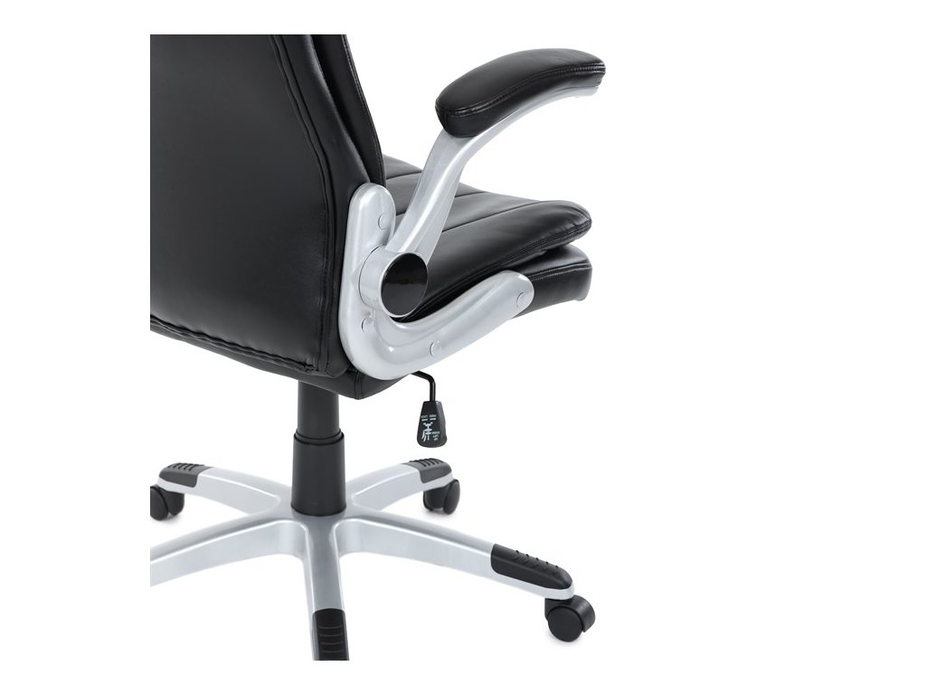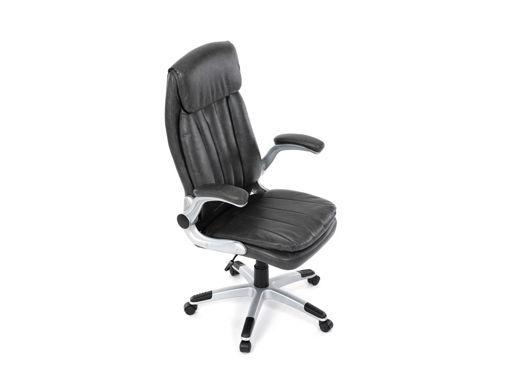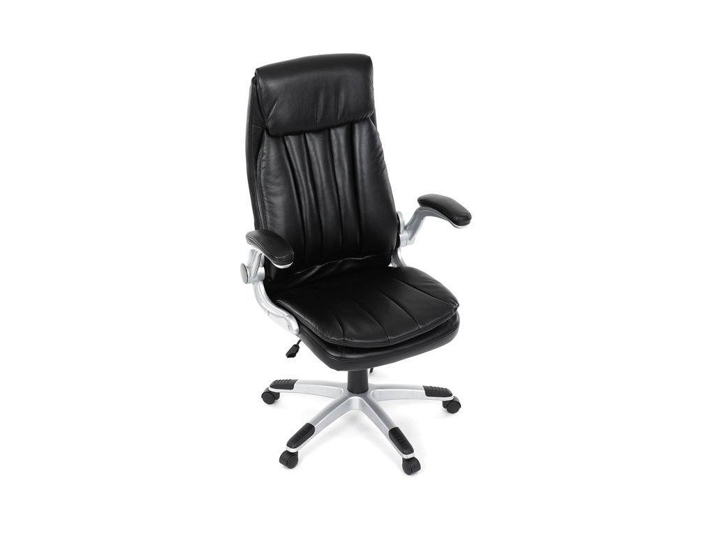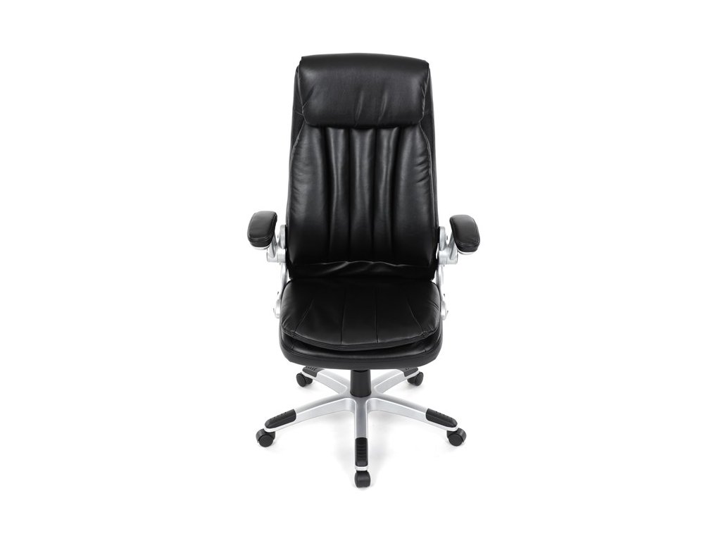 Kancelárske kreslo, ktoré dokáže vniesť nádych elegancie do interiéru. Kreslo je čalúnené do čiernej ekokože, veľmi príjemnej na dotyk, s bohatou výplňou hlavne sedacej a operadlovej časti s výrazným prešitím - to všetko je záruka skvelého výzoru a veľmi pohodlného sedenia, čo ešte podporujú zdvojený sedák, ergonomická opierka hlavy a praktické výklopné podrúčky, ktoré sú čalúnené v dizajne kresla. O stabilitu sa stará mohutný nosný kríž z tvrdeného plastu, ktorý je navyše opatrený čiernymi protišmykovými prvkami. Kreslo je primárne určené do modernej kancelárie, kde popri potrebe príjemného sedenia sa kladie dôraz aj na celkový výzor a štýl.Dodatočné parametre