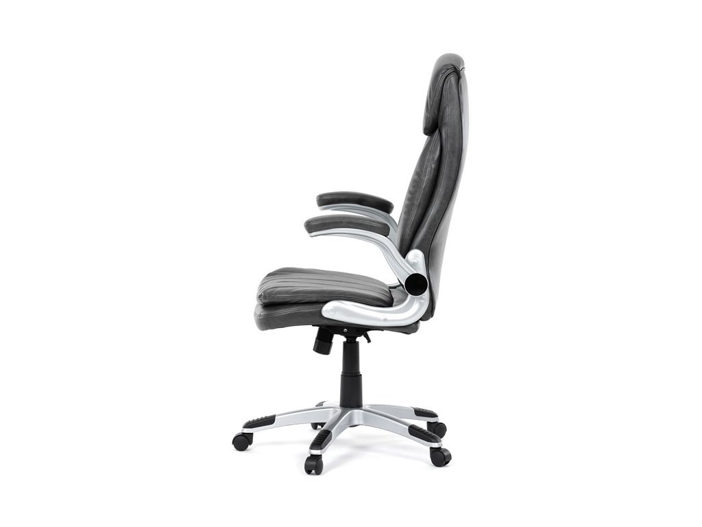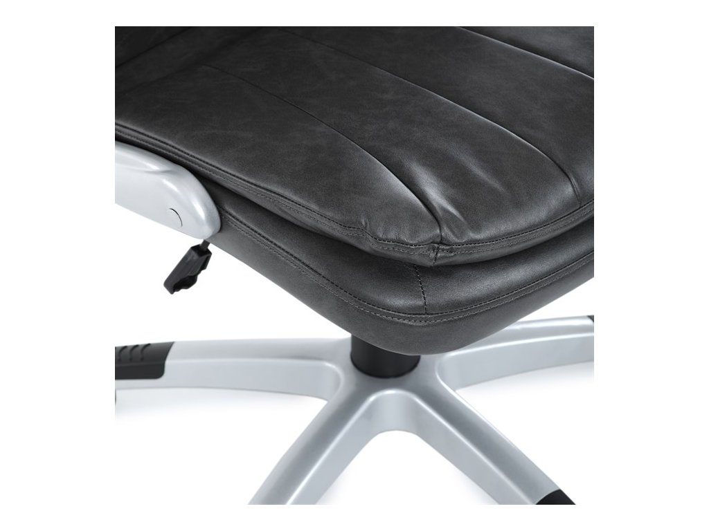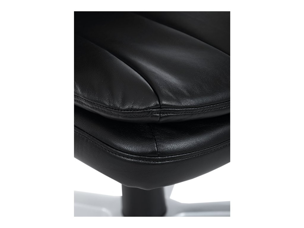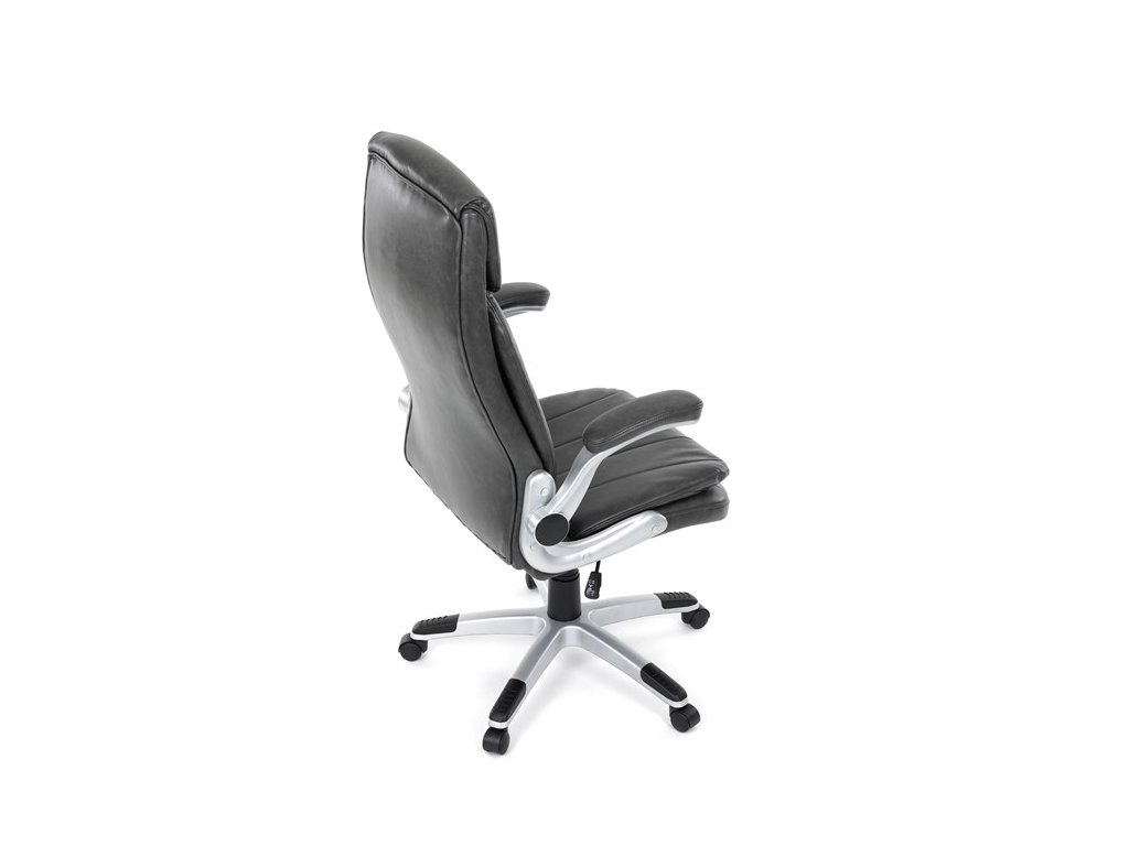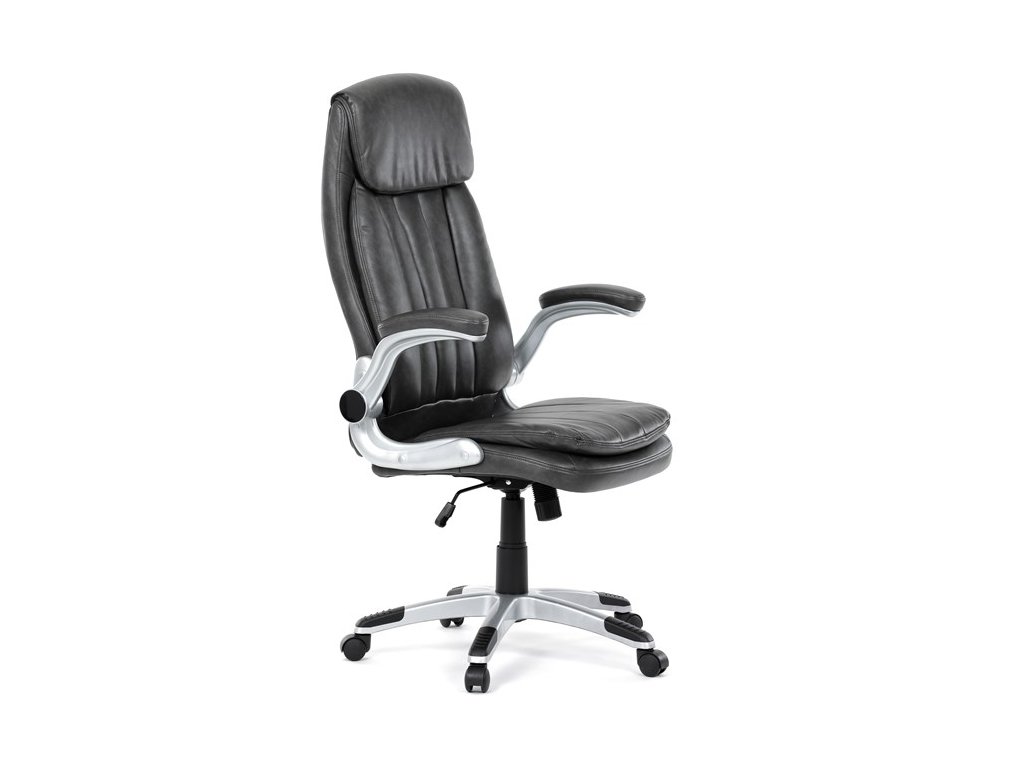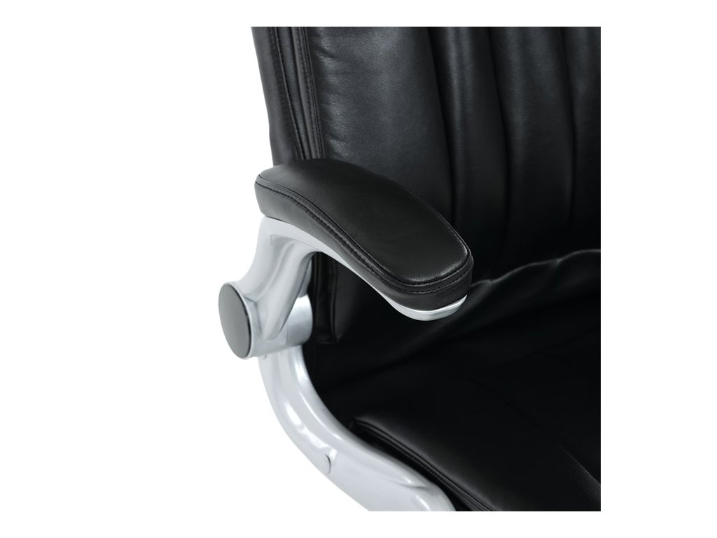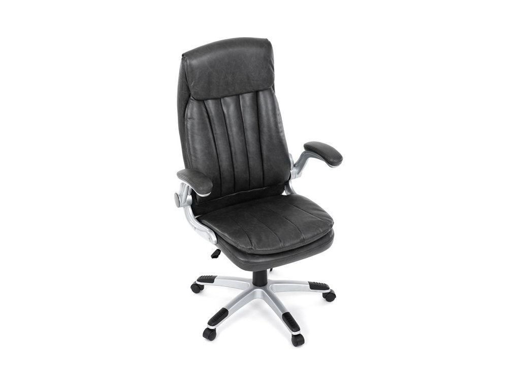 Kancelárske kreslo, ktoré dokáže vniesť nádych elegancie do interiéru. Kreslo je čalúnené do čiernej ekokože, veľmi príjemnej na dotyk, s bohatou výplňou hlavne sedacej a operadlovej časti s výrazným prešitím - to všetko je záruka skvelého výzoru a veľmi pohodlného sedenia, čo ešte podporujú zdvojený sedák, ergonomická opierka hlavy a praktické výklopné podrúčky, ktoré sú čalúnené v dizajne kresla. O stabilitu sa stará mohutný nosný kríž z tvrdeného plastu, ktorý je navyše opatrený čiernymi protišmykovými prvkami. Kreslo je primárne určené do modernej kancelárie, kde popri potrebe príjemného sedenia sa kladie dôraz aj na celkový výzor a štýl.Dodatočné parametre