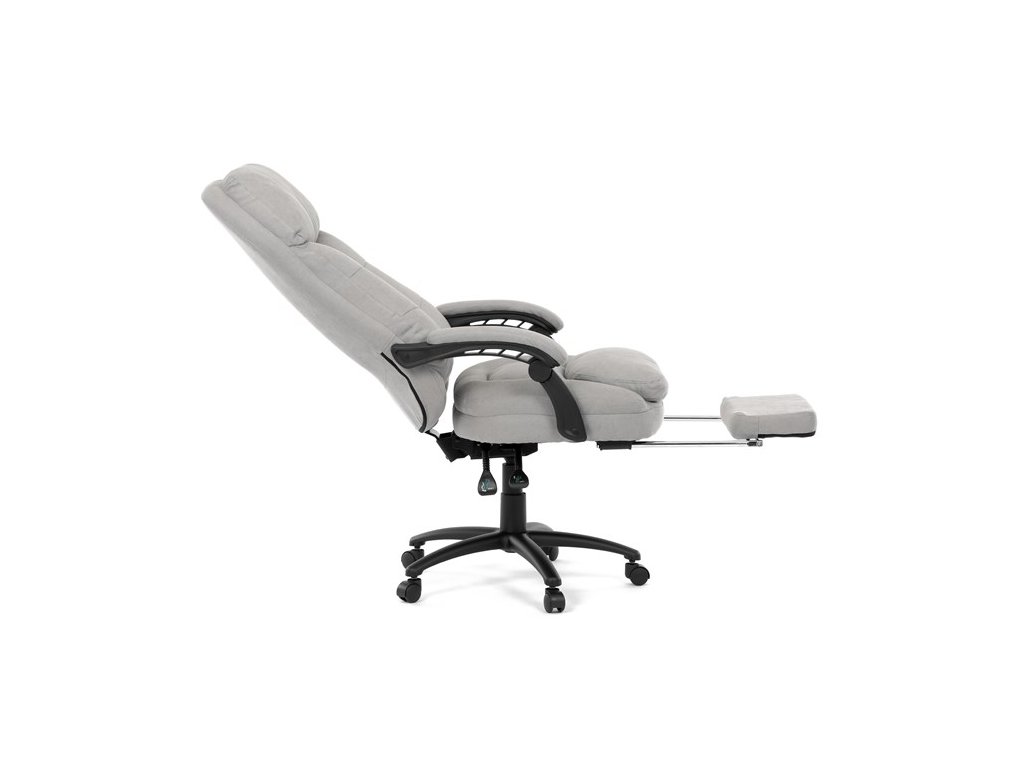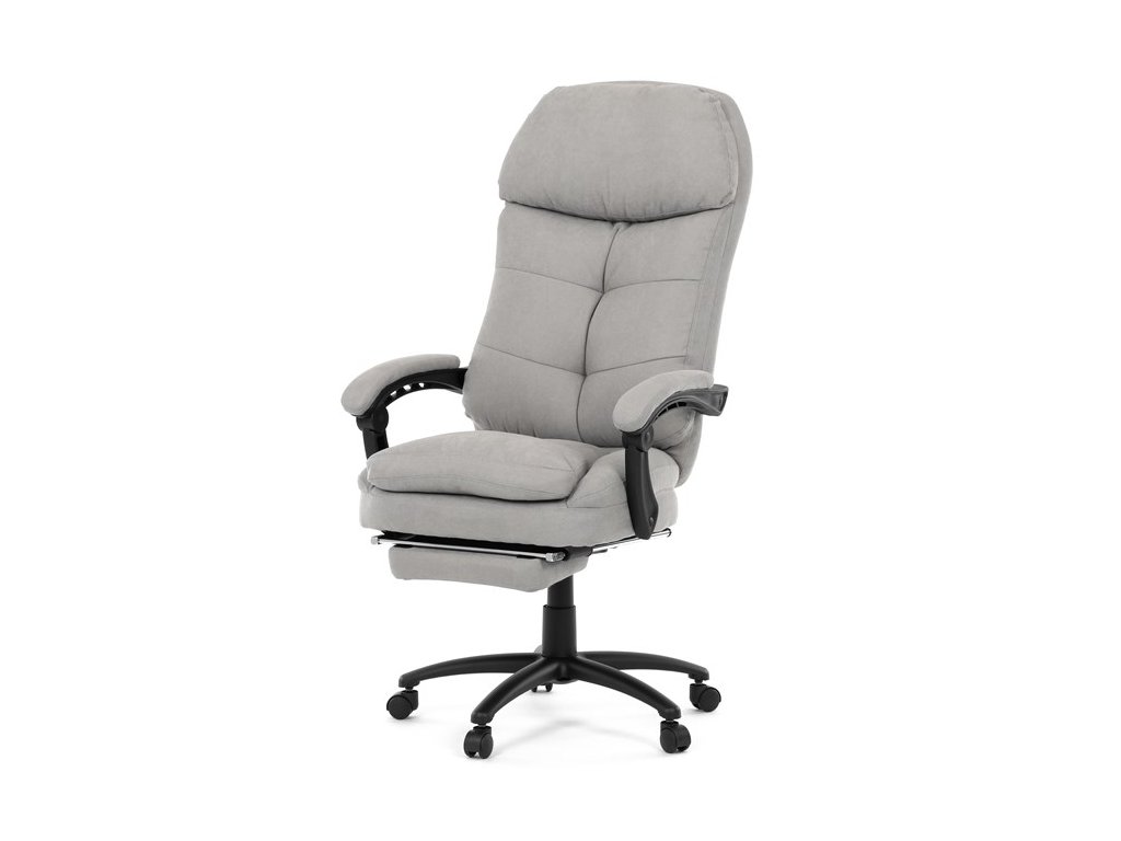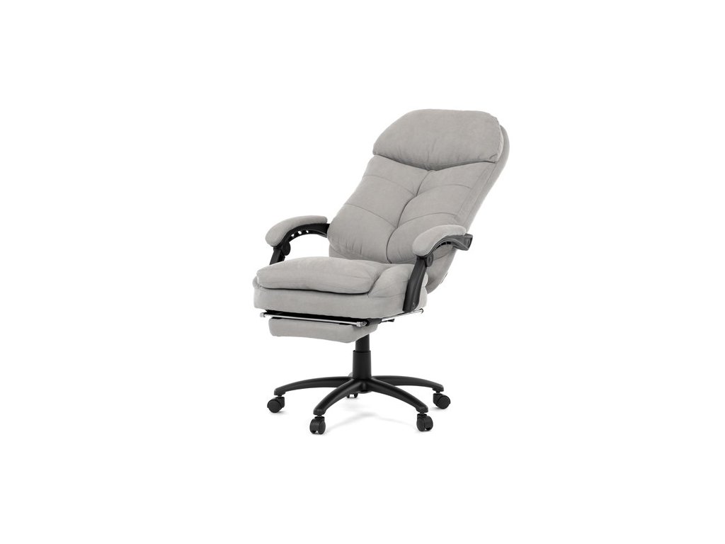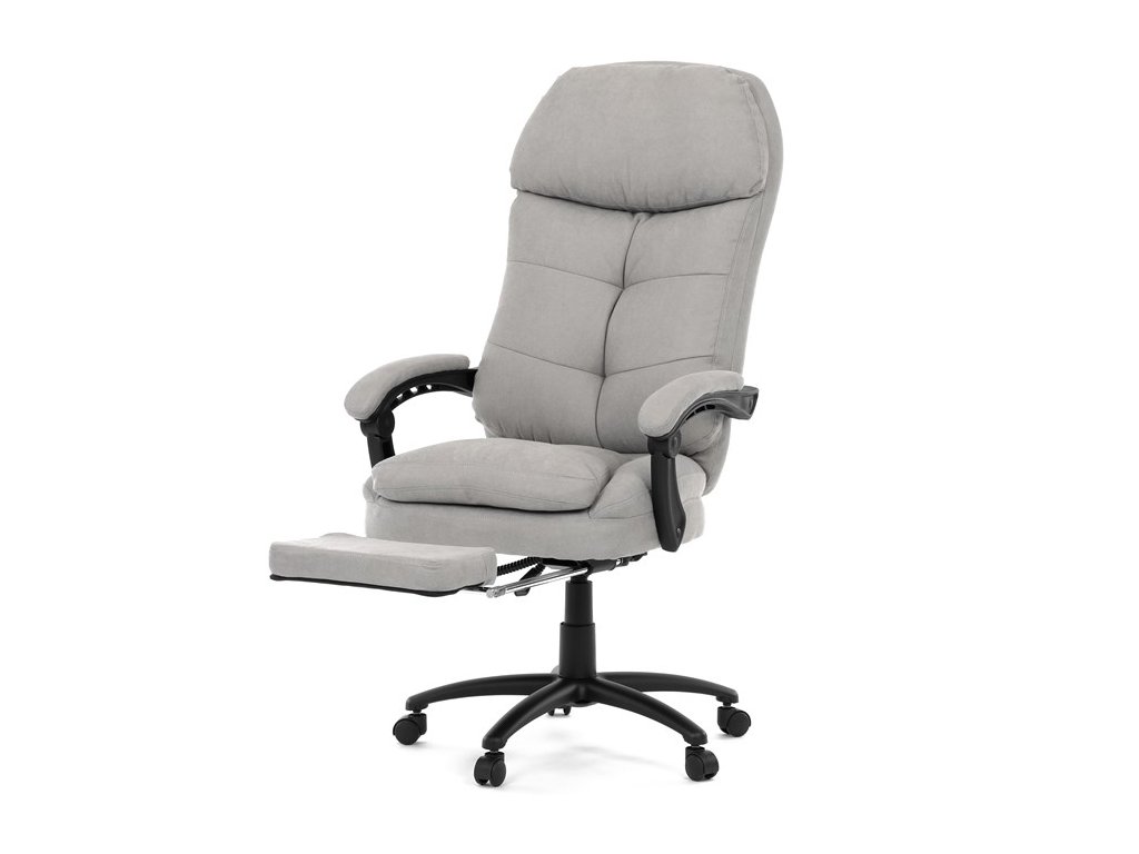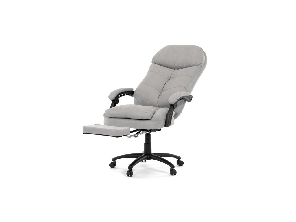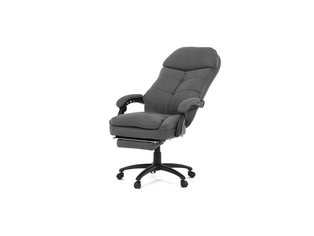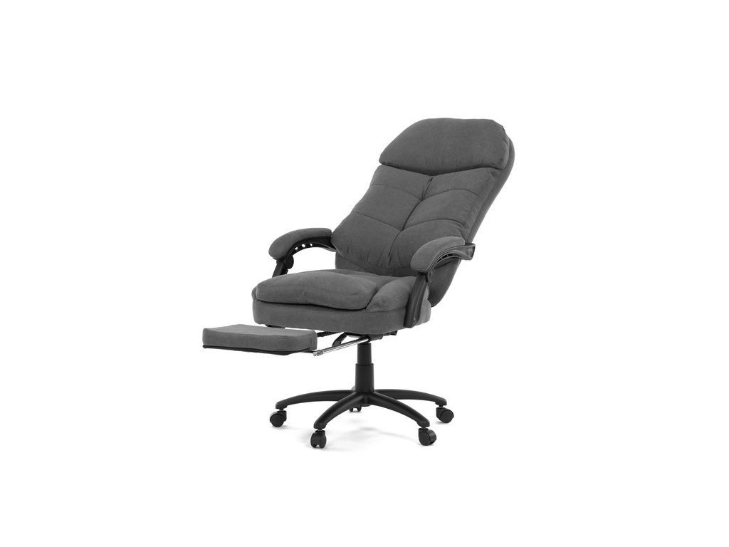 Štýlová a pohodlná kancelárska stolička značky Autronic v tmavo sivom prevedení je ideálnym spoločníkom pre dlhé pracovné dni. Vďaka kvalitnej látke, mäkkej výplni z PU peny a čalúneným podrúčkam poskytuje maximálny komfort pri sedení. Praktická výsuvná opierka nôh zvyšuje pohodlie a umožňuje relaxáciu počas práce. Synchrónna mechanika zaisťuje nastavenie polohy operadla s možnosťou aretácie vo Vami preferovaných polohách. Stabilný čierny kríž s kolieskami je nielen funkčný, ale aj esteticky zapadne do každého pracovného prostredia.