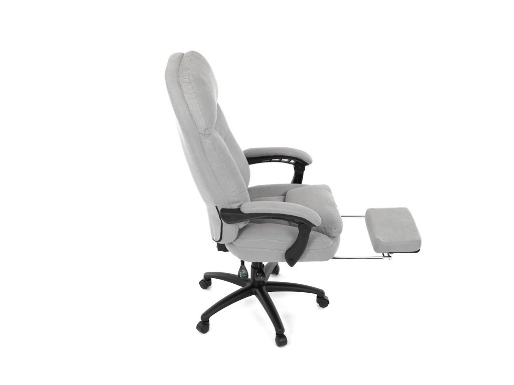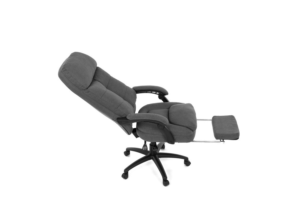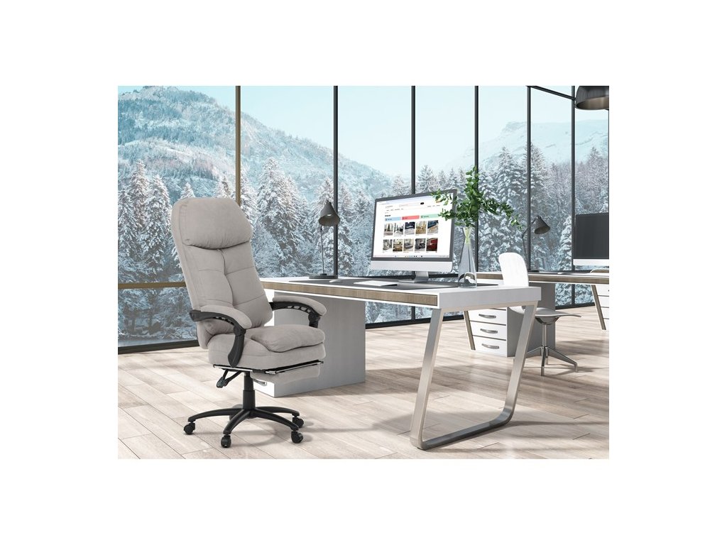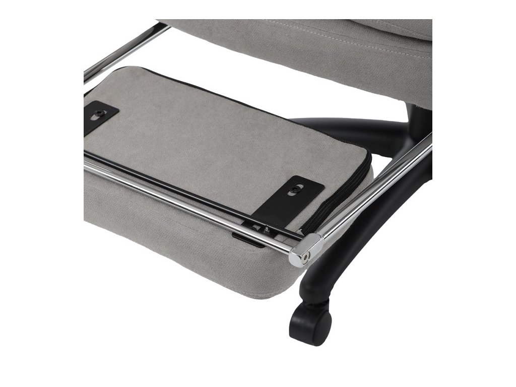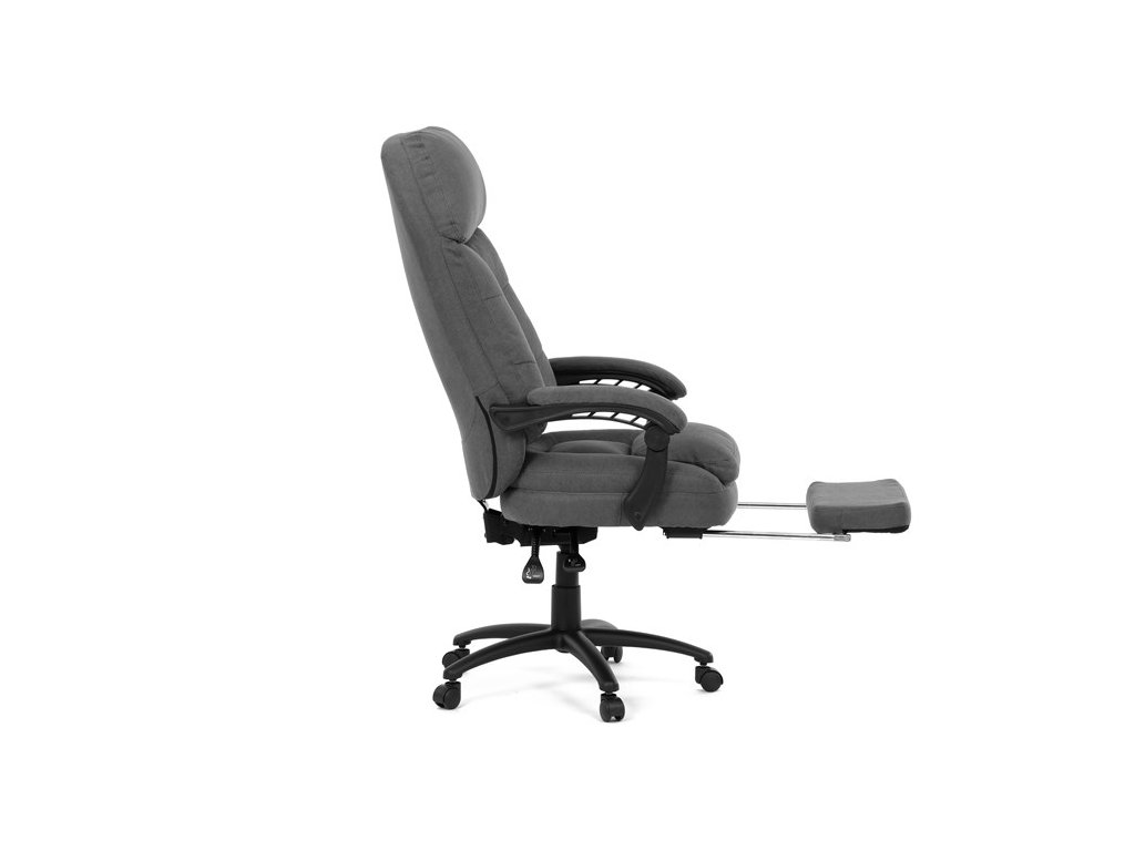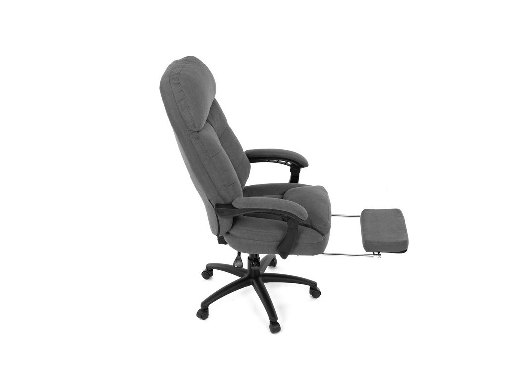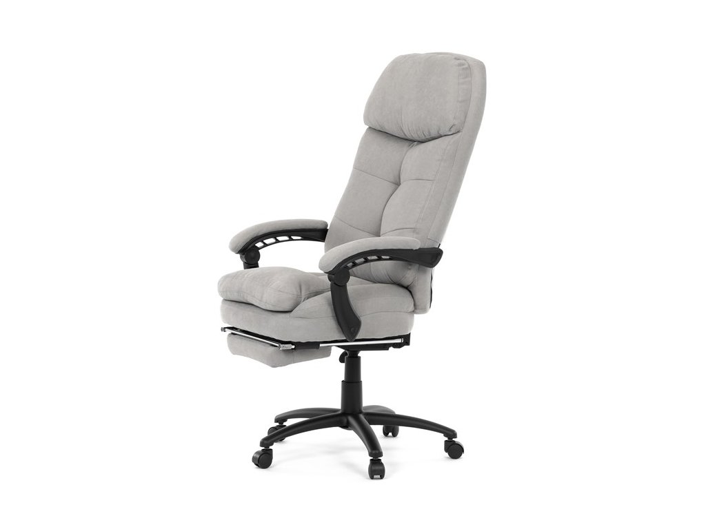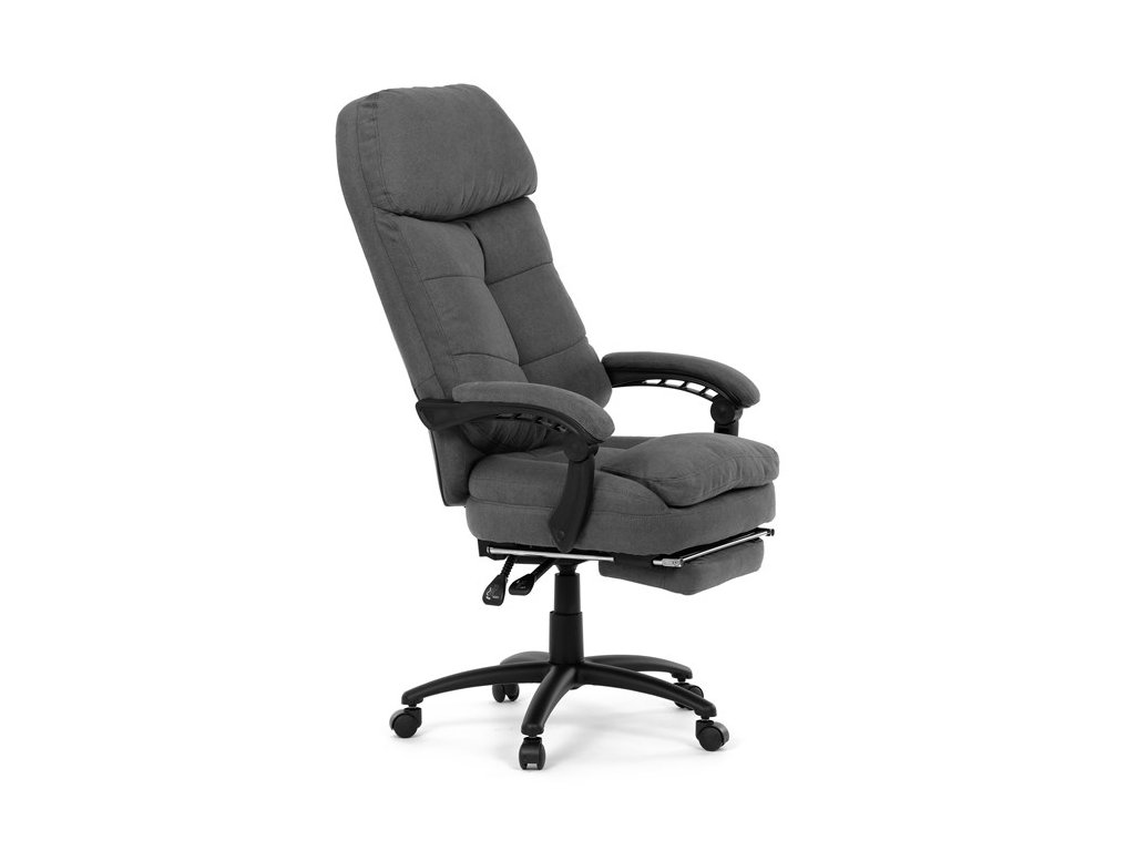 Štýlová a pohodlná kancelárska stolička značky Autronic v tmavo sivom prevedení je ideálnym spoločníkom pre dlhé pracovné dni. Vďaka kvalitnej látke, mäkkej výplni z PU peny a čalúneným podrúčkam poskytuje maximálny komfort pri sedení. Praktická výsuvná opierka nôh zvyšuje pohodlie a umožňuje relaxáciu počas práce. Synchrónna mechanika zaisťuje nastavenie polohy operadla s možnosťou aretácie vo Vami preferovaných polohách. Stabilný čierny kríž s kolieskami je nielen funkčný, ale aj esteticky zapadne do každého pracovného prostredia.