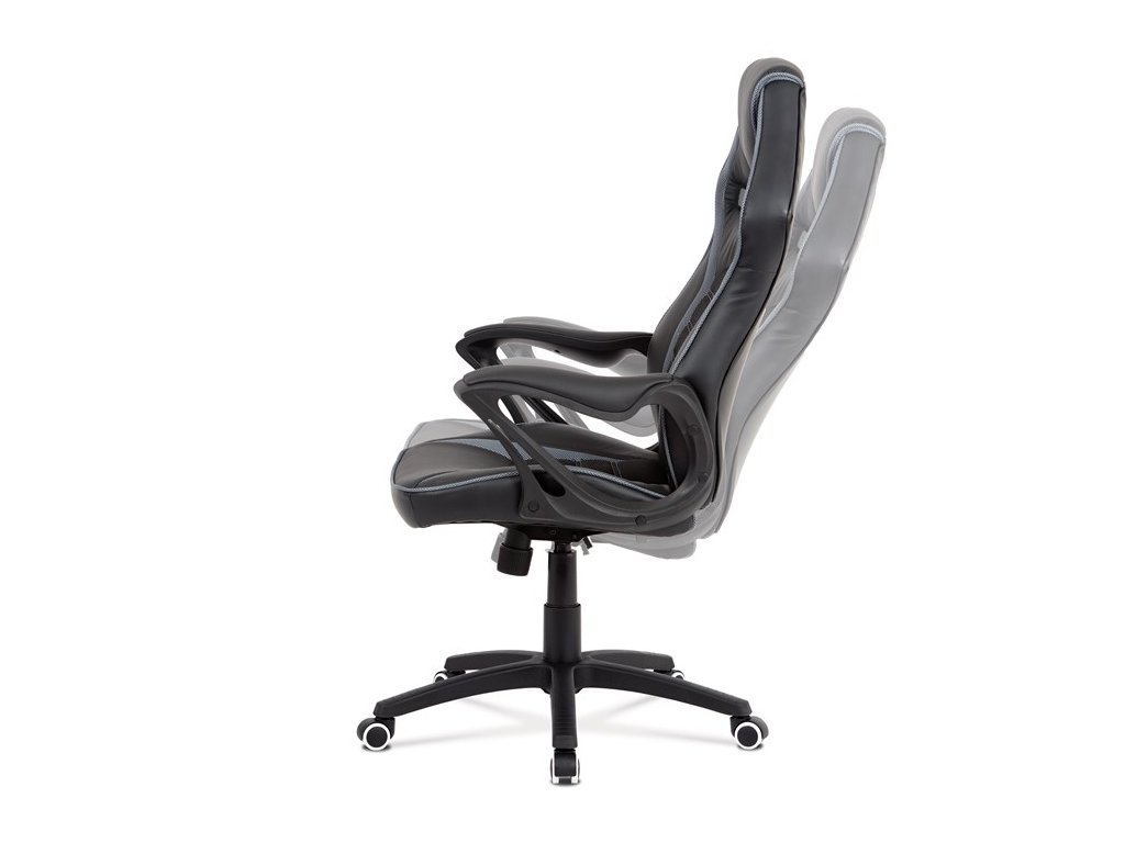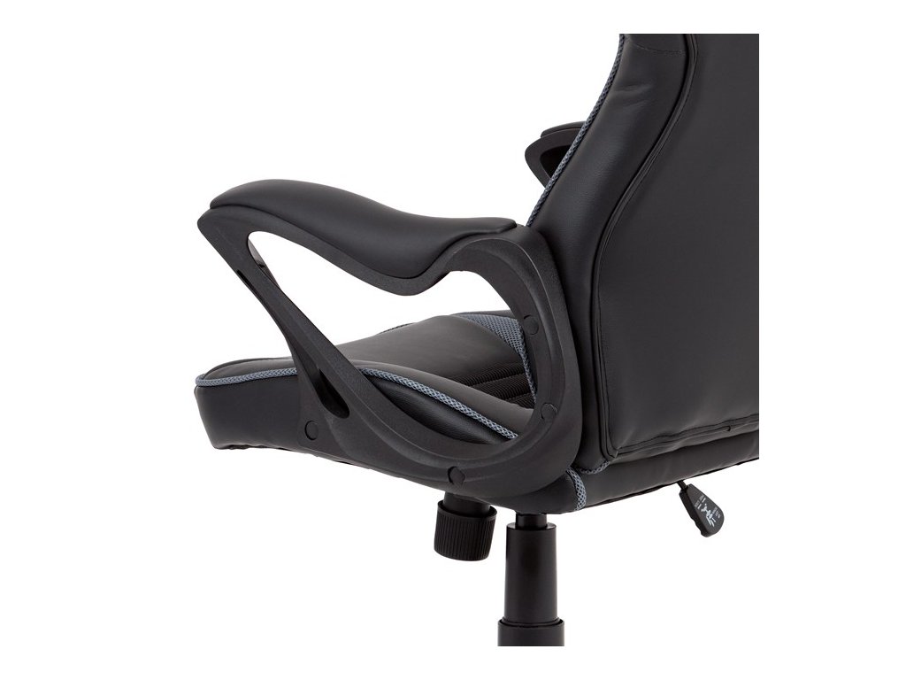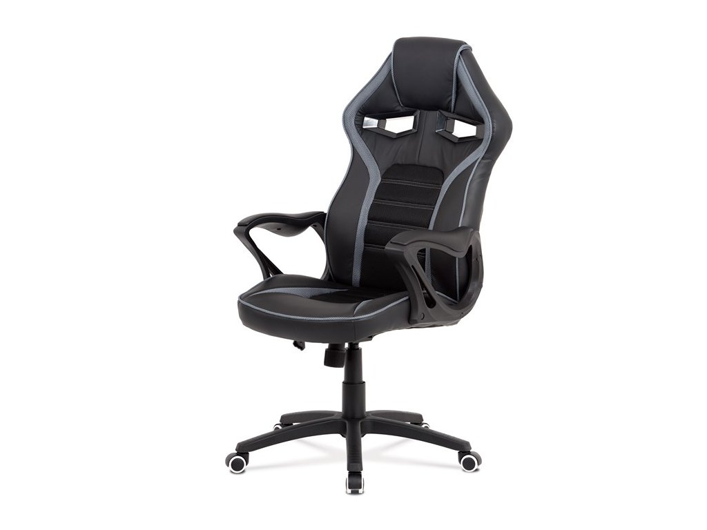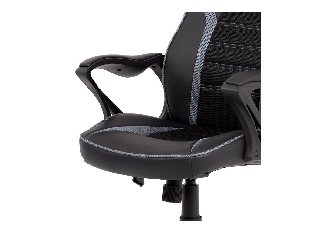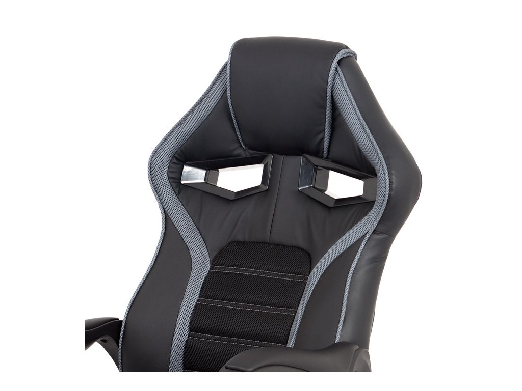 Vydarená kombinácia herného kresla a kancelárskej stoličky čalúnená čiernou ekokožou a sivou látkou MESH. Sedák aj operadlo majú prvky tmavošedej látky MESH. Herný dizajn dodáva stoličke šmrnc a aj vďaka nemu Vám ju bude závidieť každý hráč. Operadlo disponuje nielen pohodlným podhlavníkom, ale tiež dvoma plastovými otvormi ktoré pridávajú na štýlovom vzhľade stoličky, herným zážitkom a zároveň sa vďaka nim dá so stoličkou lepšie manipulovať. Ruky si môžete pohodlne oprieť o pevné plastové podrúčky s ľahkým polstrovaním čalúneným čiernou ekokožou. Stolička má čierny, tvrdený, plastový kríž s protišmykovými prvkami a plastovými kolieskami vhodnými na tvrdé typy podláh (dlažba, parkety, plávajúce podlahy a pod.). Stolička je výškovo nastaviteľná, s hojdacím mechanizmom a ovládaním upravujúcim tuhosť pohupu.Dodatočné parametre